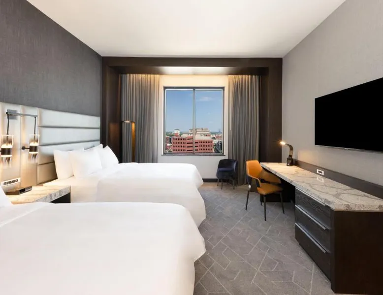 Comfortable Accommodations: Rooms feature city views, air-conditioning, and modern amenities. Guests enjoy free WiFi, flat-screen TVs, and private bathrooms. Dining and Leisure: The hotel offers a restaurant serving steakhouse and sushi cuisines, alongside a bar. Additional facilities include a 24-hour front desk and room service. Prime Location: Located in Oklahoma City city center, the hotel is 7.5 mi from Will Rogers World Airport. Nearby attractions include Chesapeake Energy Arena (9-minute walk), Oklahoma City Museum of Art (0.6 mi), and Oklahoma City National Memorial (16-minute walk). Guest Satisfaction: Highly rated for its convenient location, room cleanliness, and excellent restaurant. The double room features city views. The unit offers 2 beds.