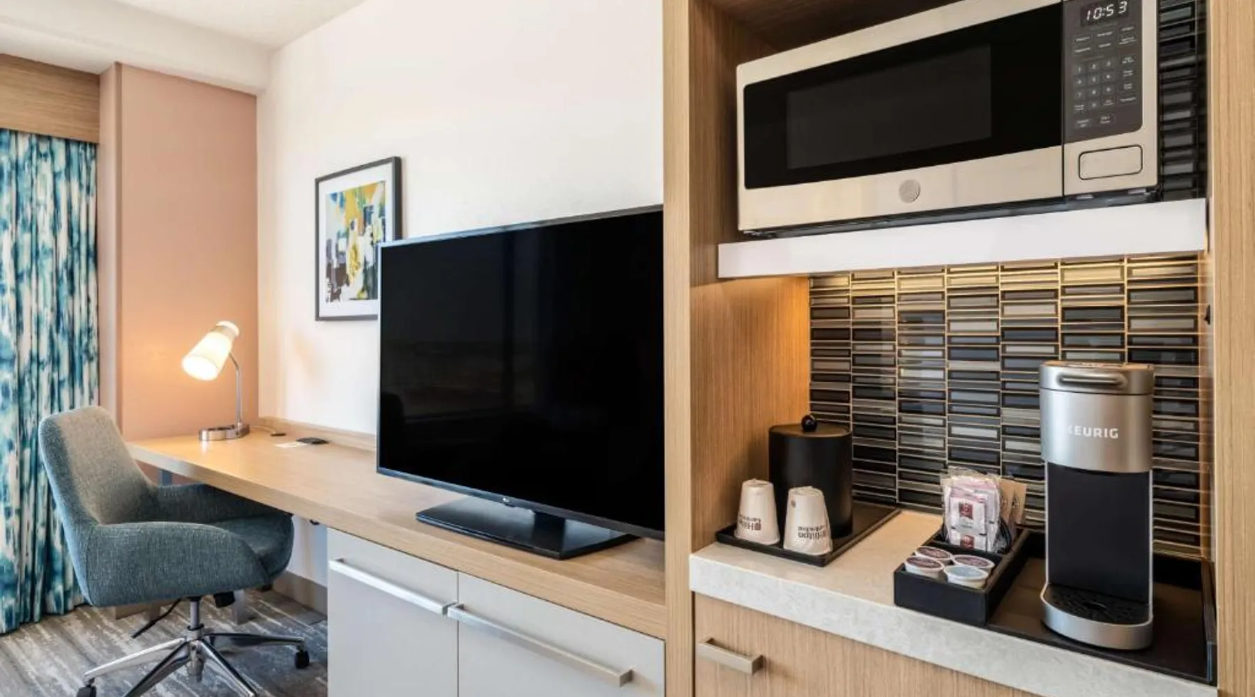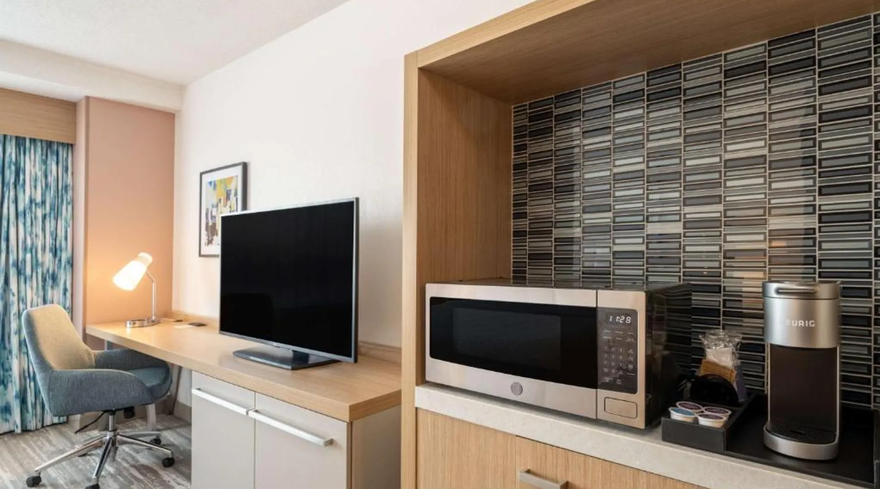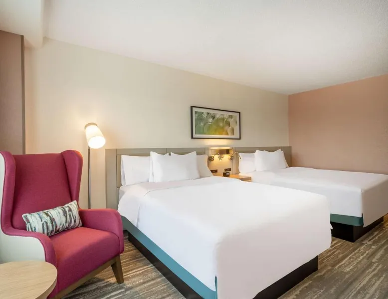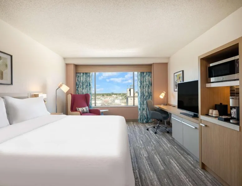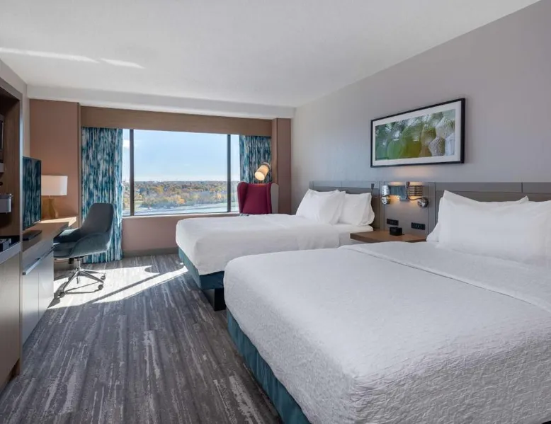 Featuring indoor skyway access to the Huntington Center Arena entertainment venue, this Toledo, Ohio hotel also features an on-site restaurant and spacious meeting facilities. Air conditioning and a satellite TV are included in each room at Hilton Garden Inn Toledo Downtown. Private bathrooms are equipped with a hairdryer and free toiletries. Select rooms have a river view. Dry cleaning and laundry facilities are available. Free WiFi access is offered. The restaurant at Hilton Garden Inn Toledo Downtown serves American cuisine. Beer, wine and cocktails are available in the lounge. Toldedo Museum of Art is 1.5 mi from the hotel. Hollywood Casino is 3 mi away. The double room's kitchenette, which features a refrigerator and a microwave, is available for cooking and storing food. The spacious air-conditioned double room provides a flat-screen TV with cable channels, a tea and coffee maker, a safe deposit box and heating. The unit offers 1 bed.