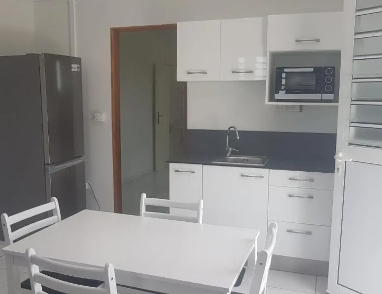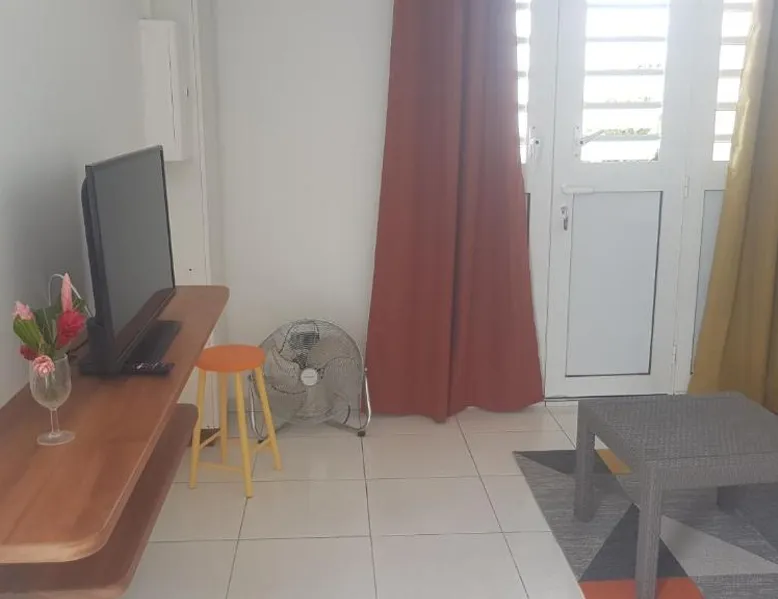 Comfortable Living Space: T2 en résidence chez l'habitant in Ducos offers a one-bedroom apartment with a living room and a fully equipped kitchen. Guests enjoy garden views and a washing machine for added convenience. Modern Amenities: The apartment features air-conditioning, a TV, and free WiFi. A washing machine and a fully equipped kitchen provide all necessary comforts. Convenient Location: Located 3.1 mi from Martinique Aime Cesaire International Airport, the property offers easy access to local attractions. Free on-site private parking is available for guests. The apartment's kitchen is available for cooking and storing food. This apartment has air conditioning, a washing machine, a flat-screen TV and garden views. The unit has 2 beds.