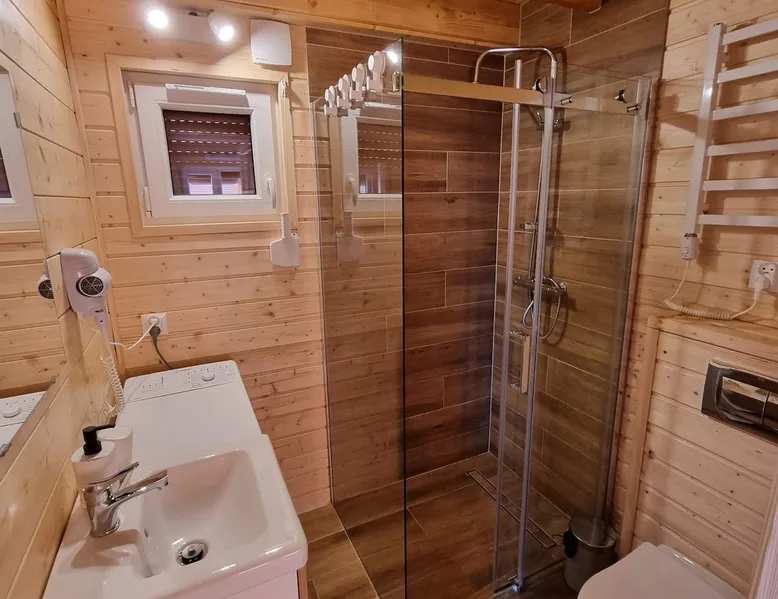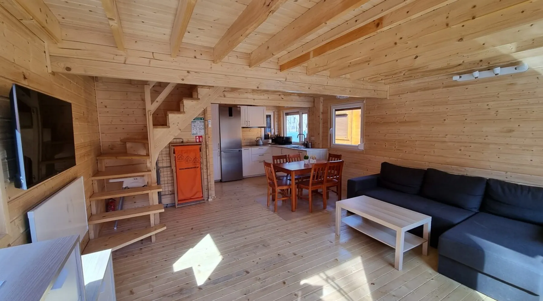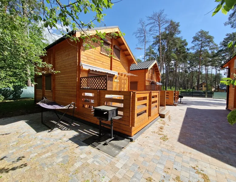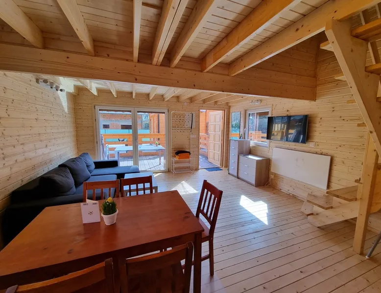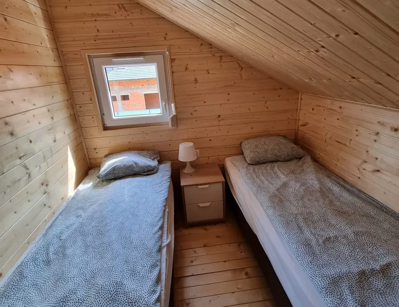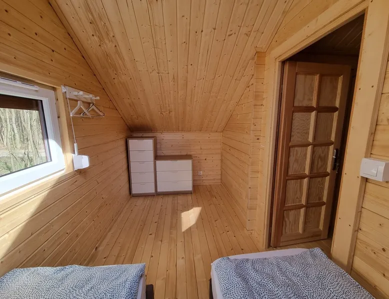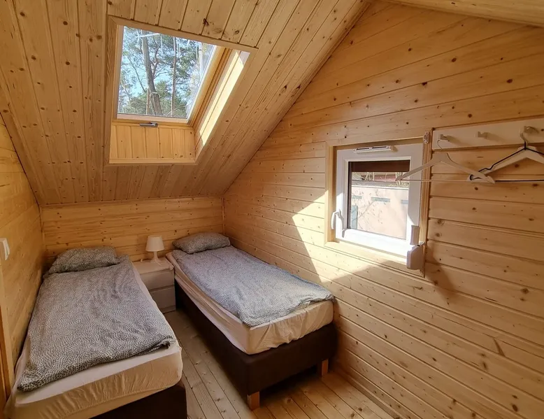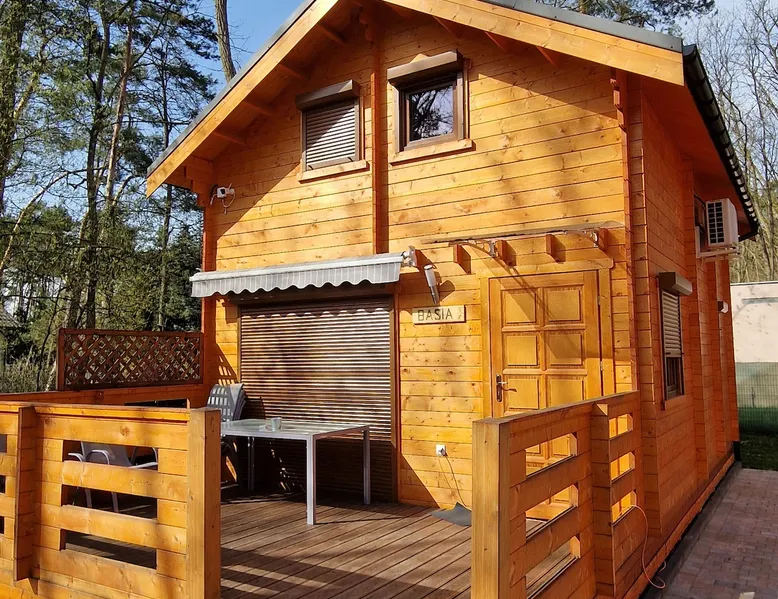 Cottage 70m2 two bathrooms 3 separate bedrooms fully equipped (air conditioning, microwave, refrigerator, dishwasher, terrace furniture plus sun loungers, wifi, awning, kayaks, pedal boats, floating pier... Other things to note Stay less than 4 nights mandatory cleaning fee 100zł. Dog (small and harmless breed) on the premises of the resort day 20zł payable in addition. During the high season stay minimum for a period of a week (with such a stay swimming equipment free of charge). High season holiday period in Poland plus all the so-called long weekends.