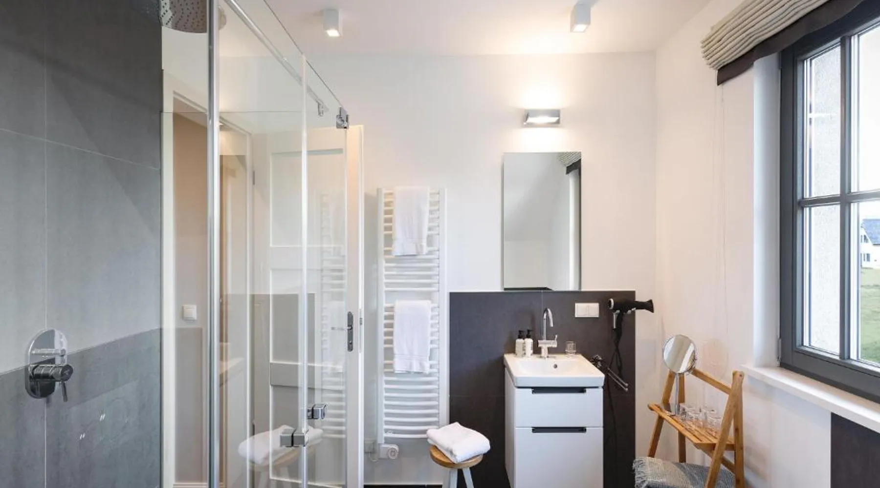 Spa and Wellness: Reetland am Meer in Dranske offers a spa and wellness center, sauna, sun terrace, and free WiFi. Guests can relax in the heated pool or enjoy the fitness room and hammam. Comfortable Accommodations: The holiday home features two bedrooms, a kitchenette, and a private bathroom. Additional amenities include a washing machine, dishwasher, and free toiletries. Outdoor Activities: Guests can enjoy cycling, barbecue, and outdoor dining areas. The property is a 6-minute walk from Northwest shore Wittow and Kreptitzer Heide Beach. Nearby Attractions: Cape Arkona is 9.3 mi away, Open Air Theater Ralswiek 24 mi, and Jasmund National Park 19 mi from the property. Featuring free toiletries, this holiday home includes a private bathroom with a walk-in shower, a bath and a hairdryer. Guests will find a stovetop, a refrigerator, a dishwasher and kitchenware in the well-fitted kitchen. The holiday home also comes with a barbecue. This holiday home has a washing machine, a private entrance, a flat-screen TV and a terrace. The unit has 2 beds.