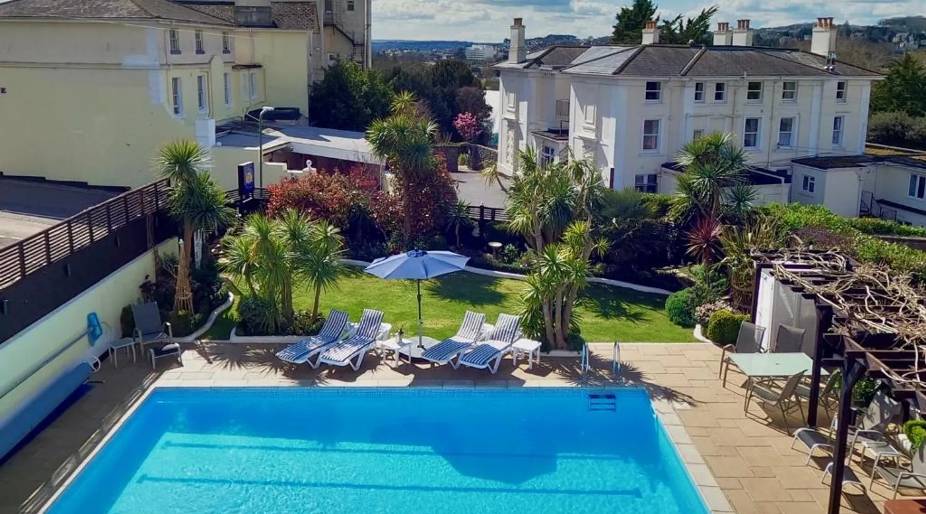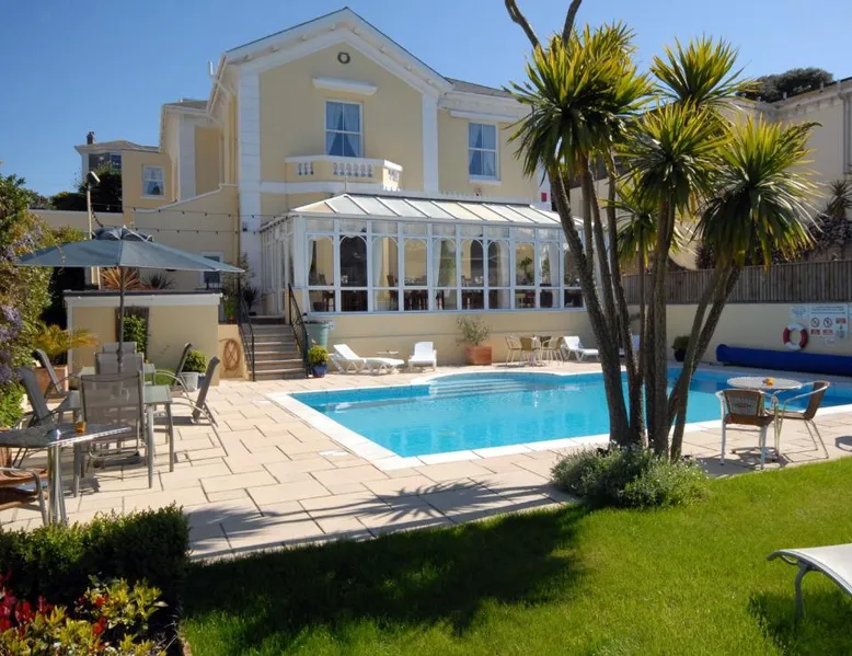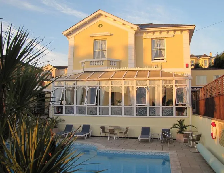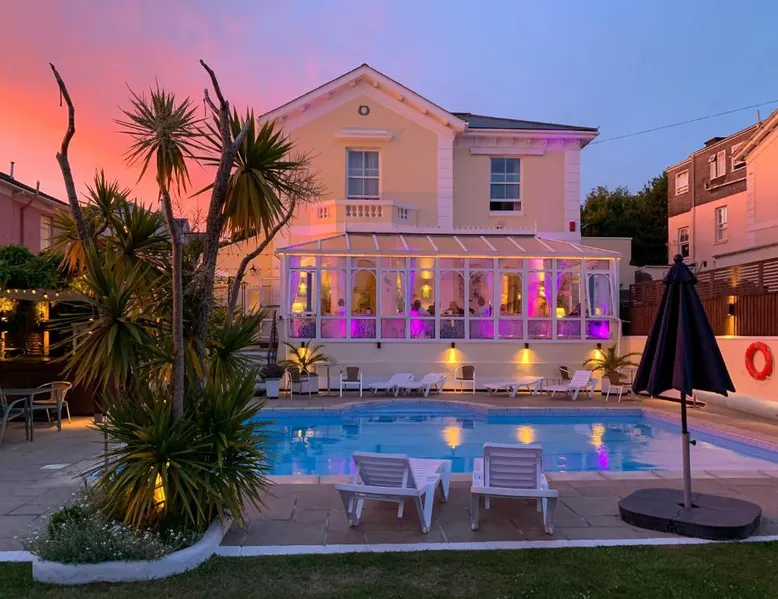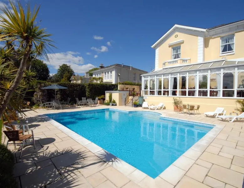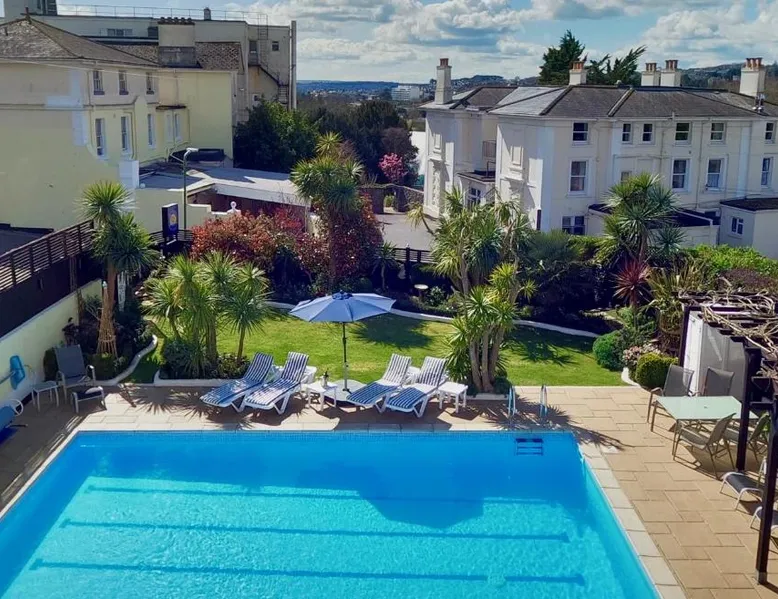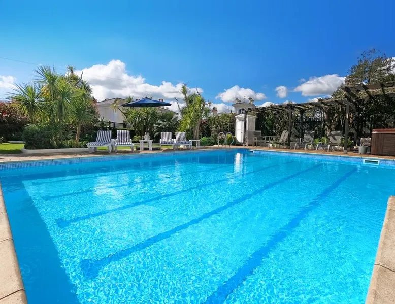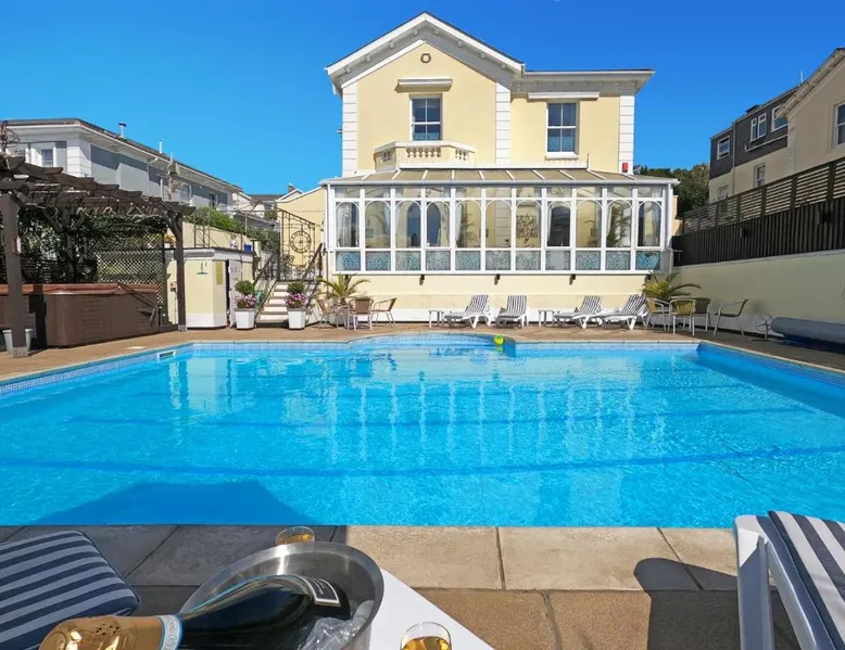On a quiet tree-lined road, overlooking its own secluded gardens and swimming pool, this adult-only hotel offers a range of facilities and services for a pleasant and relaxing stay. Free Wi-Fi is available in all rooms. Enjoy a drink in the spacious colonial-style bar; soak up the Riviera sunshine in the sun lounge; or catch a glimpse of the bay from the terrace. Breakfast is included in all room rates, with a full English and continental selection available. A light lunch menu is also available during peak season. First-floor contemporary styled open-plan suite overlooking the pool and garden.