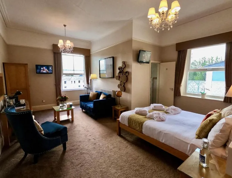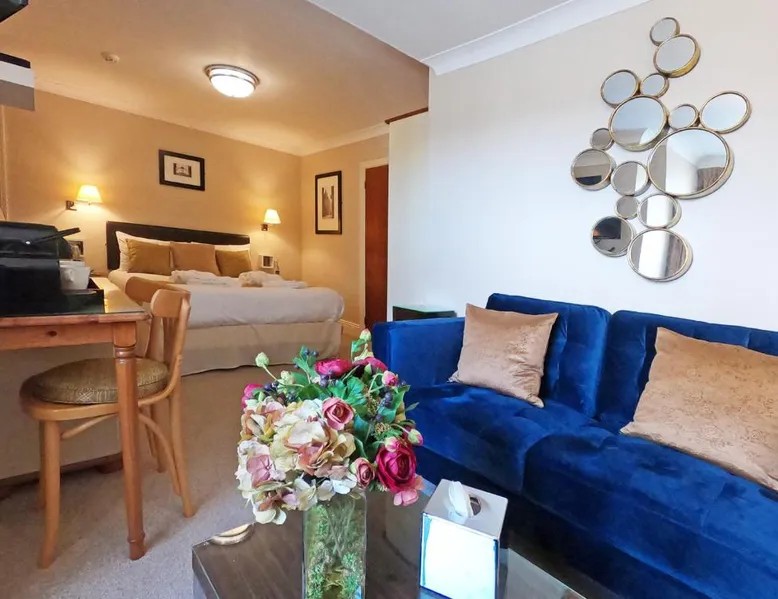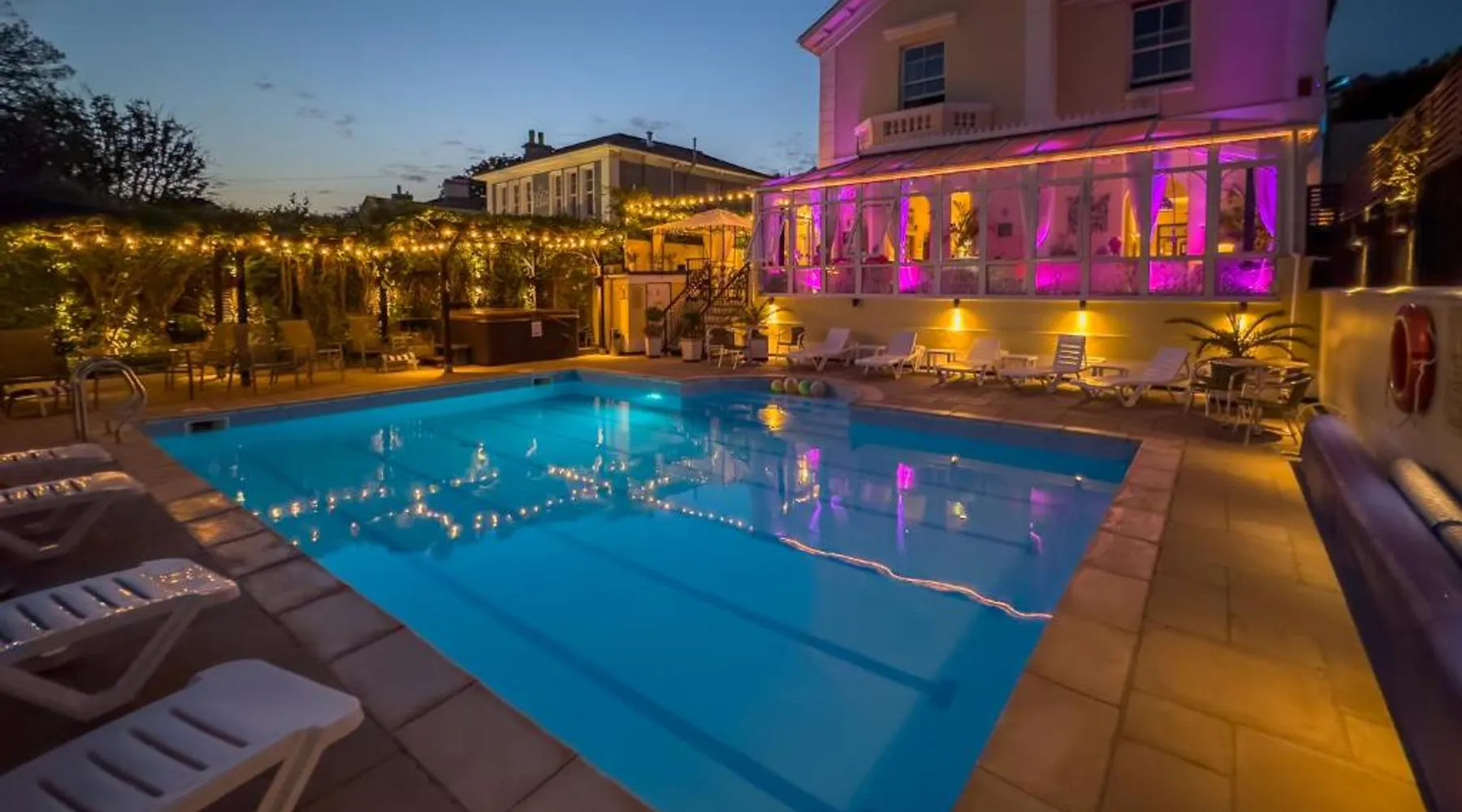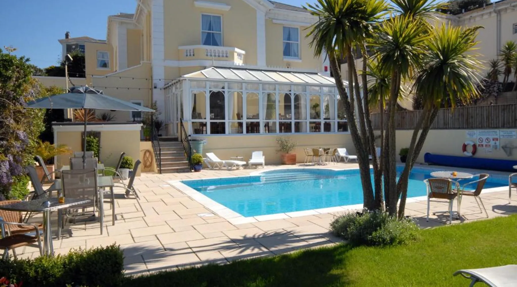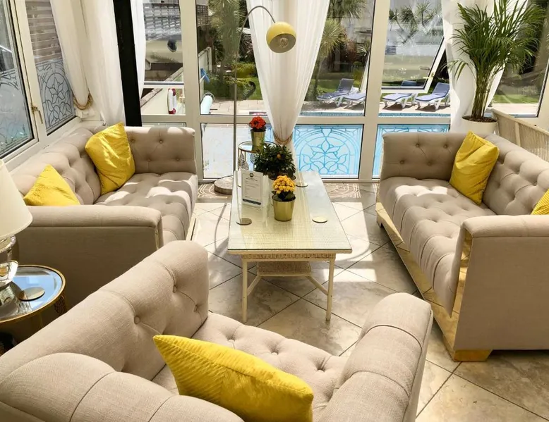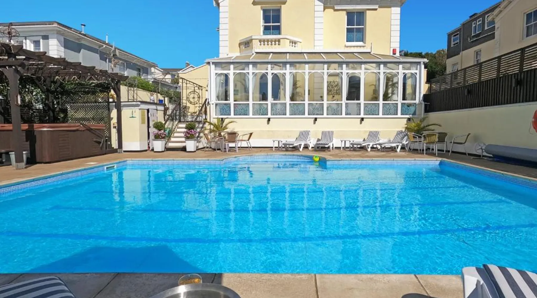On a quiet tree-lined road, overlooking its own secluded gardens and swimming pool, this adult-only hotel offers a range of facilities and services for a pleasant and relaxing stay. Free Wi-Fi is available in all rooms. Enjoy a drink in the spacious colonial-style bar; soak up the Riviera sunshine in the sun lounge; or catch a glimpse of the bay from the terrace. Breakfast is included in all room rates, with a full English and continental selection available. A light lunch menu is also available during peak season. First-floor contemporary styled open-plan suite overlooking the pool and garden.