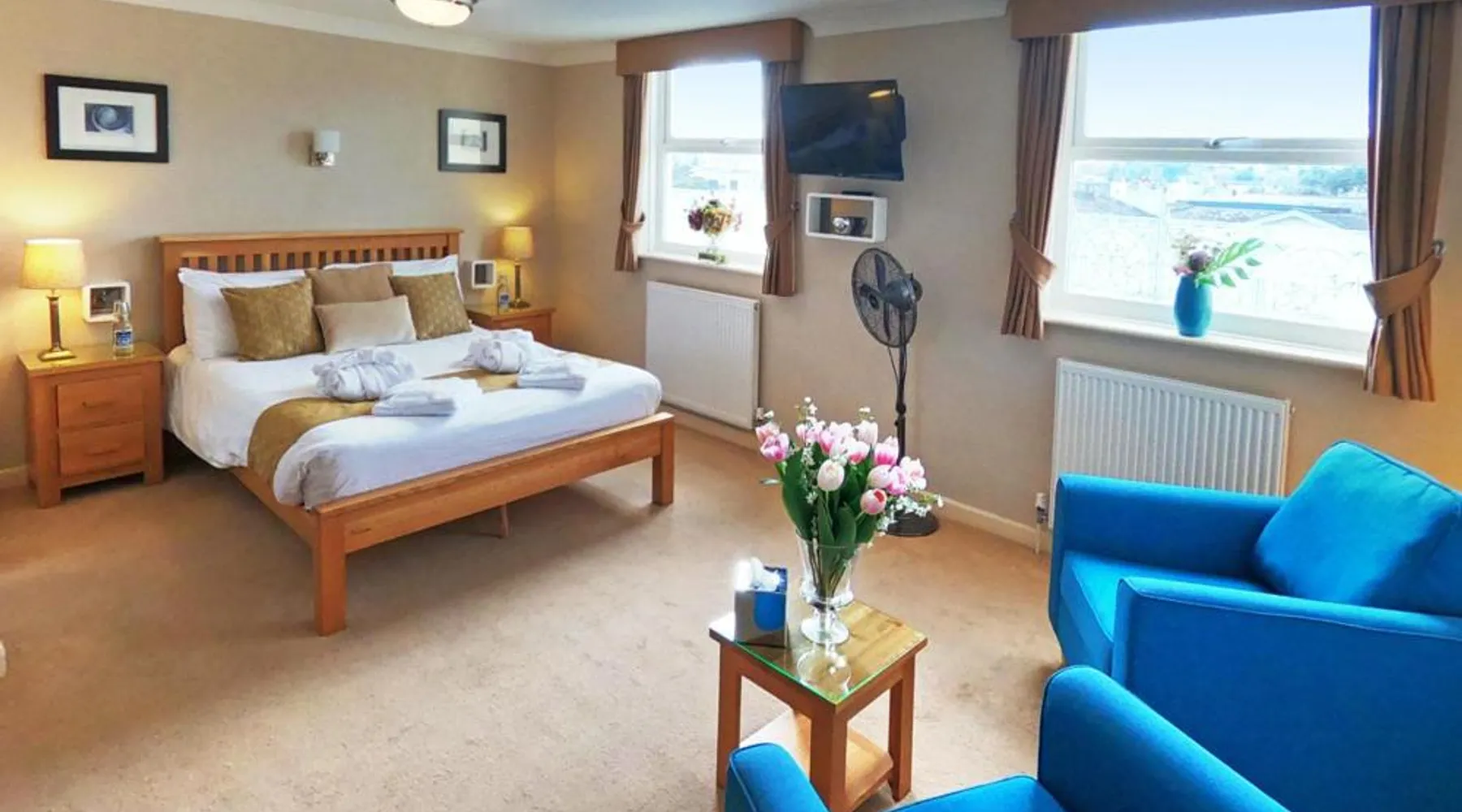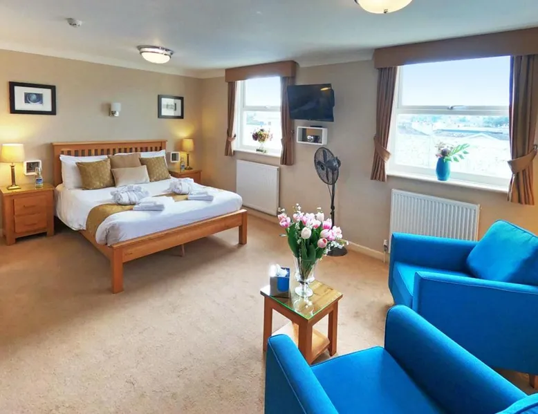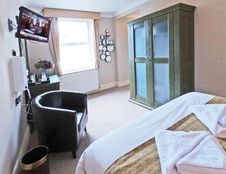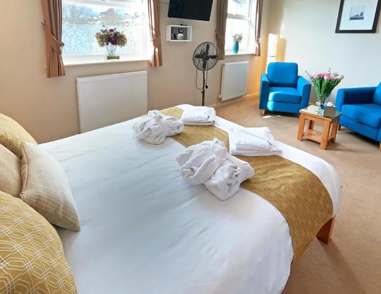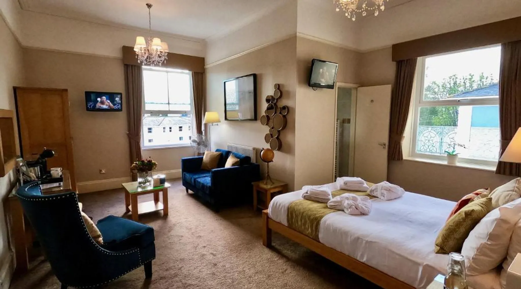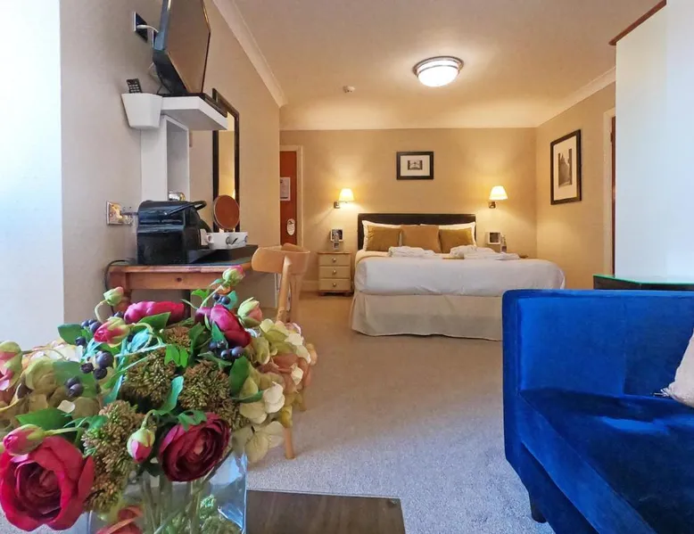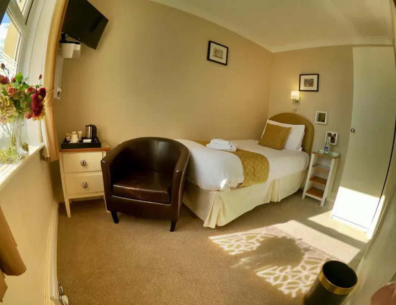 On a quiet tree-lined road, overlooking its own secluded gardens and swimming pool, this adult-only hotel offers a range of facilities and services for a pleasant and relaxing stay. Free Wi-Fi is available in all rooms. Enjoy a drink in the spacious colonial-style bar; soak up the Riviera sunshine in the sun lounge; or catch a glimpse of the bay from the terrace. Breakfast is included in all room rates, with a full English and continental selection available. A light lunch menu is also available during peak season. First-floor contemporary styled open-plan suite overlooking the pool and garden.
