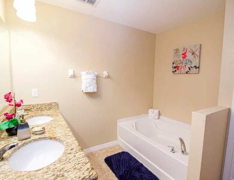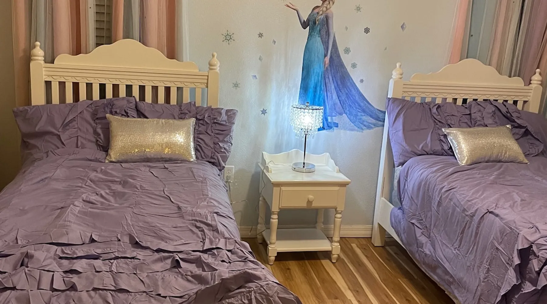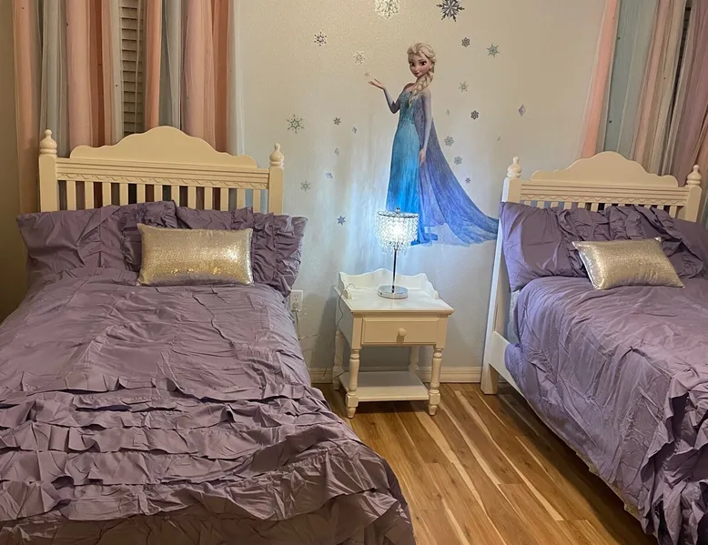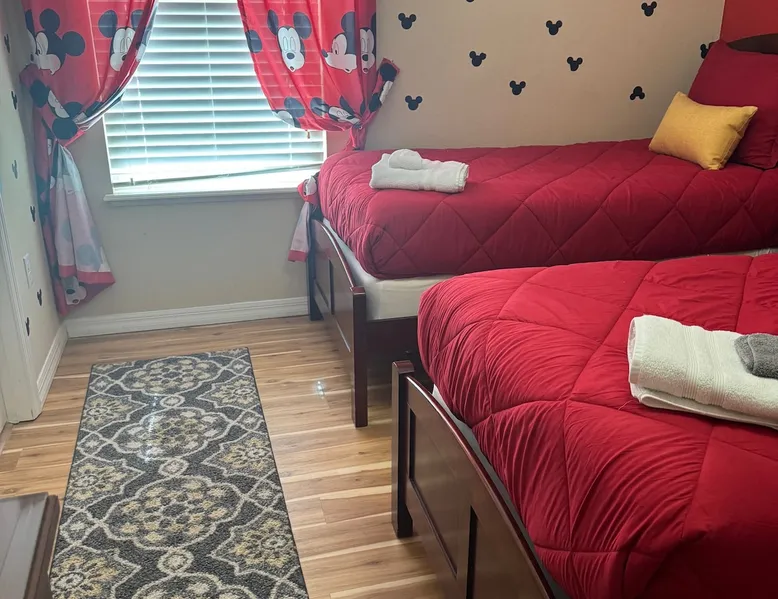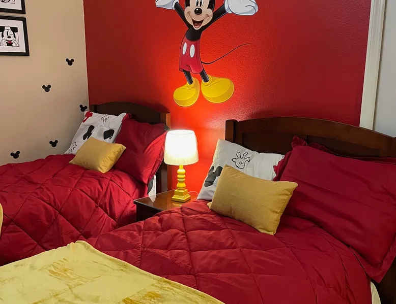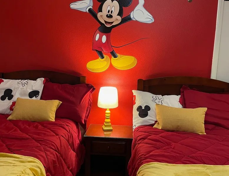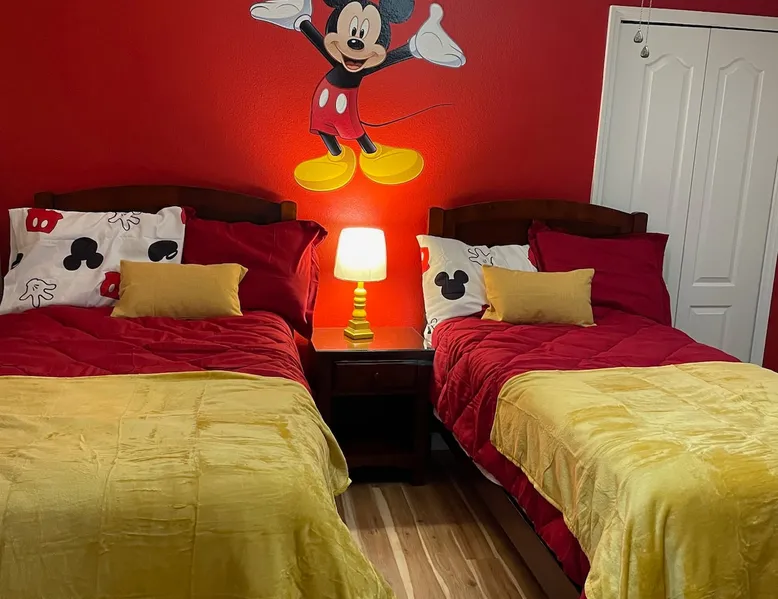 Newly Updated 5 bedrooms, 4.5 bathrooms, with Mickey and Princess Theme room along with Avenger Game Room, Very Comfortable ground floor living area with 1 King Suite, first floor relaxation area with Arcade Game Room, private pool and spa with Pool Heat extra cost for Winter. Less than 10 minutes from Disney World and Central Florida attractions. This new luxurious villa boasts beautiful décor with Mickey, Princess rooms with Avenger Theme Game Room located at Tuscany at West side The space Property is 5 Bed 4.5 Bath Villa with POOL and SPA with Heat as extra cost, we normally operate the Pool Heat during Dec - April