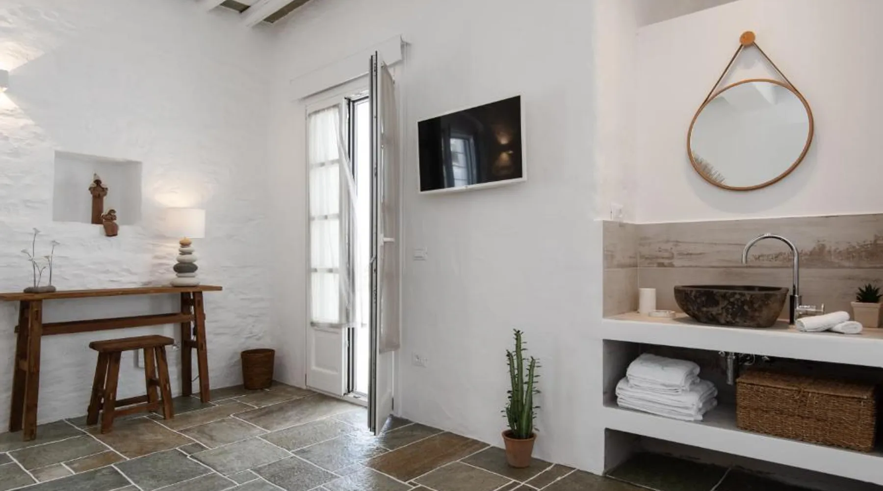 Comfortable Accommodations: Nerites residence in Apollonia Sifnos offers a holiday home with one bedroom and two bathrooms. The living room features a sofa bed and a seating area, ideal for relaxation. Modern Amenities: Guests enjoy free WiFi, air-conditioning, and a fully equipped kitchenette. Additional amenities include a terrace, balcony, washing machine, and free parking. Convenient Location: Located 32 mi from Milos Island National Airport, the property is 1.9 mi from Poulati Beach and 5 mi from Chrisopigi Monastery. Highly rated for its convenient location. This air-conditioned holiday home includes 1 living room, 1 separate bedroom and 2 bathrooms with a shower. The holiday home's kitchenette is available for cooking and storing food. Boasting a terrace with garden views, this holiday home also offers a washing machine and a flat-screen TV. The unit has 3 beds.