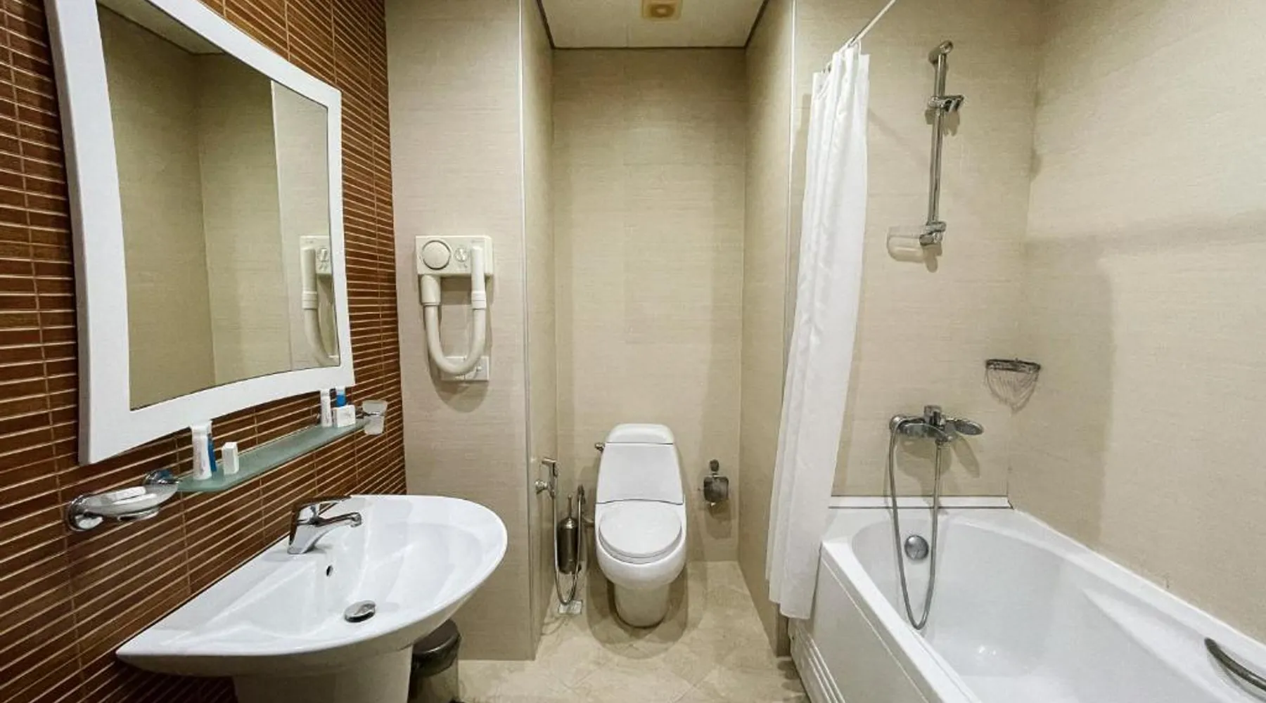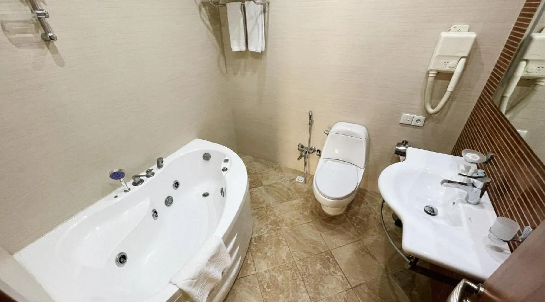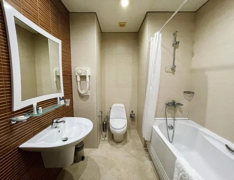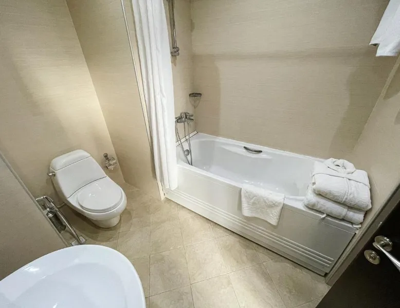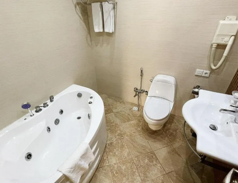 Comfortable Accommodations: Austin Hotel Baku in Baku offers family rooms with air-conditioning, private bathrooms, and city views. Each room includes a work desk, mini-bar, and free WiFi. Wellness and Leisure: Guests can enjoy spa facilities, a sauna, fitness center, indoor swimming pool, and hot tub. Additional amenities include a lounge, fitness room, and bicycle parking. Dining Experience: The family-friendly restaurant serves halal and vegetarian breakfasts with local specialties, warm dishes, fresh pastries, and more. A bar offers a variety of beverages. Prime Location: Located 15 mi from Heydar Aliyev International Airport, the hotel is a short walk from Fountains Square and near attractions such as Maiden Tower and Palace of The Shirvanshahs. An ice-skating rink is in the surroundings. This twin/double room features a hot tub. Featuring free toiletries and bathrobes, this twin/double room includes a private bathroom with a bath, a shower and a bidet. The spacious air-conditioned twin/double room features a flat-screen TV with satellite channels, a private entrance, soundproof walls, a mini-bar as well as city views. The unit has 2 beds.