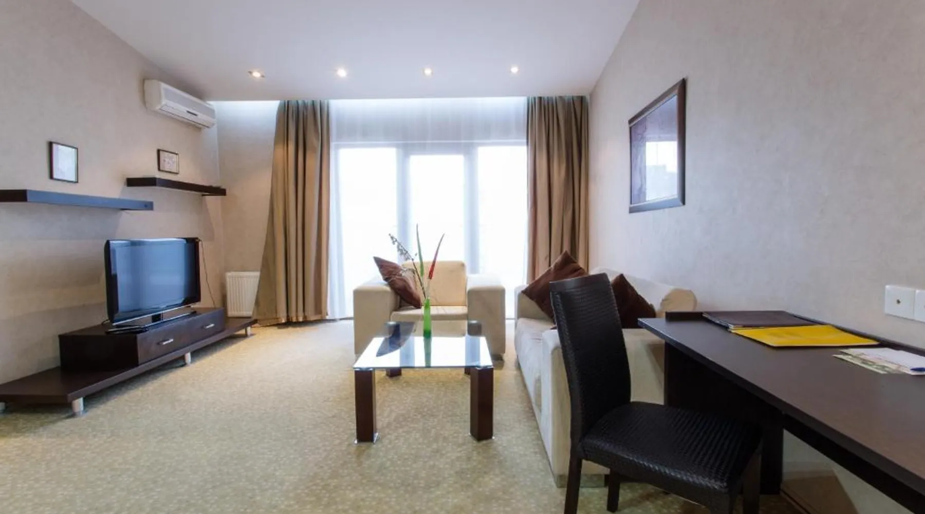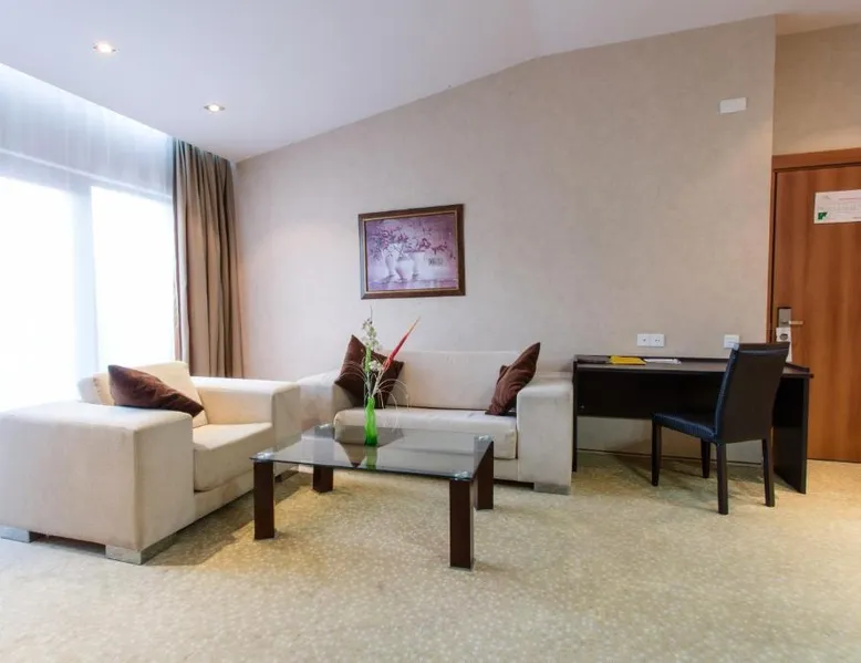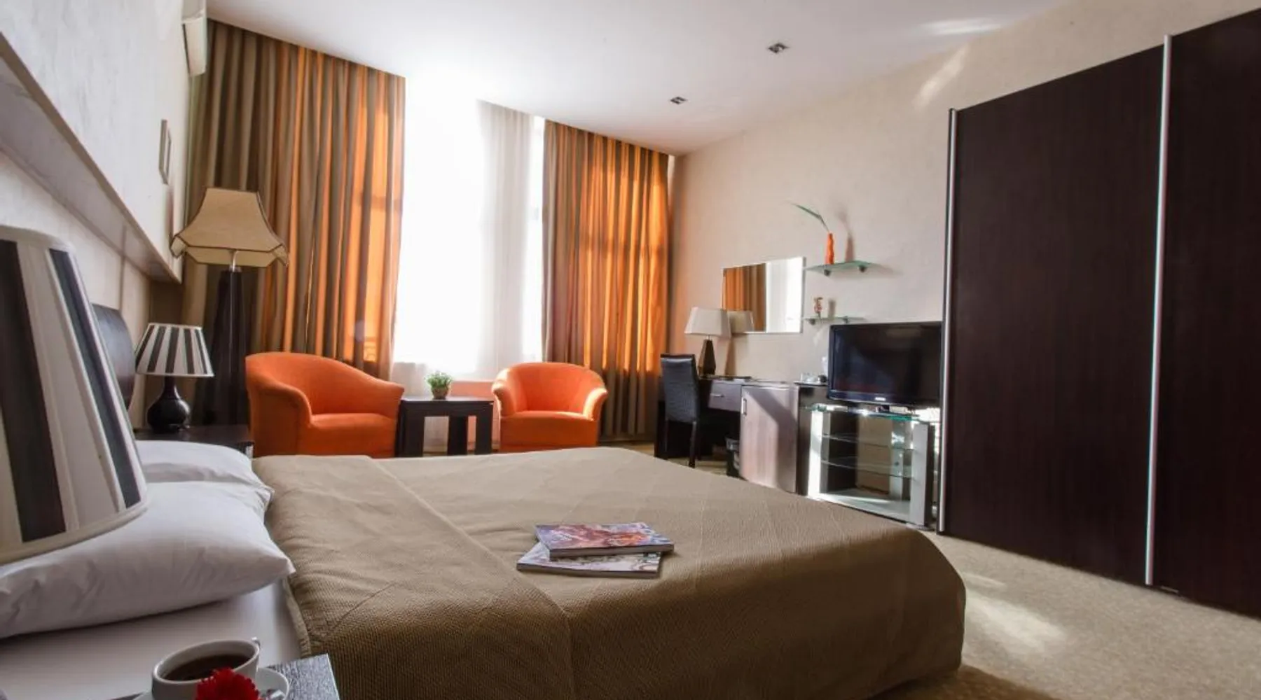 Comfortable Accommodations: Austin Hotel Baku in Baku offers family rooms with air-conditioning, private bathrooms, and city views. Each room includes a work desk, mini-bar, and free WiFi. Wellness and Leisure: Guests can enjoy spa facilities, a sauna, fitness center, indoor swimming pool, and hot tub. Additional amenities include a lounge, fitness room, and bicycle parking. Dining Experience: The family-friendly restaurant serves halal and vegetarian breakfasts with local specialties, warm dishes, fresh pastries, and more. A bar offers a variety of beverages. Prime Location: Located 15 mi from Heydar Aliyev International Airport, the hotel is a short walk from Fountains Square and near attractions such as Maiden Tower and Palace of The Shirvanshahs. An ice-skating rink is in the surroundings. This twin/double room features a hot tub. Featuring free toiletries and bathrobes, this twin/double room includes a private bathroom with a bath, a shower and a bidet. The spacious air-conditioned twin/double room features a flat-screen TV with satellite channels, a private entrance, soundproof walls, a mini-bar as well as city views. The unit has 2 beds.