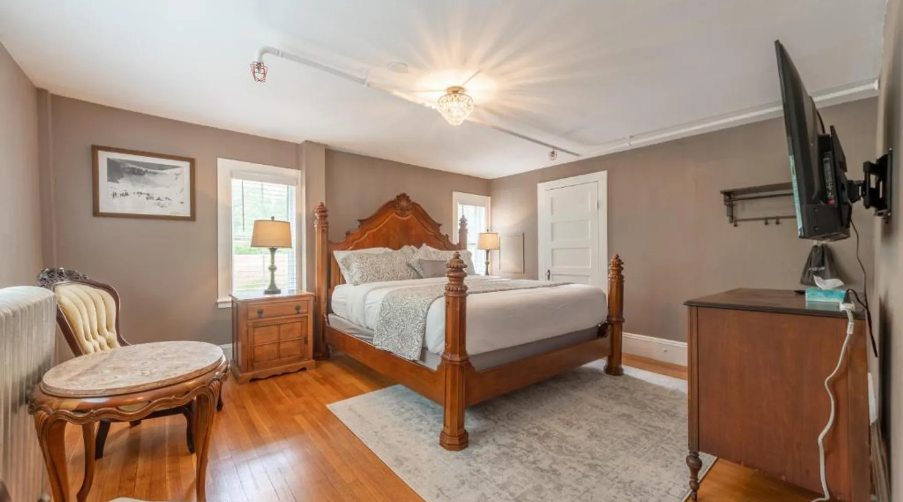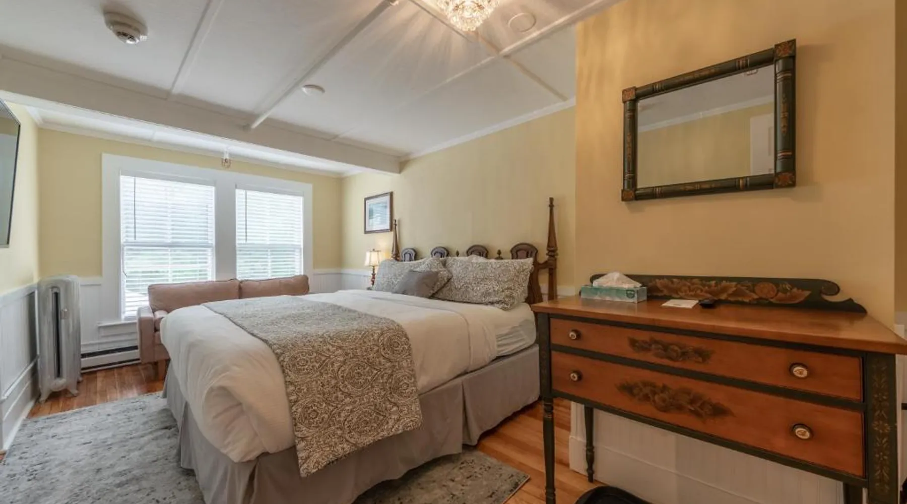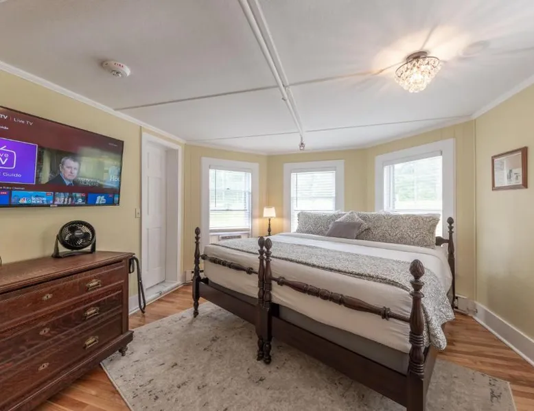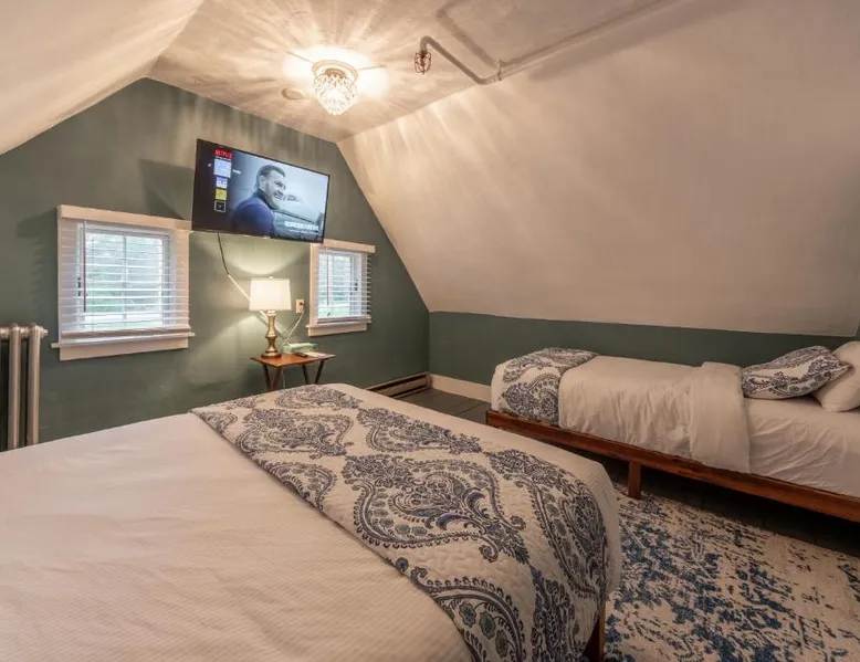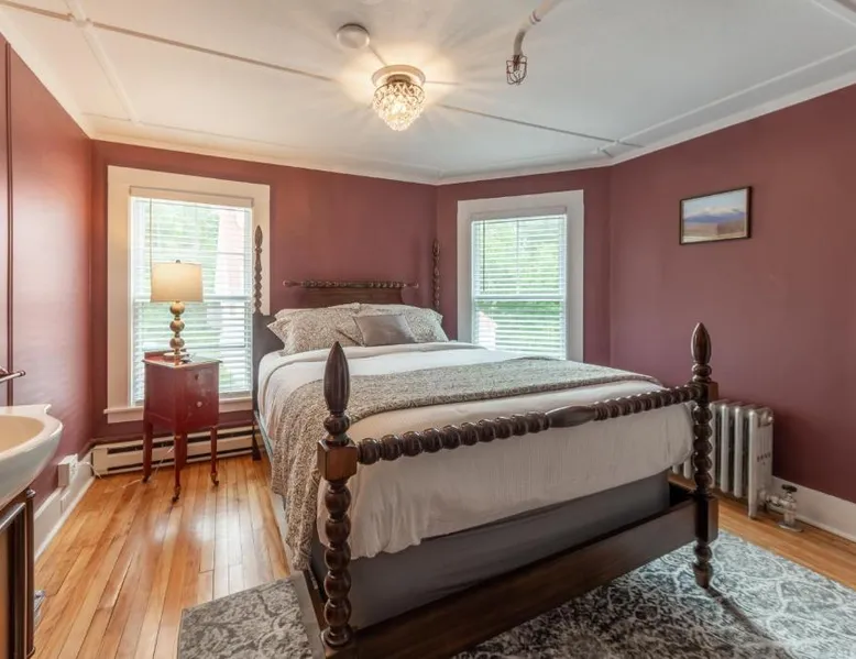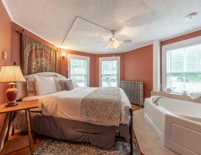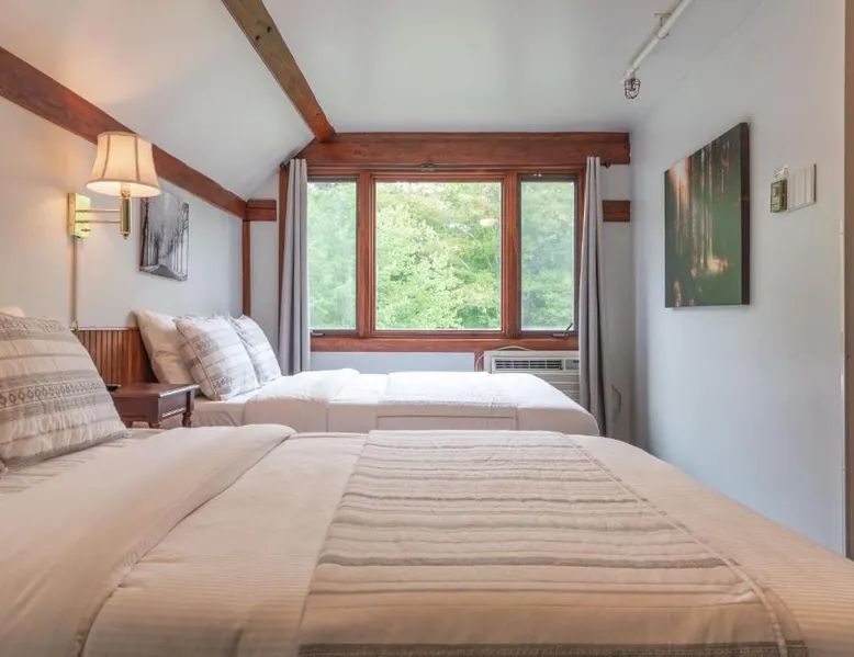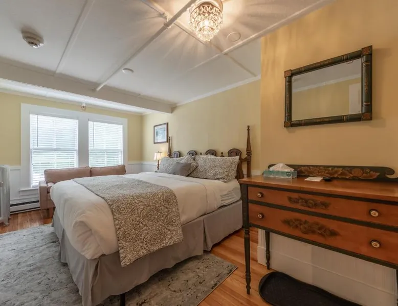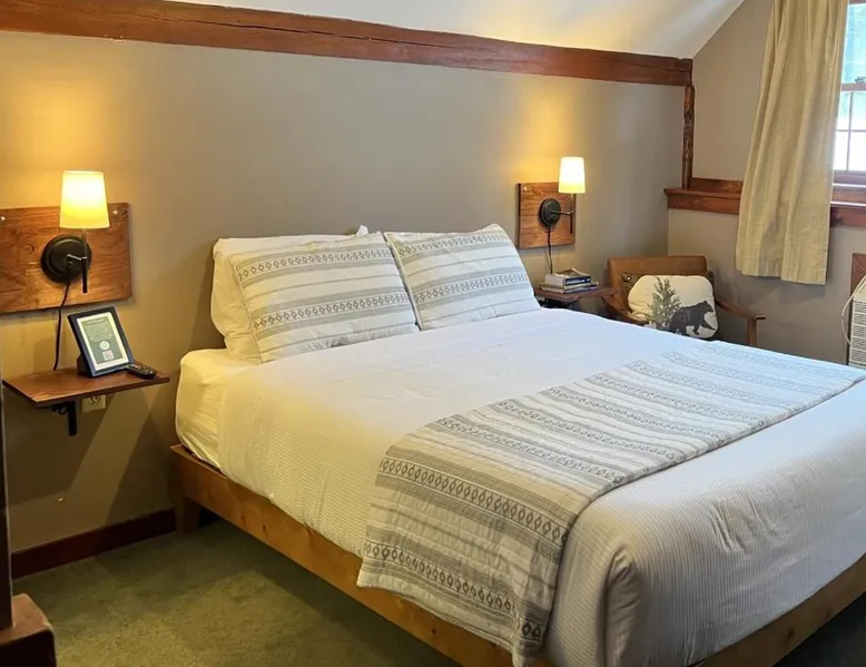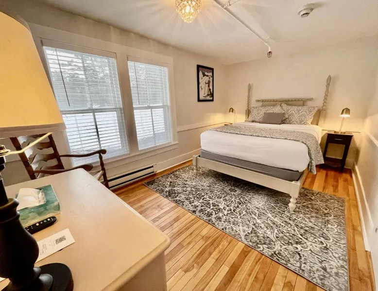 Historic Charm: Cranmore Mountain Lodge Bed & Breakfast in North Conway is housed in a historic building, offering a unique setting. Guests enjoy a sun terrace, garden, and a seasonal outdoor swimming pool. Comfortable Accommodations: Rooms feature air-conditioning, private bathrooms with free toiletries, and modern amenities such as streaming services and TV. Additional facilities include an outdoor fireplace, hot tub, and concierge service. Delicious Breakfast: A variety of breakfast options are available, including continental, American, vegetarian, vegan, and gluten-free. Local specialties, warm dishes, juice, pancakes, cheese, and fruits are served daily. Activities and Surroundings: Guests can enjoy skiing, cycling, and other winter sports. Nearby attractions include Kahuna Laguna (2.5 mi), Story Land Amusement Park (5.6 mi), and Mount Washington (27 mi). Portland International Jetport is 58 mi away. Offering free toiletries and bathrobes, this double room includes a private bathroom with a walk-in shower and a bath or a shower. The double room offers air conditioning, parquet floors, heating and a flat-screen TV with streaming services. The unit offers 1 bed.