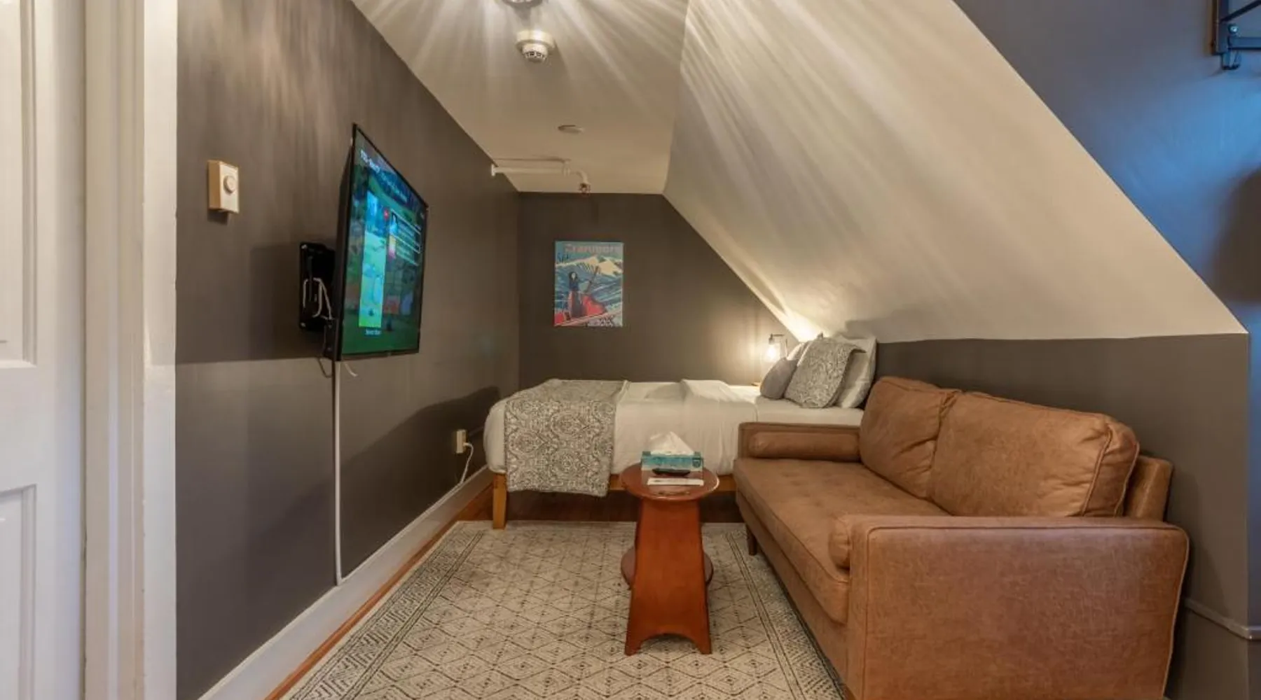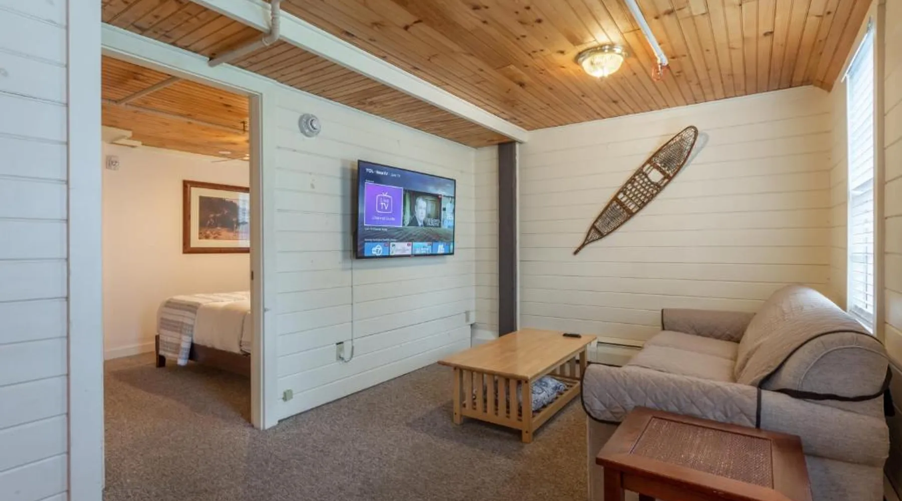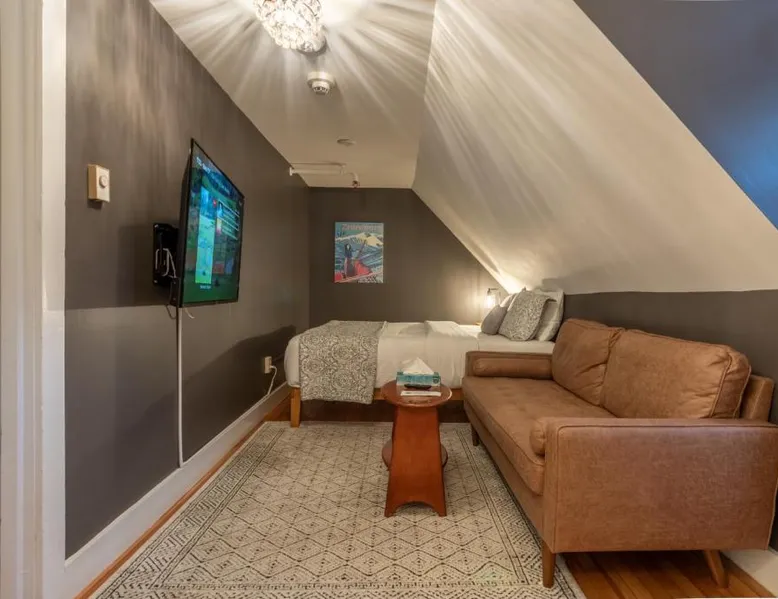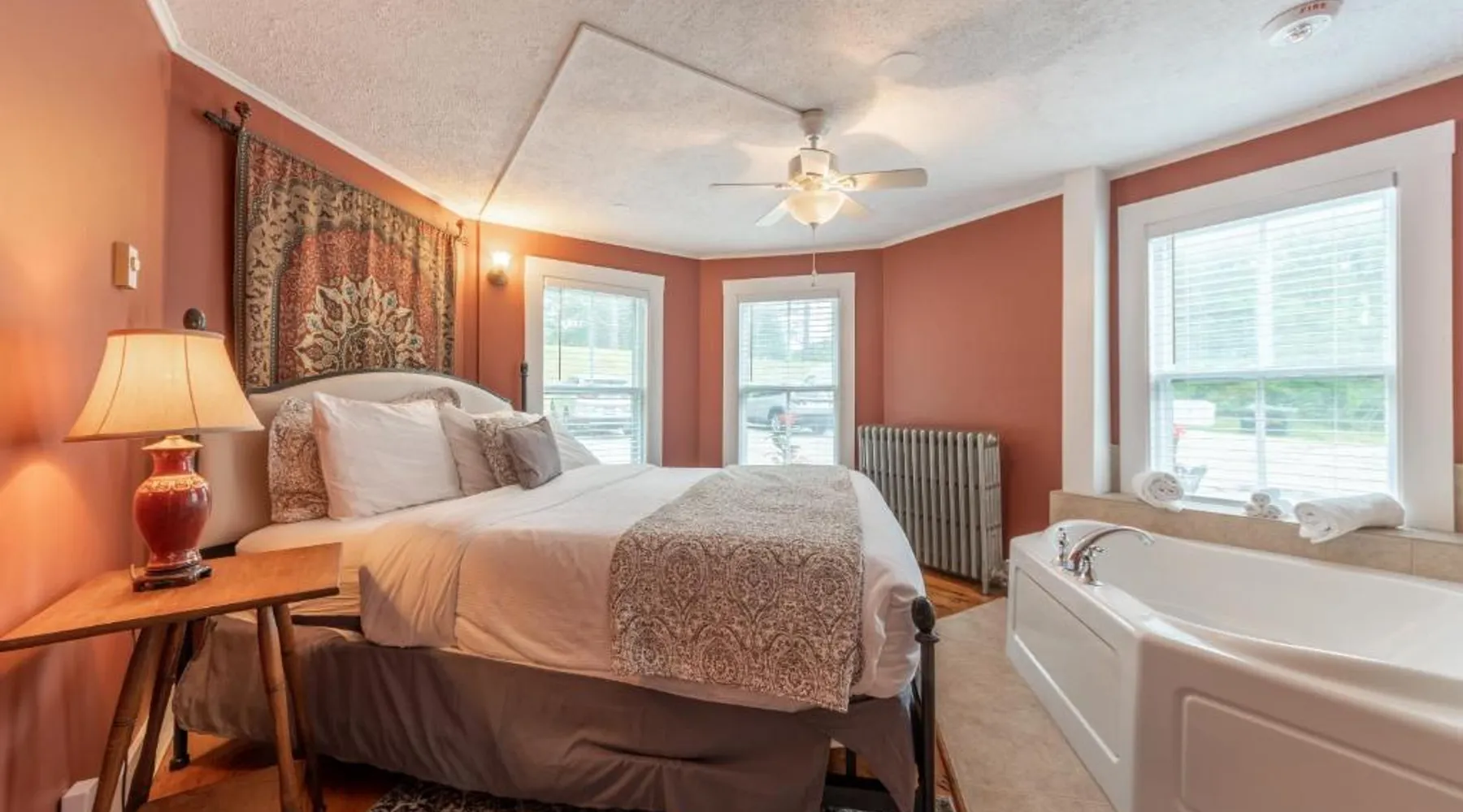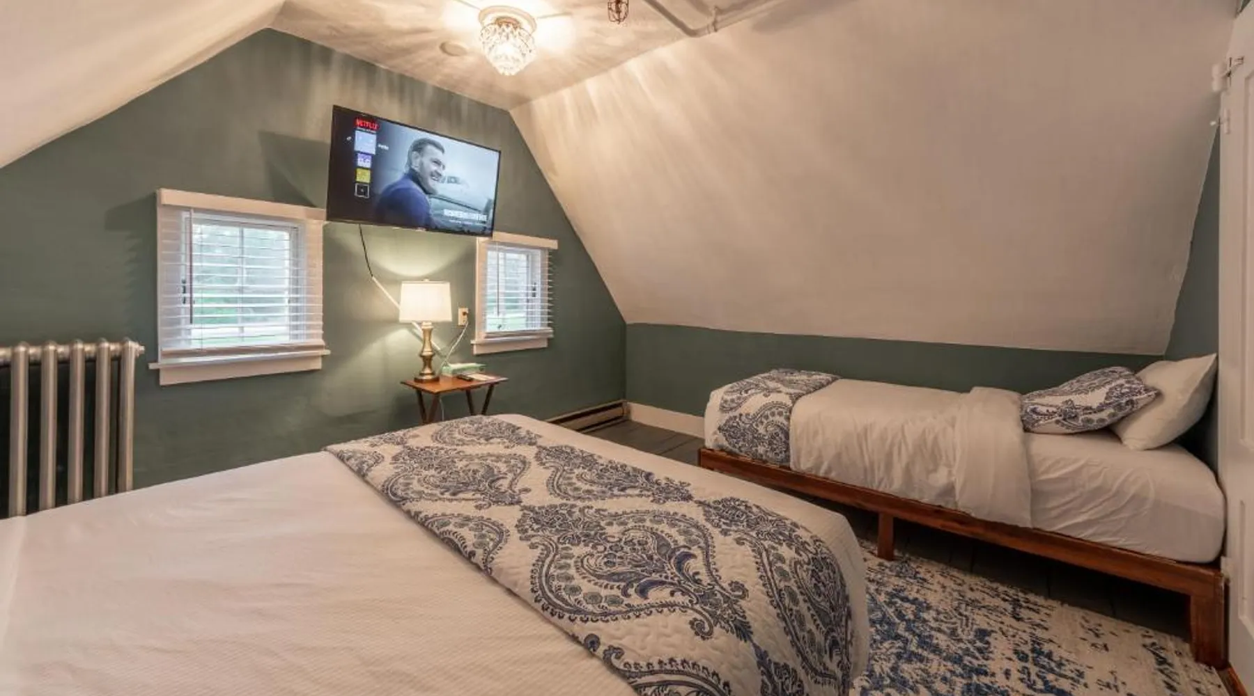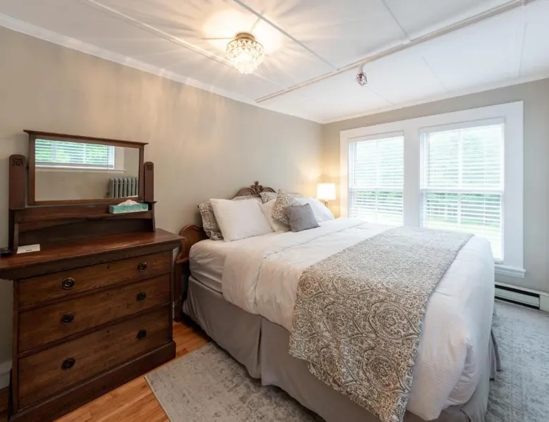 Historic Charm: Cranmore Mountain Lodge Bed & Breakfast in North Conway is housed in a historic building, offering a unique setting. Guests enjoy a sun terrace, garden, and a seasonal outdoor swimming pool. Comfortable Accommodations: Rooms feature air-conditioning, private bathrooms with free toiletries, and modern amenities such as streaming services and TV. Additional facilities include an outdoor fireplace, hot tub, and concierge service. Delicious Breakfast: A variety of breakfast options are available, including continental, American, vegetarian, vegan, and gluten-free. Local specialties, warm dishes, juice, pancakes, cheese, and fruits are served daily. Activities and Surroundings: Guests can enjoy skiing, cycling, and other winter sports. Nearby attractions include Kahuna Laguna (2.5 mi), Story Land Amusement Park (5.6 mi), and Mount Washington (27 mi). Portland International Jetport is 58 mi away. Offering free toiletries and bathrobes, this double room includes a private bathroom with a walk-in shower and a bath or a shower. The double room offers air conditioning, parquet floors, heating and a flat-screen TV with streaming services. The unit offers 1 bed.