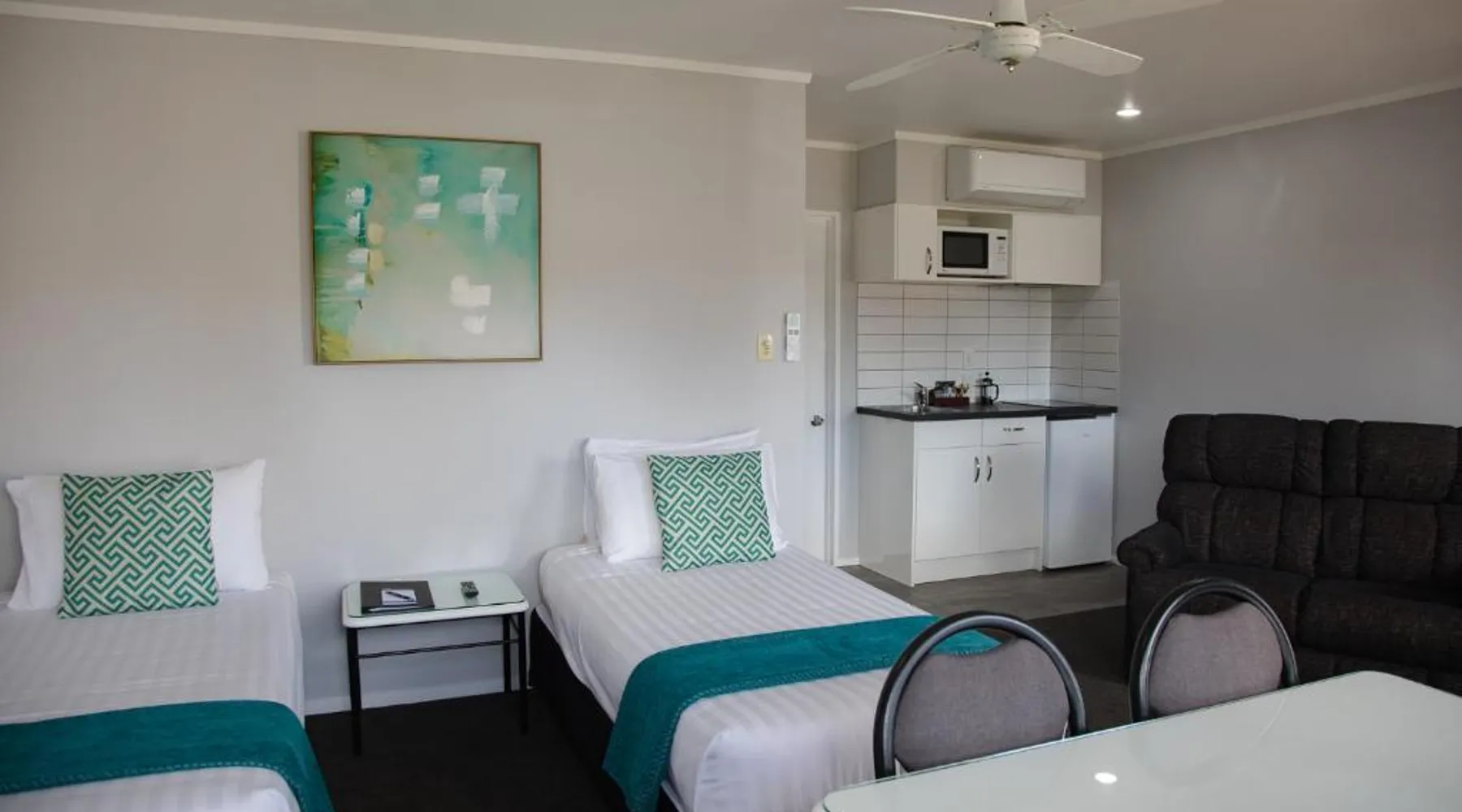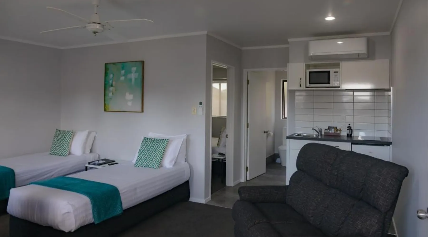 BKs Palm Court Motor Lodge is a 5-minute drive from Gisborne Beach and Gisborne’s town center. It offers barbecue facilities, free on-site parking and free Wi-Fi access. The heated guest rooms are equipped with electric blankets, a microwave and a flat-screen TV. The private bathroom offers shower. BKs Palm Court Motor Lodge is 1.7 mi from Gisborne Airport and 0.9 mi from Poverty Bay Golf Club. It is 1.5 mi from Gisborne Olympic Pool Complex. This air-conditioned studio includes a kitchenette with stovetop. There is a recliner chair and a 32-inch Smart TV.