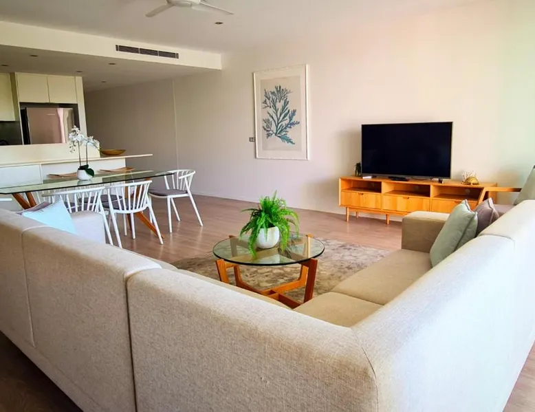 These stylish modern apartments are offer an absolute beachfront location, overlooking the clear waters of Cabarita Beach. These apartments have stunning views of the Pacific Ocean. All apartments at The Beach Cabarita feature spacious open-plan living areas, private bathrooms, polished timber floors and a well-appointed kitchen and laundry. Each apartment has a balcony with BBQ facilities and an outdoor setting. The terraced pool area features warm and cold pools, a spa pool, landscaped gardens and private sun decks. This seaside property is only 20 minutes’ drive from Gold Coast International Airport. 3 Bedroom Accessibility Apartment is self-managed/self-catered and spacious for mobility/wheelchair access and offers 3 Bedrooms 2 x Queen 2x single beds ( can be joined together), 2 Bathrooms 1 x wheelchair accessible 1 x standard bathroom, full kitchen, laundry and living area which leads out to private balcony with BBQ that looks towards the Surf Club. Foxtel, Wi-Fi and beach towels are available in this unit. There is secure parking in the basement of the complex for 2 vehicles. There is elevator access to this unit. Each apartment has some essential provisions for arrival, tea/coffee, small milk, laundry powder sachets, dishwashing/liquid sachets and bathroom products.