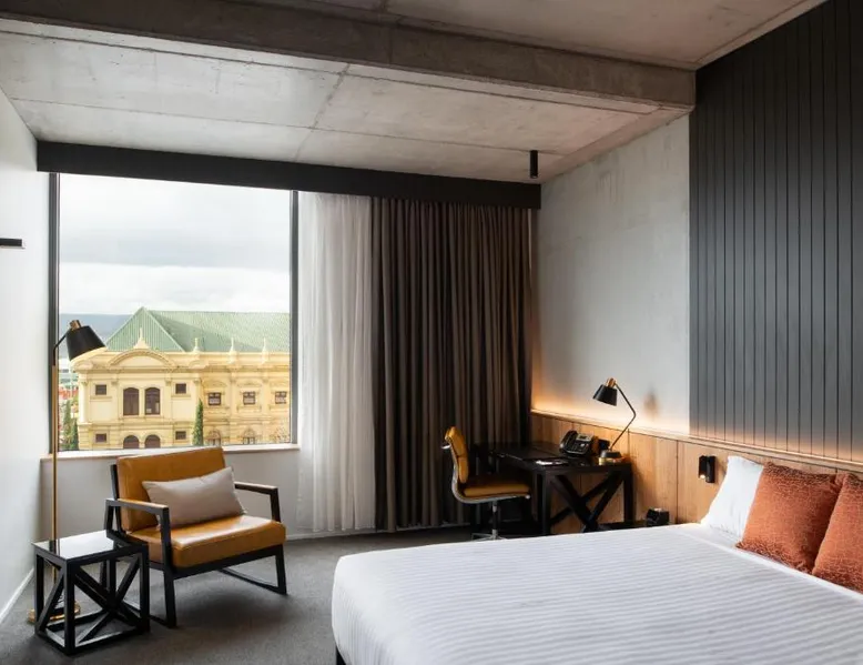 Comfortable Accommodations: Hotel Verge Launceston in Launceston offers comfortable rooms with air-conditioning, private bathrooms, and city views. Each room includes a work desk, free toiletries, and soundproofing for a restful stay. Dining and Leisure: Guests can enjoy an à la carte breakfast, modern Australian cuisine at the family-friendly restaurant, and a bar. The hotel features a fitness center, coffee shop, outdoor seating area, and bicycle parking. Free WiFi is available throughout the property. Prime Location: Located 8.7 mi from Launceston Airport, the hotel is near attractions such as Launceston Tramway Museum (7-minute walk), Queen Victoria Museum (0.6 mi), and City Park (3-minute walk). Boating is available in the surrounding area. Highly rated for its restaurant, room comfort, and attentive staff. Providing free toiletries, this double room includes a private bathroom with a walk-in shower and a hairdryer. The spacious air-conditioned double room provides a flat-screen TV with streaming services, soundproof walls, a safe deposit box, an electric kettle as well as city views. The unit offers 1 bed.