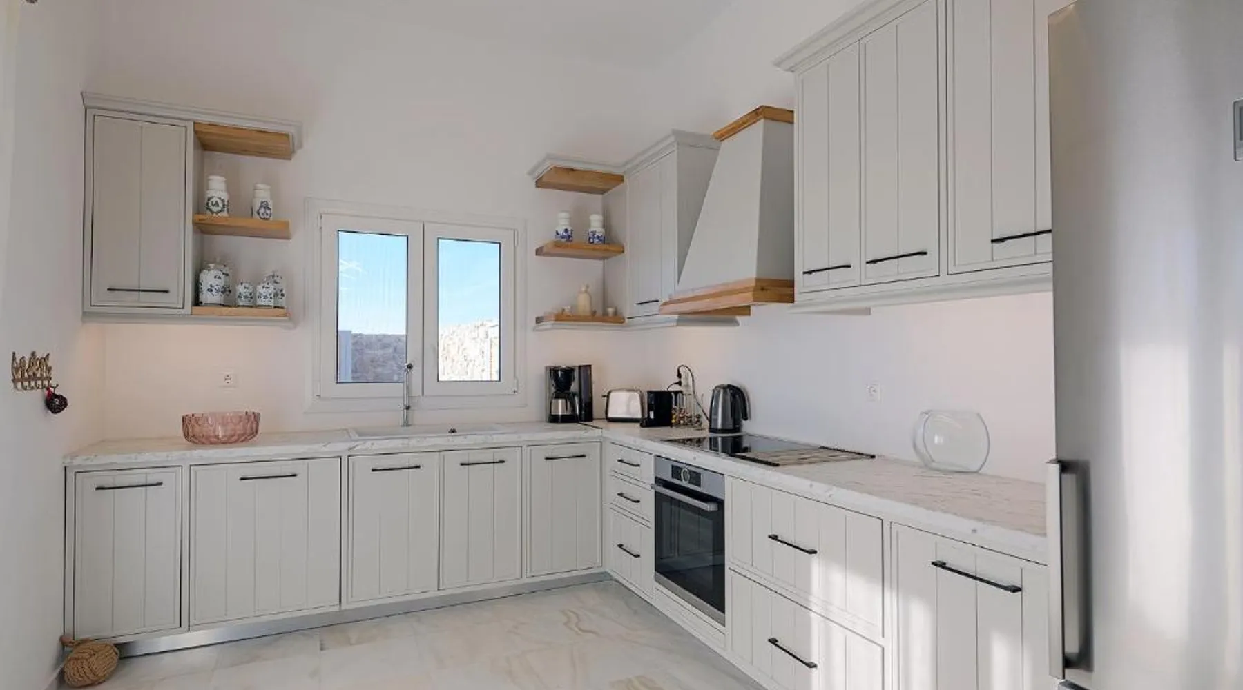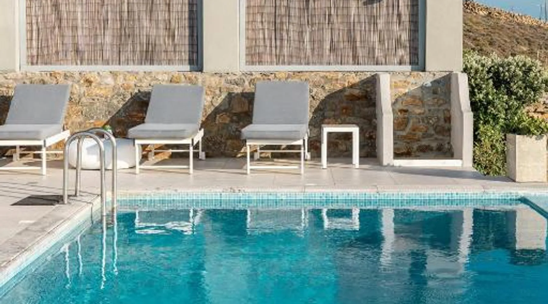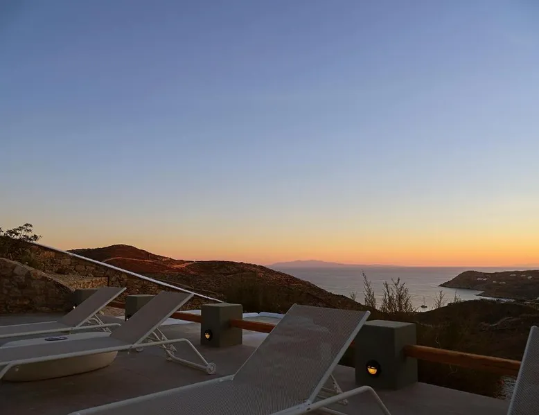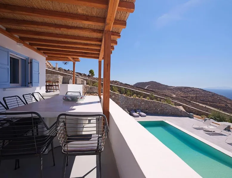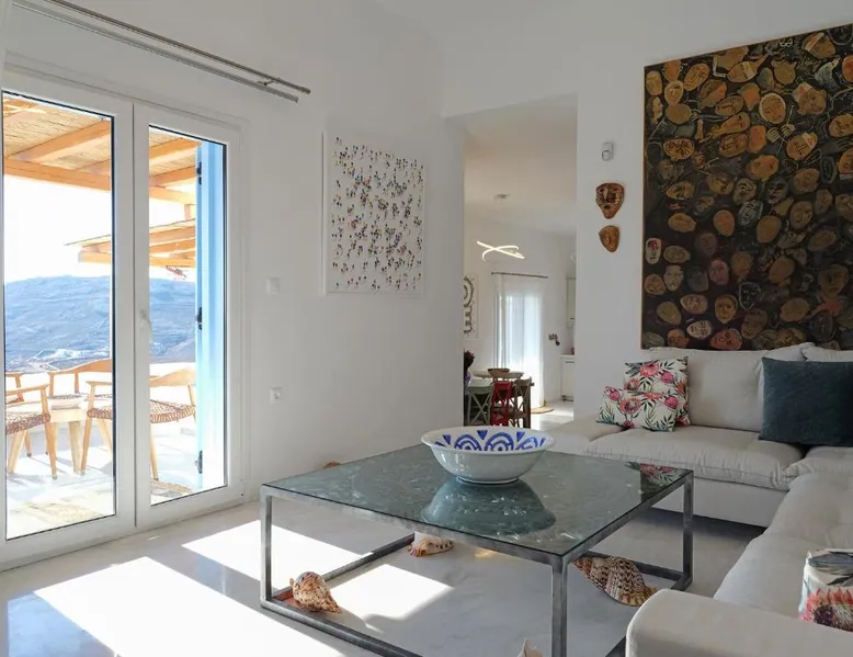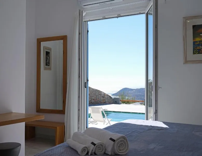 Elegant Accommodations: Chrysanthemo villas in Ano Mera offers a swimming pool with stunning views, a sun terrace, and a lush garden. Guests enjoy free WiFi throughout the property. Comfortable Amenities: The villa features air-conditioning, a fully equipped kitchen, and private bathrooms with modern amenities. Additional facilities include a washing machine, balcony, and outdoor seating area. Convenient Location: Located 3.7 mi from Mykonos Airport, the property is close to attractions such as Kalo Livadi Beach (1.7 mi) and Mykonos Windmills (6.2 mi). Free on-site parking is available. This villa's special feature is the pool with a view. This spacious villa consists of 1 living room, 4 separate bedrooms and 4 bathrooms with a walk-in shower and free toiletries. The fully equipped kitchen features a stovetop, a refrigerator, a dishwasher and kitchenware. The air-conditioned villa provides a flat-screen TV with satellite channels, a washing machine, a private entrance, soundproof walls as well as sea views. The unit offers 4 beds.