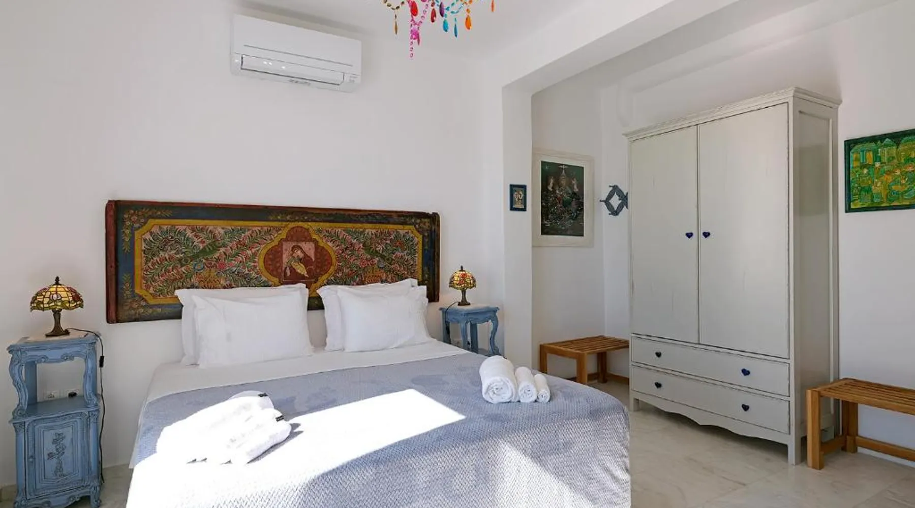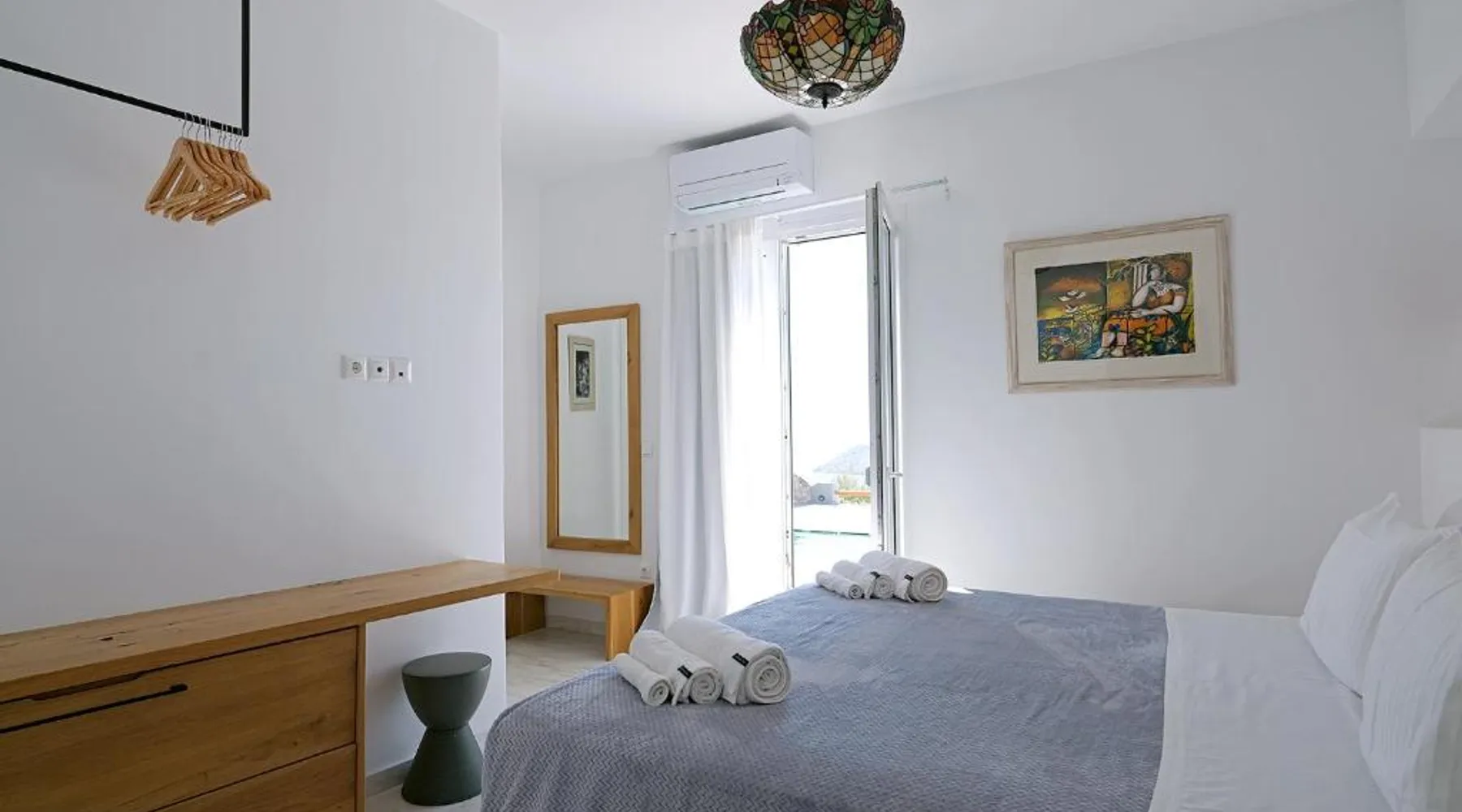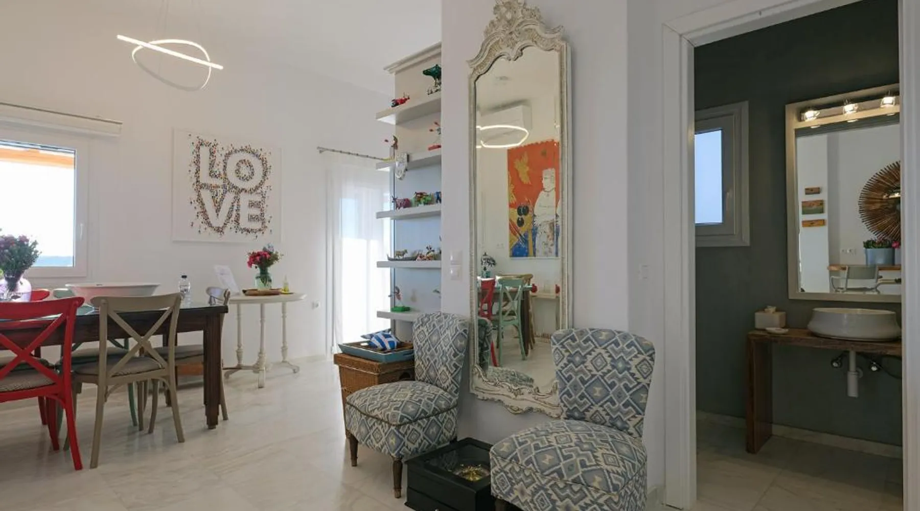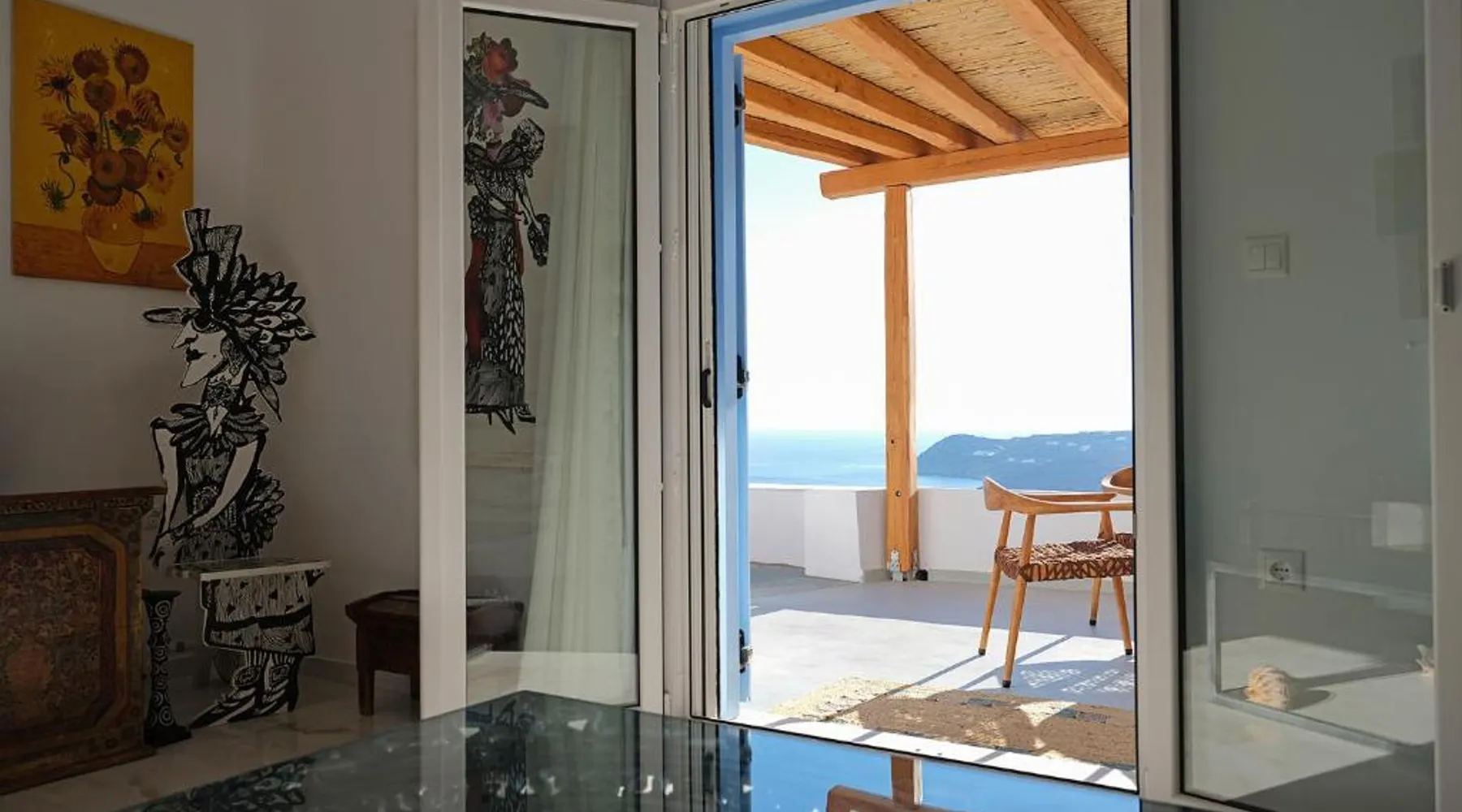 Elegant Accommodations: Chrysanthemo villas in Ano Mera offers a swimming pool with stunning views, a sun terrace, and a lush garden. Guests enjoy free WiFi throughout the property. Comfortable Amenities: The villa features air-conditioning, a fully equipped kitchen, and private bathrooms with modern amenities. Additional facilities include a washing machine, balcony, and outdoor seating area. Convenient Location: Located 3.7 mi from Mykonos Airport, the property is close to attractions such as Kalo Livadi Beach (1.7 mi) and Mykonos Windmills (6.2 mi). Free on-site parking is available. This villa's special feature is the pool with a view. This spacious villa consists of 1 living room, 4 separate bedrooms and 4 bathrooms with a walk-in shower and free toiletries. The fully equipped kitchen features a stovetop, a refrigerator, a dishwasher and kitchenware. The air-conditioned villa provides a flat-screen TV with satellite channels, a washing machine, a private entrance, soundproof walls as well as sea views. The unit offers 4 beds.