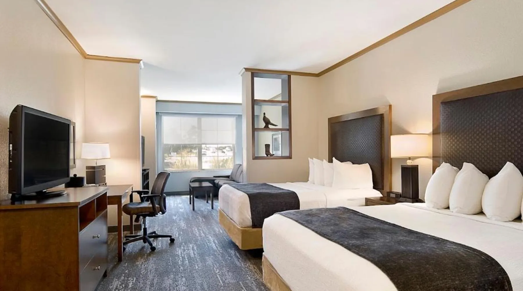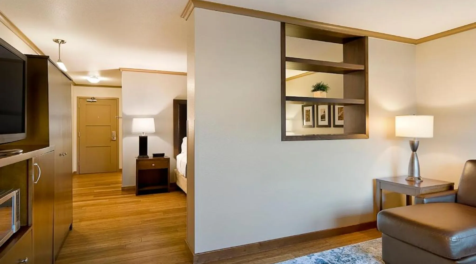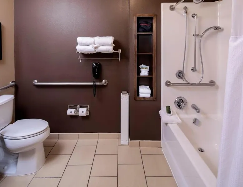 Comfortable Accommodations: ClubHouse Hotel and Suites in Pierre offers comfortable rooms with tea and coffee makers, refrigerators, and microwaves. Guests enjoy free WiFi, air-conditioning, and private bathrooms. Exceptional Facilities: The hotel features a fitness center, indoor swimming pool, terrace, and outdoor fireplace. Additional amenities include a hot tub, fitness room, and outdoor seating area. Dining Options: A restaurant serves American and Italian cuisines for lunch and dinner. The bar provides a relaxing atmosphere for guests. Convenient Location: Located 3.7 mi from Pierre Regional Airport and 1.2 mi from the South Dakota State Capitol, the hotel offers free on-site parking and a free airport shuttle service. Guest Highlights: Guests highly rate the property for its breakfast, location, and room comfort. A flat-screen cable TV and iPod docking station are included in this room, along with a microwave and fridge.