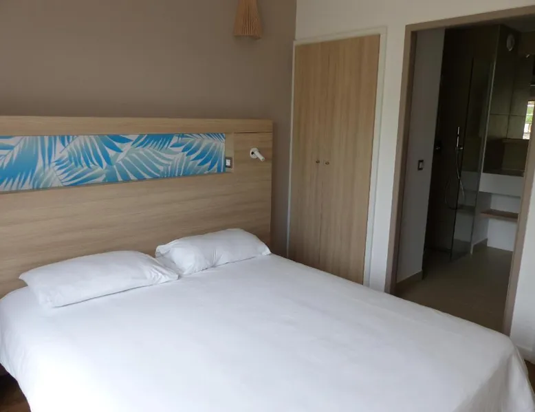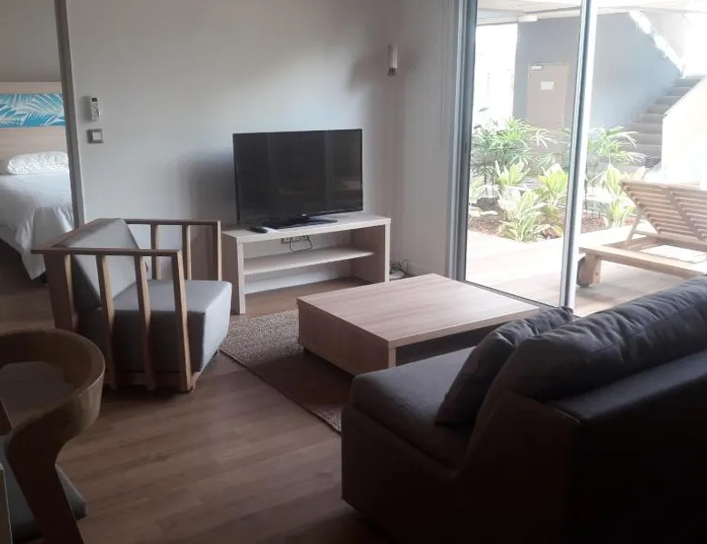 Comfortable Accommodations: Le Pacifik Kone in Koné offers aparthotel-style accommodations with family rooms. Each unit features a kitchenette, private bathroom, and balcony with garden or pool views. Exceptional Facilities: Guests enjoy a sun terrace, lush garden, and a year-round outdoor swimming pool. Free WiFi is available throughout the property. Additional amenities include air-conditioning, a work desk, and a dining area. Convenient Services: The aparthotel provides private check-in and check-out, a elevator, business area, and free on-site parking. Express services and luggage storage enhance the stay. Prime Location: Located 1.2 mi from Kone Airport, the aparthotel is highly rated for its kitchen, attentive staff, and immaculate rooms. This air-conditioned apartment consists of 1 living room, 1 separate bedroom and 1 bathroom with a walk-in shower. The fully equipped kitchen has a stovetop, a refrigerator, kitchenware and an oven. This wheelchair accessible apartment features soundproof walls, a seating area with a flat-screen TV and a roll-in shower. The unit offers 1 bed.