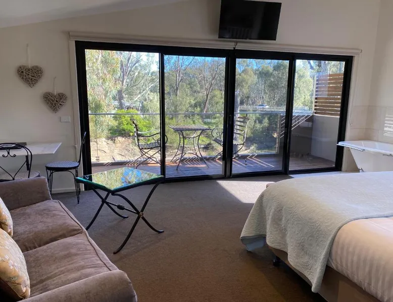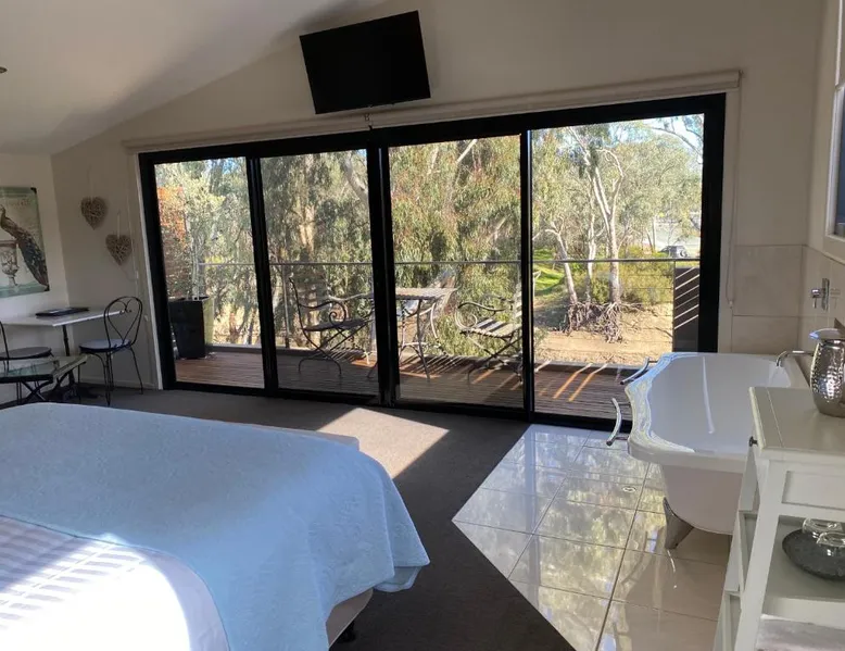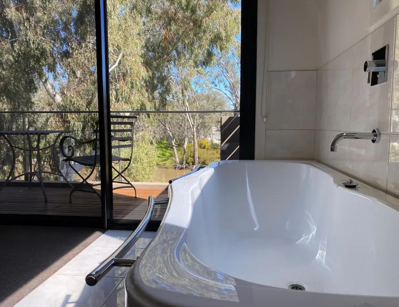 Prime City Center Location: Adelphi Apartments 3 or 3A in Echuca offers a convenient city center location with stunning river views. Echuca Train Station is a 19-minute walk away, providing easy access to local attractions. Exceptional Facilities: Guests enjoy a sun terrace, lush garden, and a year-round outdoor swimming pool. Free WiFi is available throughout the property, ensuring connectivity during the stay. Comfortable Accommodations: The apartment features two bedrooms and a balcony, offering a relaxing space with river views. Additional amenities include air-conditioning, a private bathroom, and a fully equipped kitchen. Local Activities: Visitors can engage in hiking and cycling, explore nearby attractions, and take advantage of the barbecue facilities and outdoor seating areas. Guests will find a refrigerator, kitchenware, a microwave and a toaster in the well-fitted kitchenette. The studio also features a barbecue. The studio offers air conditioning, a tea and coffee maker, a balcony with river views as well as a private bathroom boasting a bath. The unit has 1 bed.