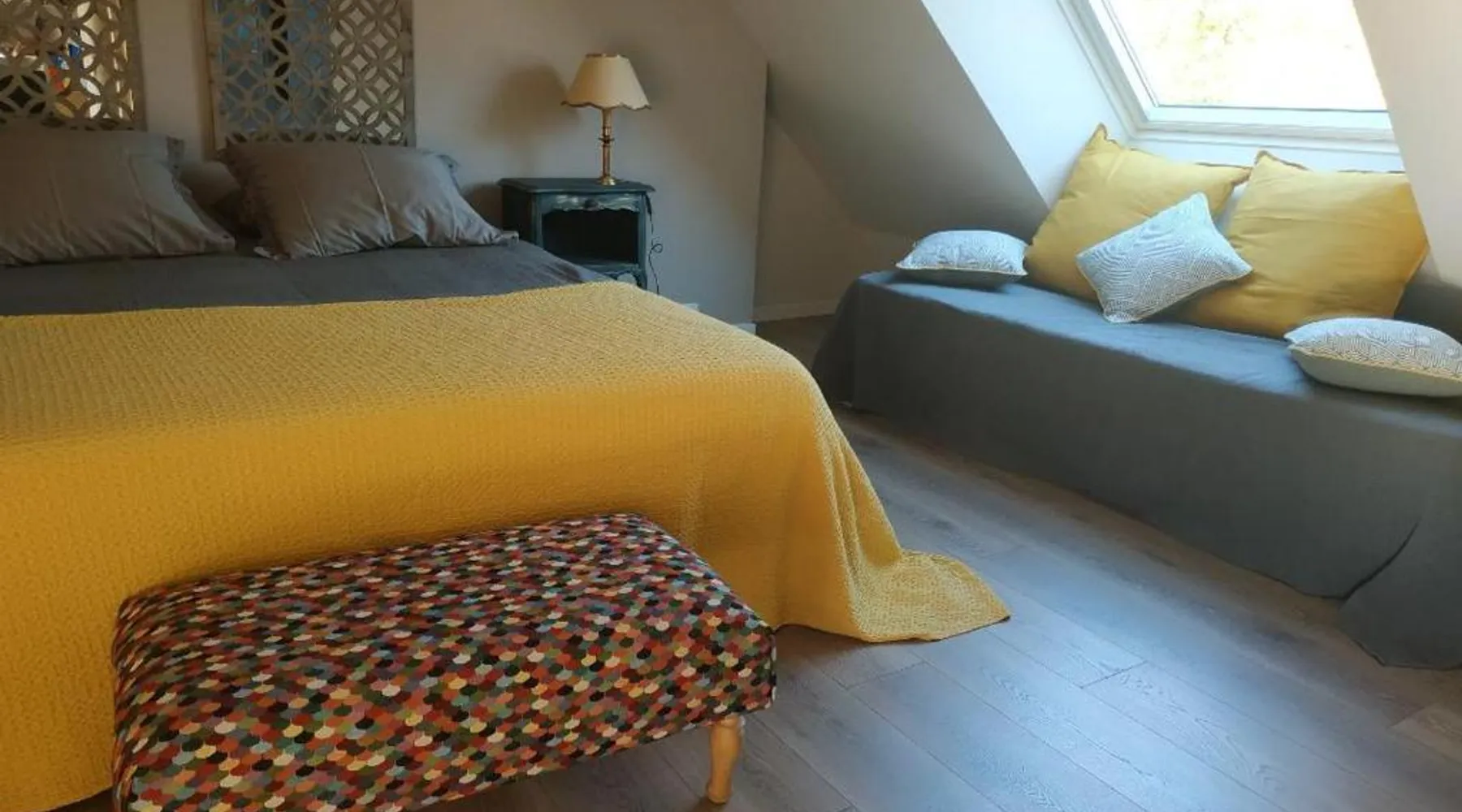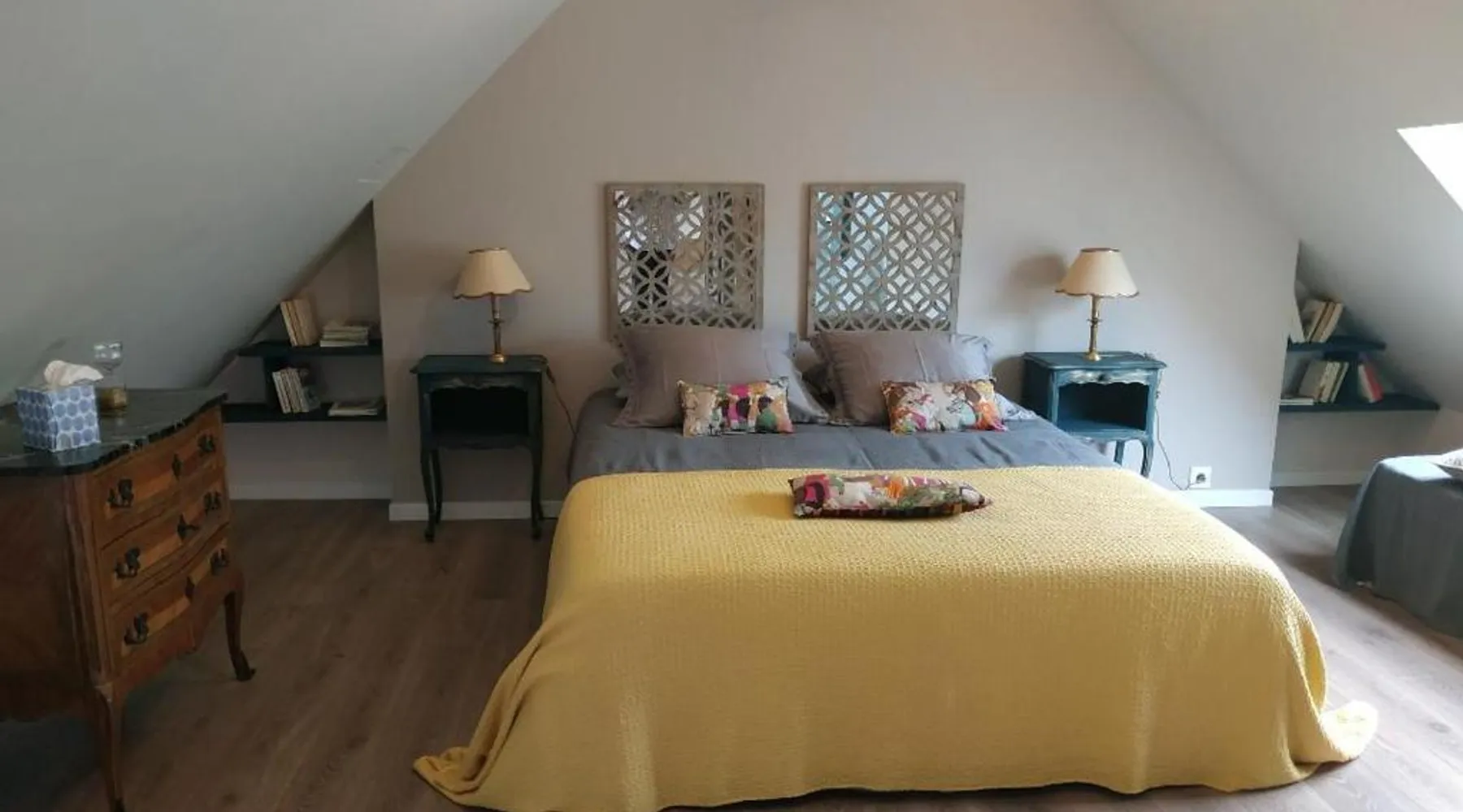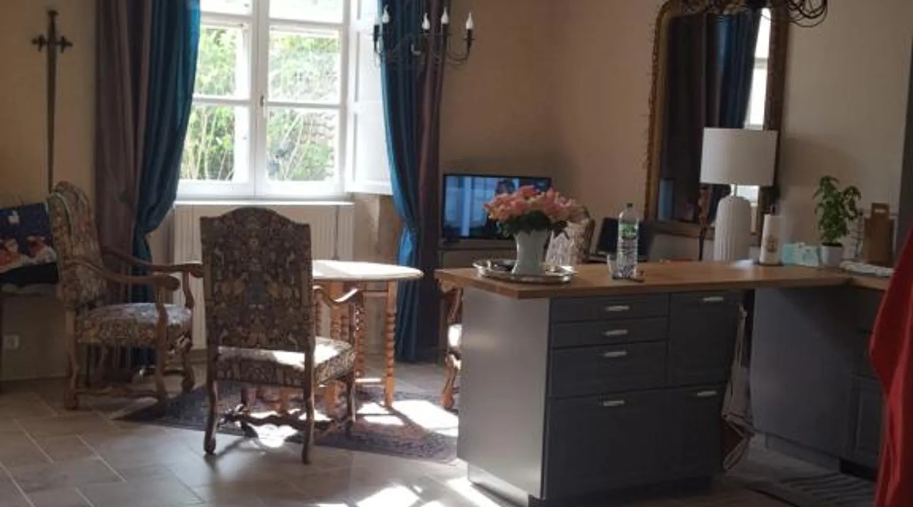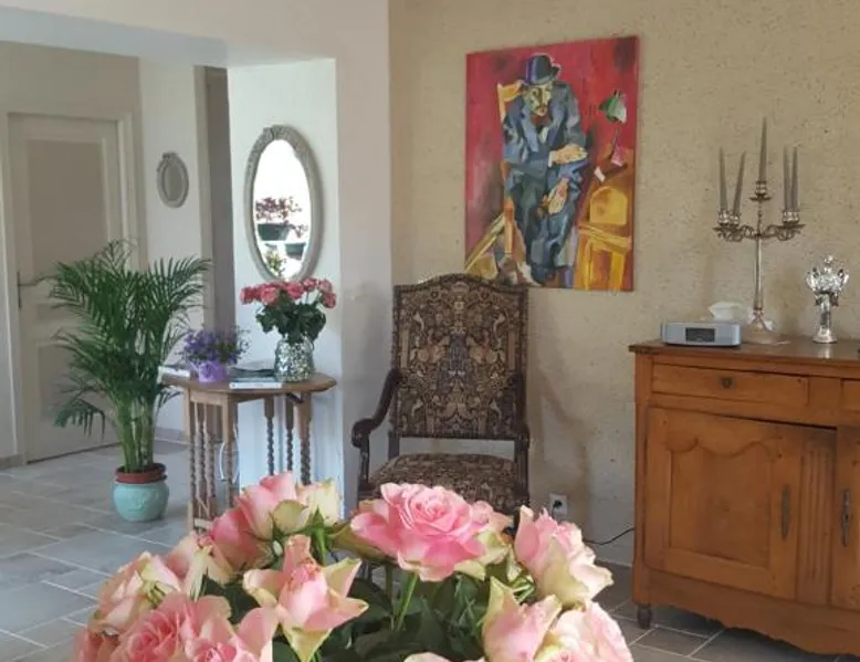 Elegant Accommodations: Closerie des Laudieres in Vineuil offers a bed and breakfast experience with a sun terrace, garden, and free WiFi. Guests enjoy a lounge, outdoor play area, coffee shop, and outdoor seating. Comfortable Amenities: Rooms feature private bathrooms with walk-in showers, garden views, and free toiletries. Additional amenities include a fireplace, work desk, and soundproofing. Free on-site private parking is available. Local Attractions: Located 39 mi from Tours Val de Loire Airport, the property is near Beauregard Castle (3.7 mi) and Blois Castle (5 mi). Guests can participate in walking tours and hiking. Highly rated for its host, breakfast, and castles. This suite provides a fireplace. Featuring a private entrance, this suite consists of 1 living room, 1 separate bedroom and 1 bathroom with a walk-in shower and a hairdryer. This wheelchair accessible suite features soundproof walls, a seating area with a flat-screen TV and a higher level toilet. The unit offers 2 beds.