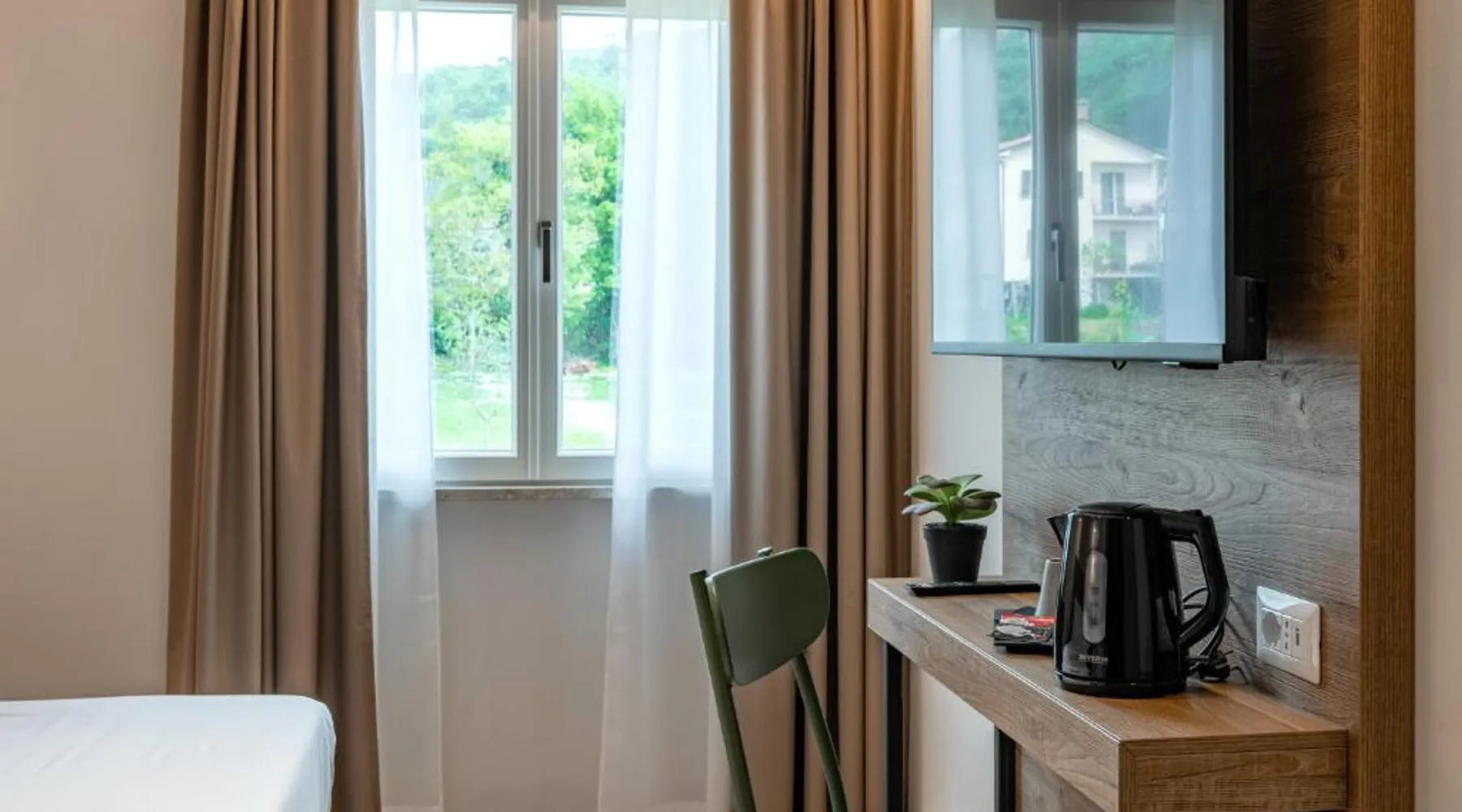 Hotel Catignano is located a 5-minute drive from the center of Gubbio and has views of the surrounding hills. It offers free parking and a garden with swimming pool. WiFi is free throughout. Catignano's rooms are comfortable and come with satellite TV, mini fridge and and a private bathroom. The restaurant offers a rich buffet breakfast. The hotel is a 20-minute drive from Gubbio Train Station and 28 mi from Perugia Airport. Providing free toiletries, this triple room includes a private bathroom with a shower, a bidet and a hairdryer. The air-conditioned triple room provides a TV with satellite channels, a mini-bar, a wardrobe and heating. The unit offers 2 beds.
