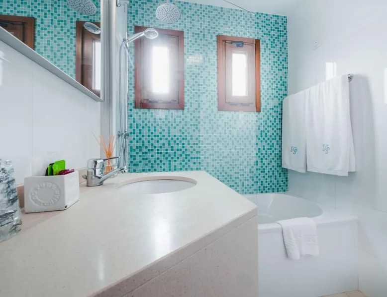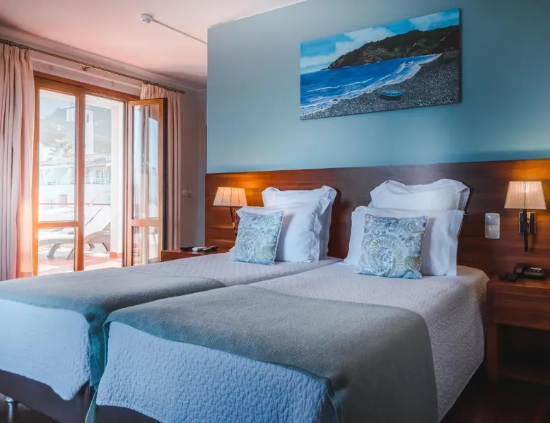 Located on the beautiful island Madeira, Vila Bela is just 328 feet away from beach Praia da Alagoa. Overlooking the Atlantic Ocean, this hotel has access to a communal outdoor pool adjacent to the Porto da Cruz promenade. The rooms of Vila Bela offer a bathroom with bath, a flat-screen satellite TV and a balcony. Some of the rooms feature sea view, while other rooms overlook the island’s mountains. With views of the Atlantic Ocean, the restaurant of this hotel serves an a la carte menu of local cuisine. A range of snacks and local drinks are offered in the hotel’s bar. Madeira International Airport is just 15 minutes away by airport shuttle and Machico is a 10-minute drive. Golf club Clube de Golf do Santo da Serra can be found within 8.1 mi from hotel Vila Bela. Praia da Alagoa is the best place to have a surf experience. Surfing lessons can be arranged at the Calhau Surf School, property of the Hotel Vila Bela. This room offers a flat-screen satellite TV, free toiletries and a terrace with a table and chairs.