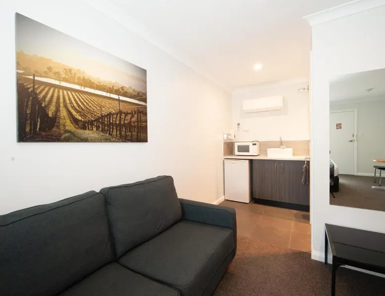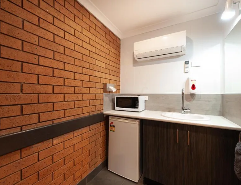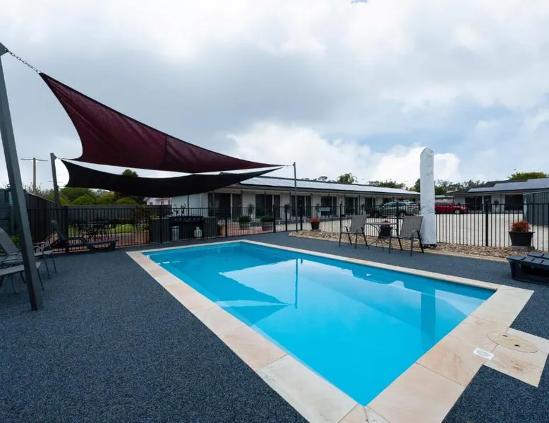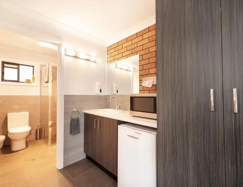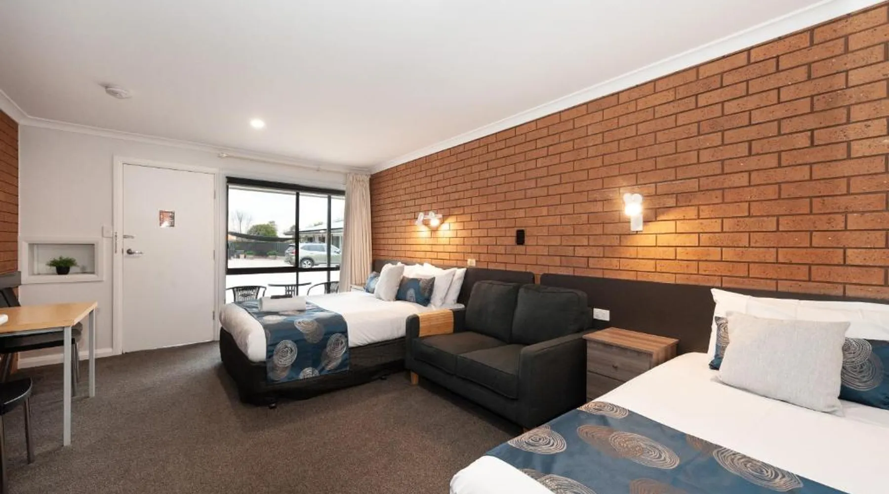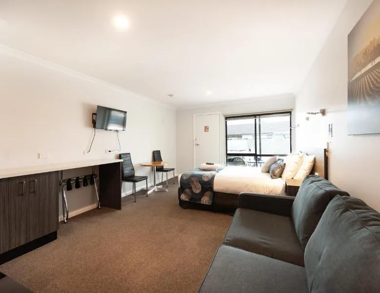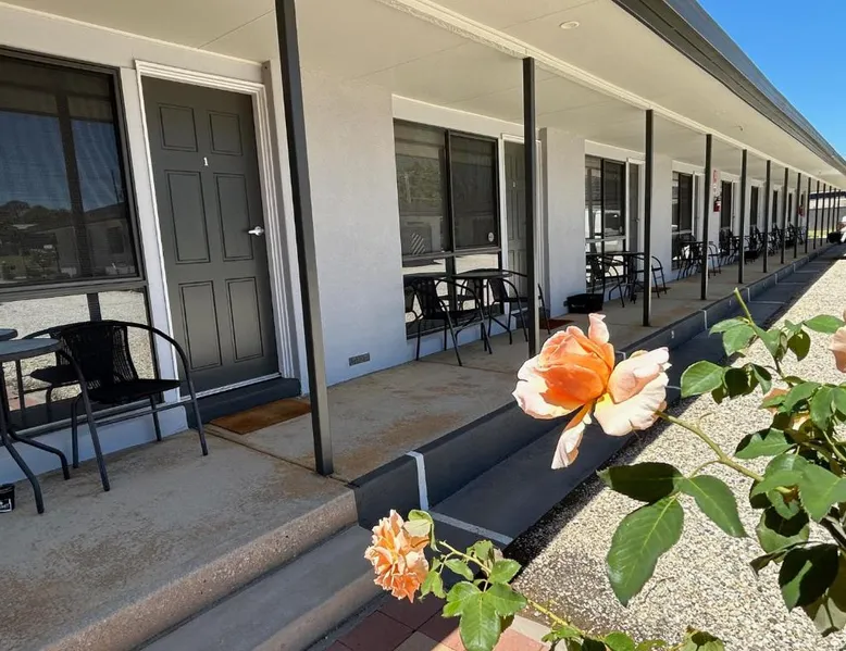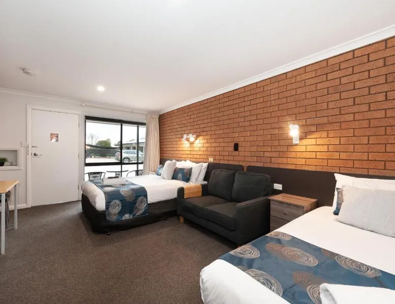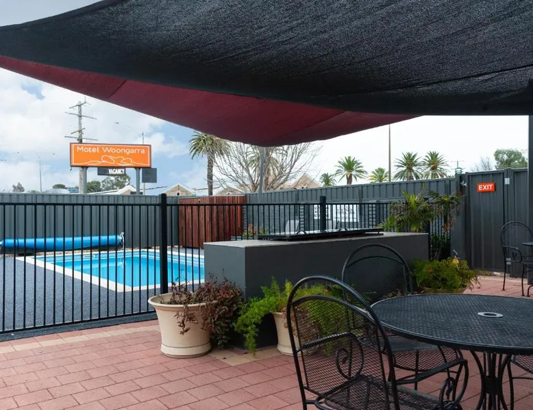 Comfortable Accommodations: Motel Woongarra in Rutherglen offers 4-star comfort with family rooms, ground-floor units, and private entrances. Each room features air-conditioning, a kitchenette, and a private bathroom with a walk-in shower. Leisure Facilities: Guests can relax by the saltwater swimming pool, sun terrace, and lush garden. The property includes free WiFi, outdoor seating, picnic areas, and barbecue facilities. Dining Options: A continental breakfast is served in-room, and room service is available. Additional amenities include a mini-bar, microwave, and free toiletries. Convenient Location: Located 21 mi from Bowser Station, 25 mi from Wangaratta Performing Arts Center, and 31 mi from Lauren Jackson Sports Center. Activities include fishing, skiing, walking tours, and cycling. Guests will find a refrigerator, kitchenware, a microwave and a toaster in the well-equipped kitchenette. The twin room also includes a barbecue. This air-conditioned twin room has a desk, a patio, garden views and a private bathroom. The unit has 2 beds.