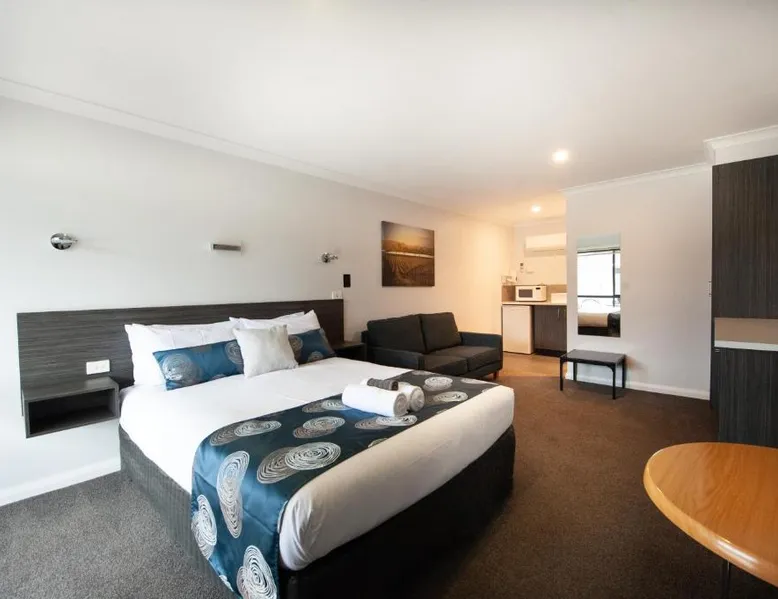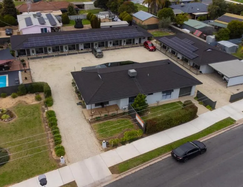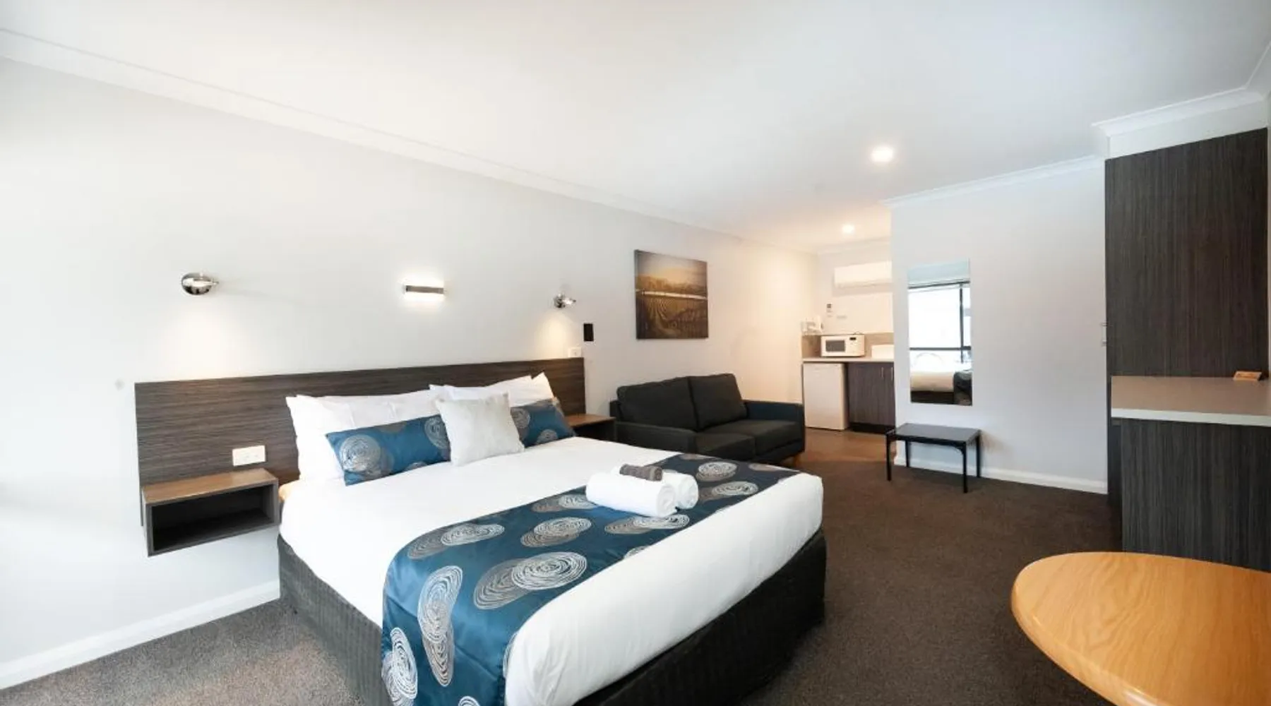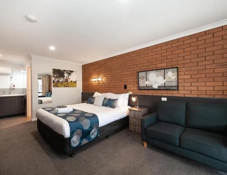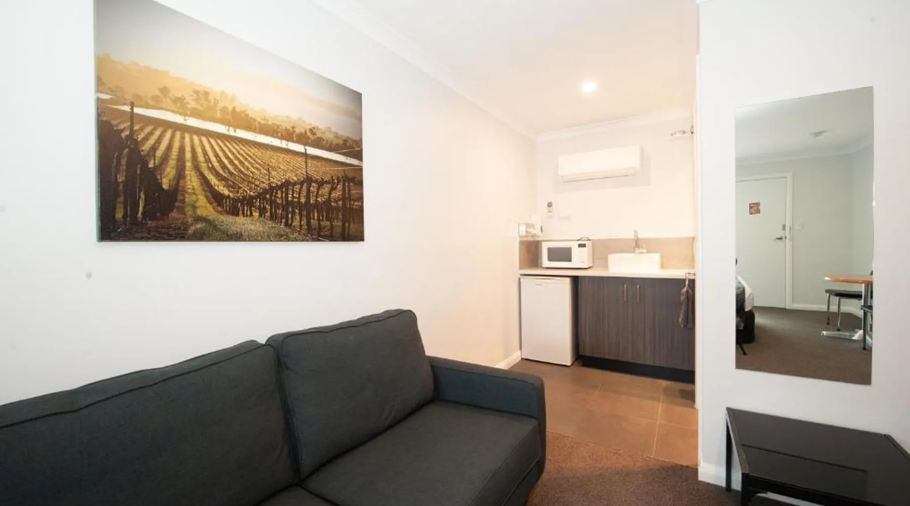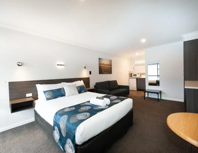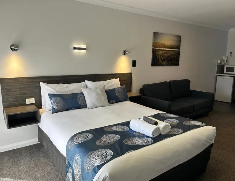 Comfortable Accommodations: Motel Woongarra in Rutherglen offers 4-star comfort with family rooms, ground-floor units, and private entrances. Each room features air-conditioning, a kitchenette, and a private bathroom with a walk-in shower. Leisure Facilities: Guests can relax by the saltwater swimming pool, sun terrace, and lush garden. The property includes free WiFi, outdoor seating, picnic areas, and barbecue facilities. Dining Options: A continental breakfast is served in-room, and room service is available. Additional amenities include a mini-bar, microwave, and free toiletries. Convenient Location: Located 21 mi from Bowser Station, 25 mi from Wangaratta Performing Arts Center, and 31 mi from Lauren Jackson Sports Center. Activities include fishing, skiing, walking tours, and cycling. Guests will find a refrigerator, kitchenware, a microwave and a toaster in the well-equipped kitchenette. The twin room also includes a barbecue. This air-conditioned twin room has a desk, a patio, garden views and a private bathroom. The unit has 2 beds.