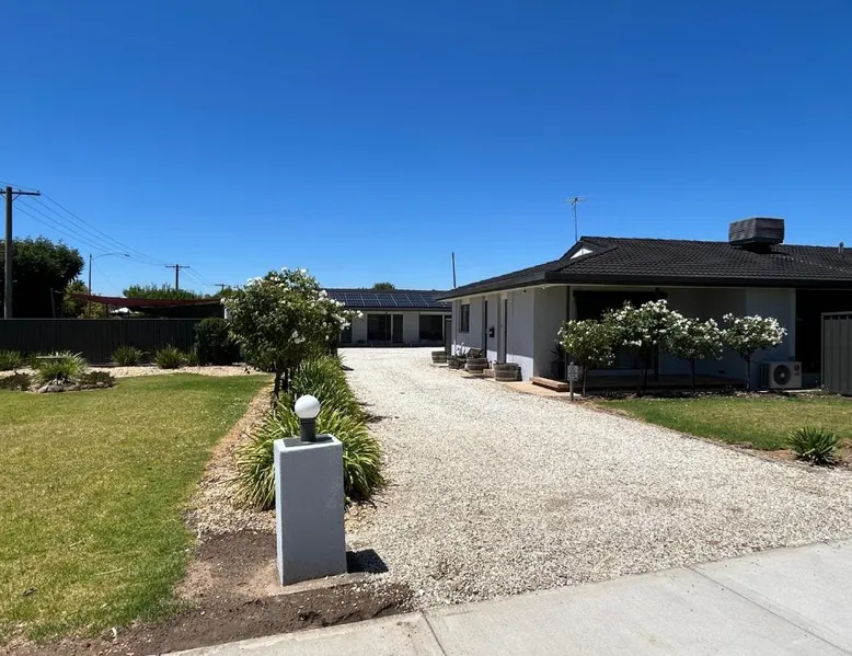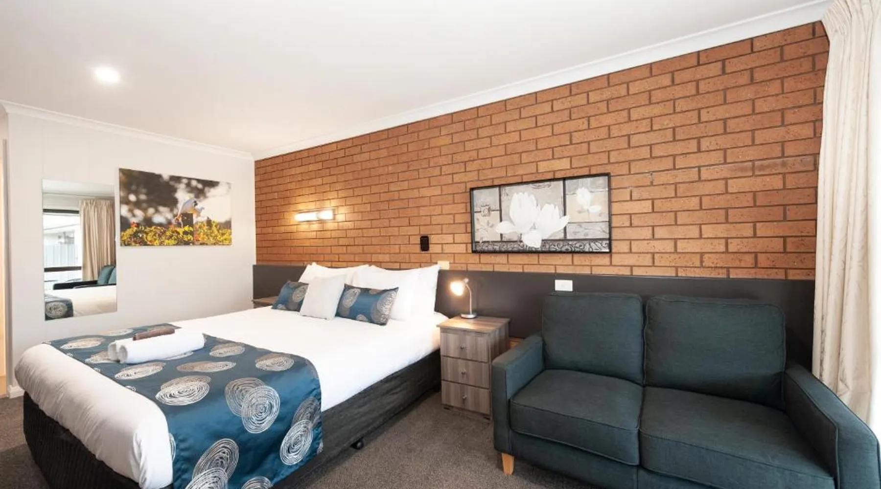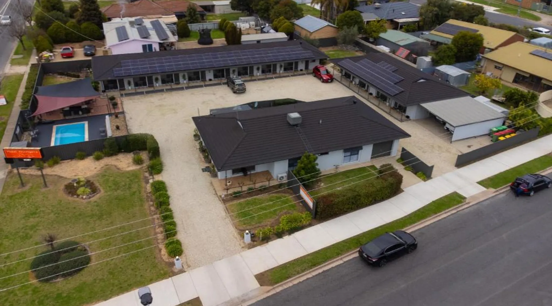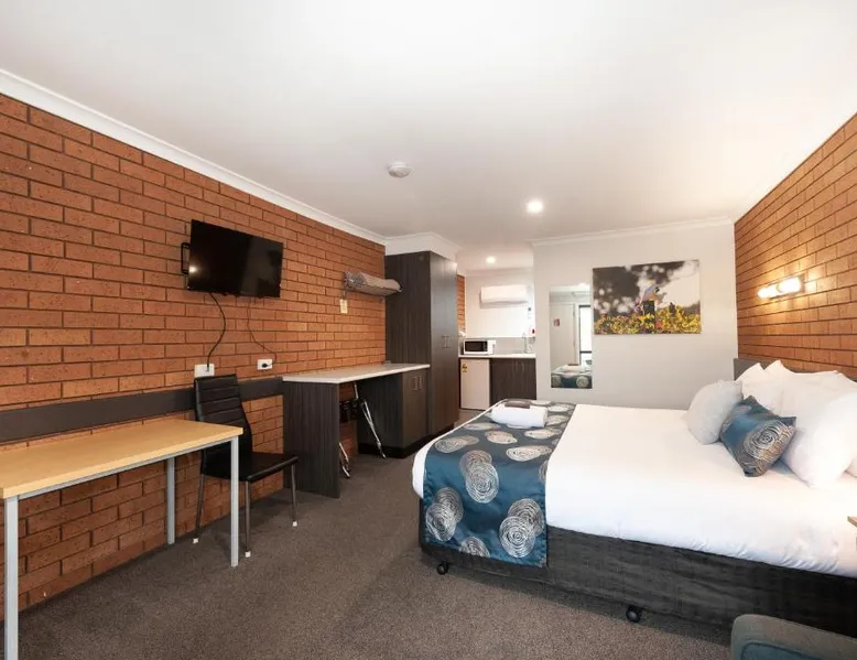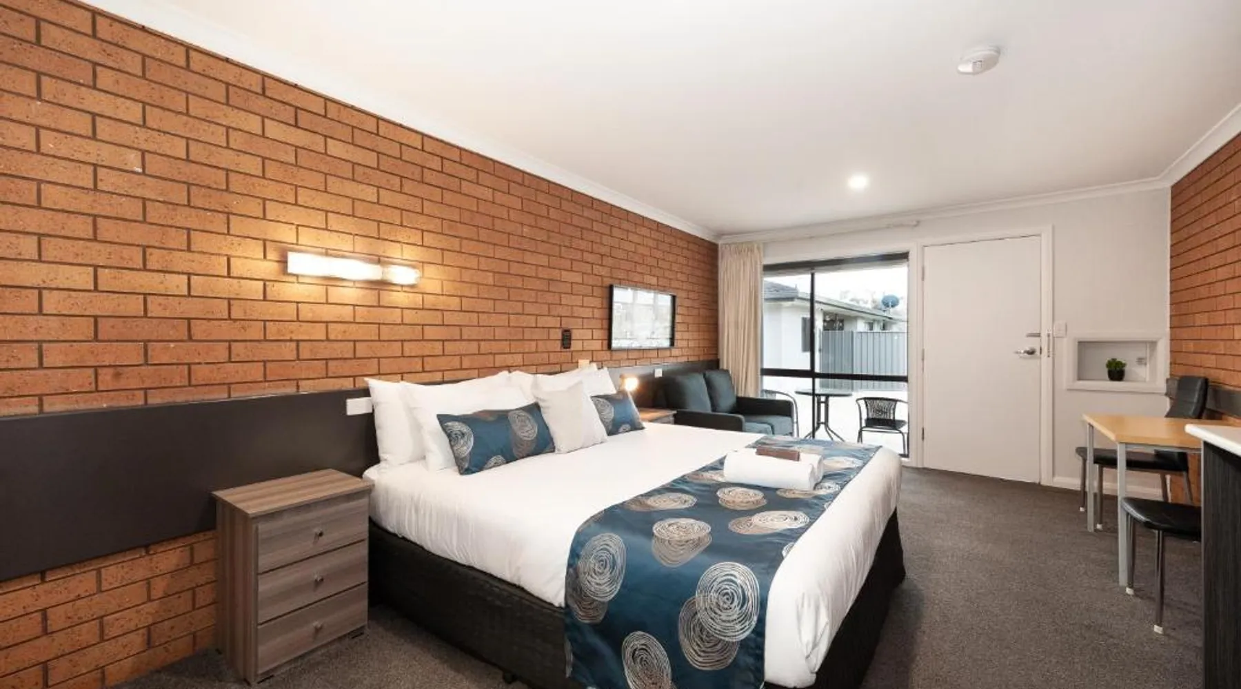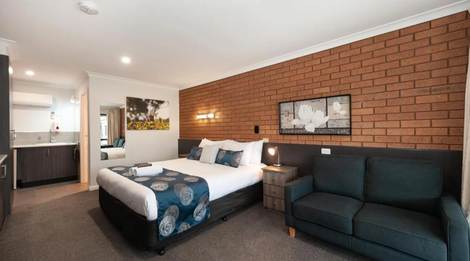 Comfortable Accommodations: Motel Woongarra in Rutherglen offers 4-star comfort with family rooms, ground-floor units, and private entrances. Each room features air-conditioning, a kitchenette, and a private bathroom with a walk-in shower. Leisure Facilities: Guests can relax by the saltwater swimming pool, sun terrace, and lush garden. The property includes free WiFi, outdoor seating, picnic areas, and barbecue facilities. Dining Options: A continental breakfast is served in-room, and room service is available. Additional amenities include a mini-bar, microwave, and free toiletries. Convenient Location: Located 21 mi from Bowser Station, 25 mi from Wangaratta Performing Arts Center, and 31 mi from Lauren Jackson Sports Center. Activities include fishing, skiing, walking tours, and cycling. Guests will find a refrigerator, kitchenware, a microwave and a toaster in the well-equipped kitchenette. The twin room also includes a barbecue. This air-conditioned twin room has a desk, a patio, garden views and a private bathroom. The unit has 2 beds.