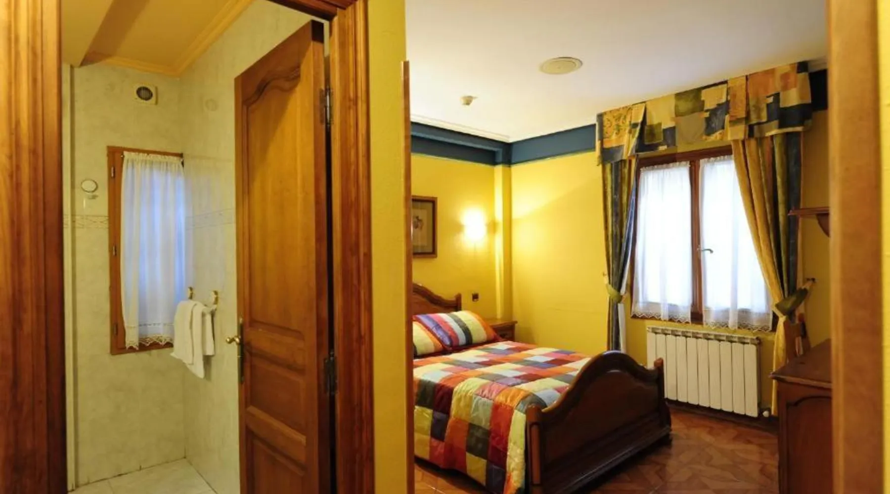 This small, family-run hotel is located on the banks of the River Bidasoa, on the Irun-Elizondo Green Route. Its heated rooms offer mountain views and there is also a free Wi-Fi zone. All rooms feature a simple décor with tiled floors and wooden furniture. Each includes a TV and a private bathroom with free toiletries and a hairdryer. Some rooms include a spa bath. Staff at Bereau Hotel are happy to provide more information about hiking and cycling trails in the surrounding area. The hotel is within 30-40 minutes’ drive of the caves of Zugrramurdi and Urdax, and Señorío de Bértiz is 12 mi away. The Basque seaside towns of Irun and Hendaye are 8.7 mi away, and Biarritz can be reached in 35 minutes by car. San Sebastian’s spectacular beaches are a 30-minute drive away. This spacious double room features central heating, a flat-screen TV and a private bathroom with a spa bath, free toiletries and a hairdryer.
