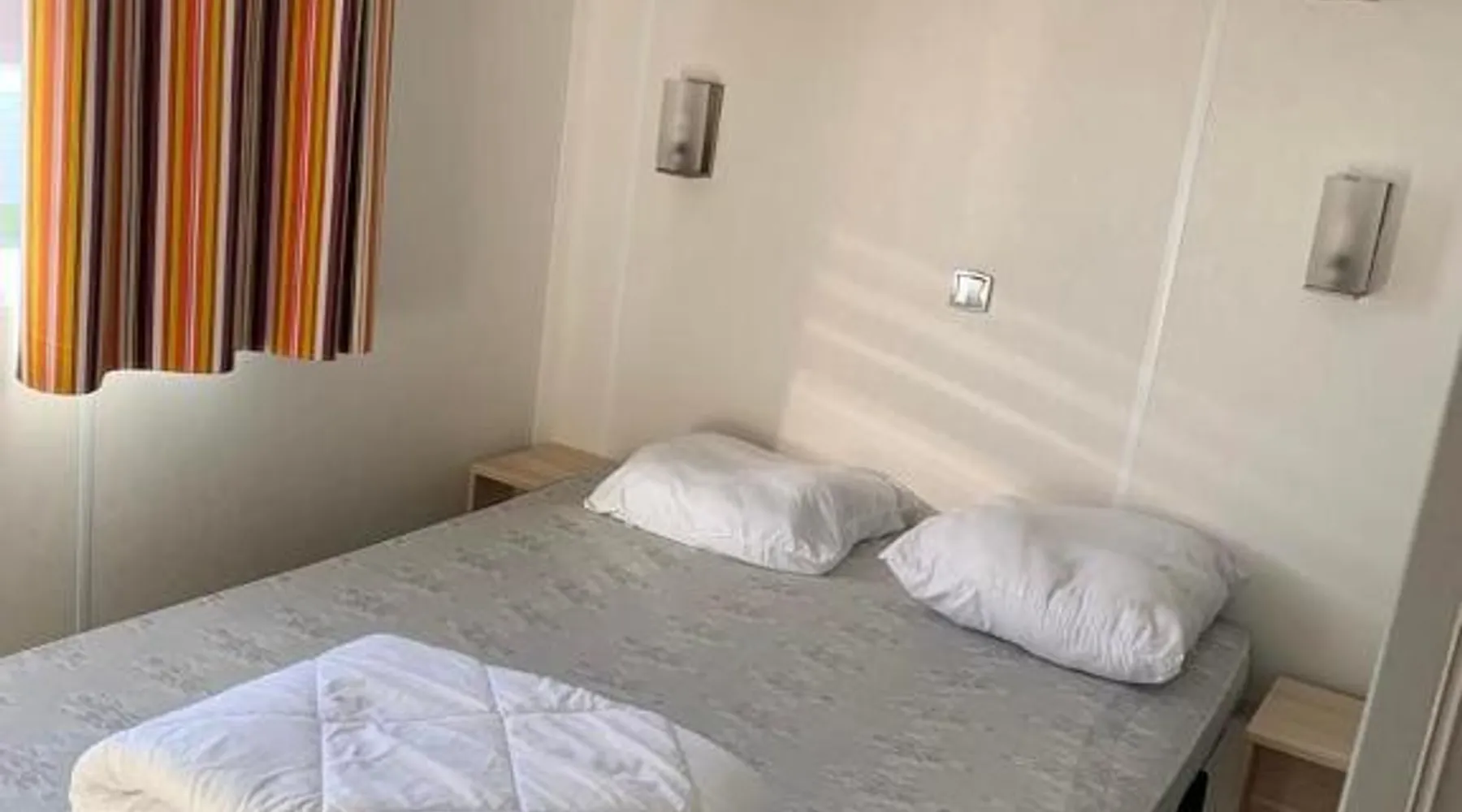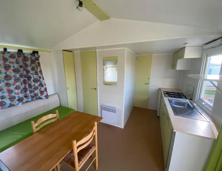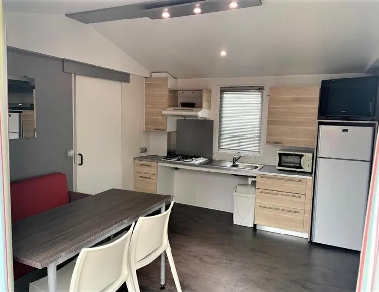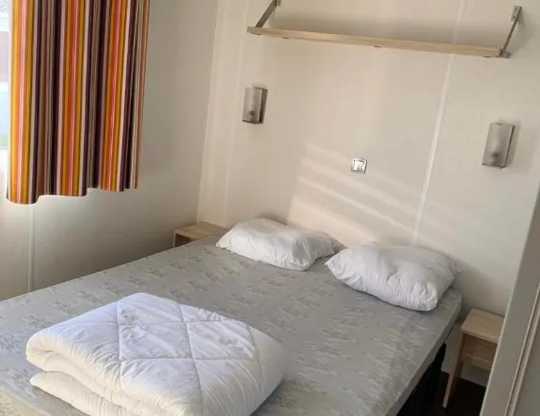 Comfortable Accommodations: Camping La Baie du Mont Saint Michel in Céaux offers private bathrooms with kitchen facilities. Each unit includes a terrace and garden, ensuring a pleasant stay. Convenient Facilities: Guests enjoy a minimarket, coffee shop, outdoor seating area, and picnic spots. Free on-site private parking is available, along with badminton equipment hire. Local Attractions: Located 8.1 mi from the Scriptorial of Avranches and 9.9 mi from Mont Saint Michel Abbey, the camping is 53 mi from Rennes–Saint-Jacques Airport. Nearby attractions include Champrepus Zoo and Granville's Marina. Guest Highlights: Highly rated for its convenience for an active nature-centric trip, convenient location, and suitability for nature trips. This mobile home features 1 living room, 3 separate bedrooms and 1 bathroom with a shower. Guests will find a stovetop, a refrigerator, kitchenware and an oven in the fully equipped kitchen. The mobile home also comes with a barbecue. A seating area with a flat-screen TV, a coffee machine and a terrace are available in this mobile home. The unit has 5 beds.