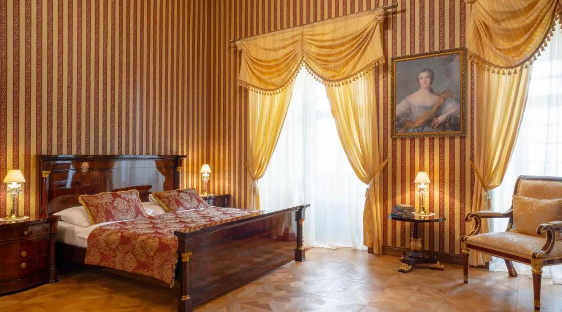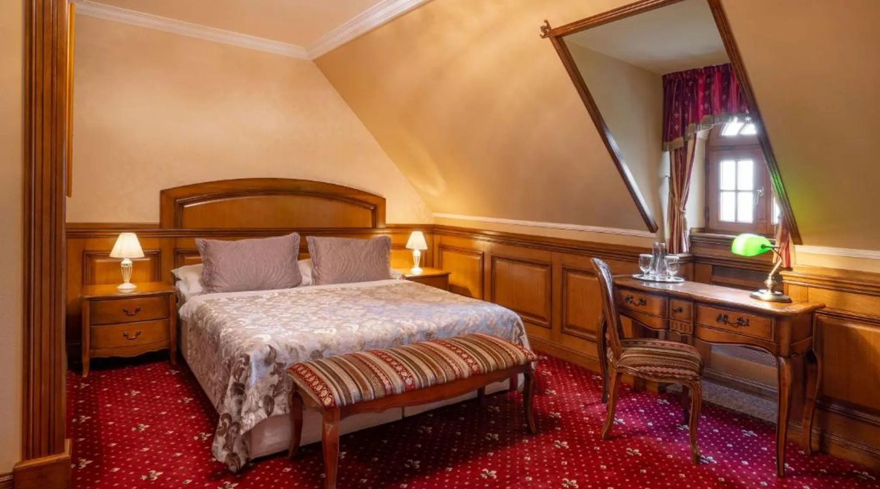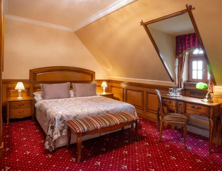 Castle Hotel Galicia Nueva is located in Halič and offers luxurious accommodations with a wellness center, free parking and free WiFi. Pets can be accommodated only in some rooms upon a prior request. All rooms at Galicia Nueva feature a flat-screen TV and a bathroom with a shower or a bath tub, bathrobes and slippers. Some rooms also feature an air-conditioning. You will find a 24-hour front desk at the property and here you and also buy souvenirs. If you feel like visiting surroundings check out Divin Castle reachable within 9.3 mi. The town of Lucenec is reachable within 3.1 mi and Zvolen town is located within a 40-minute drive. This apartment is located on the second floor with bedroom located in the castle towers with a two single beds on the maisonette. Guests can enjoy the country Provençal and Tuscan style of furnishings with a impressive outlook into the broad surrounding area. This apartment has a mini-bar, air conditioning and bathrobe. PLEASE NOTE THAT PETS CAN NOT BE ACCOMODATED IN THIS ROOM TYPE