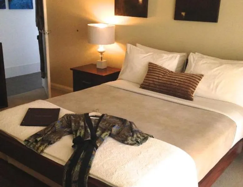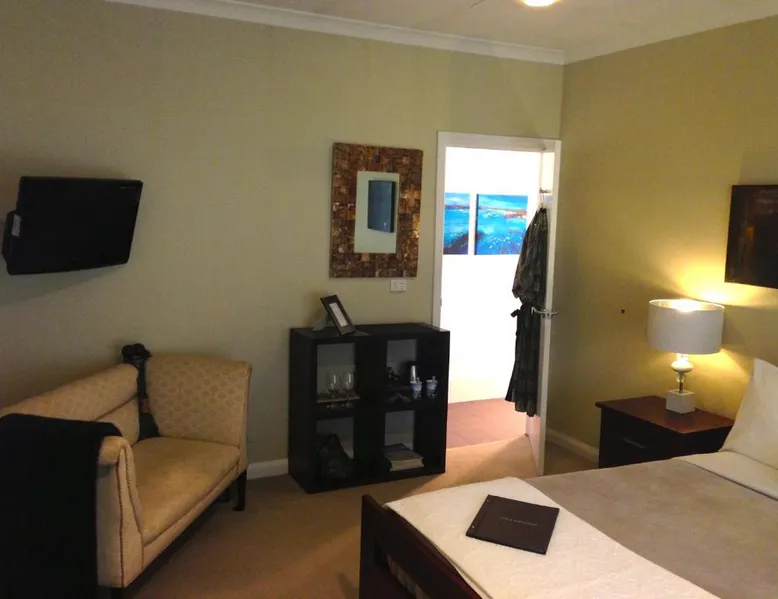 Elegant Accommodations: Llewellin's Guest House in Margaret River offers adults-only accommodations with spa facilities, a sun terrace, and a beautiful garden. Guests enjoy free WiFi throughout the property. Comfortable Amenities: The guest house features private check-in and check-out services, a lounge, outdoor fireplace, beauty services, and menus for special diets. Additional amenities include a barbecue area, picnic spots, and live music. Convenient Location: Located 39 mi from Busselton Margaret River Airport, the property is 1.9 mi from Margaret River Golf Club and 27 mi from Jewel Cave. Guests appreciate the quietness of the area and the host's hospitality. This double room has tea/coffee making facilities, wine glasses, private entrance, bathrobes and 3 pillow selections. A queen size bed is featured.