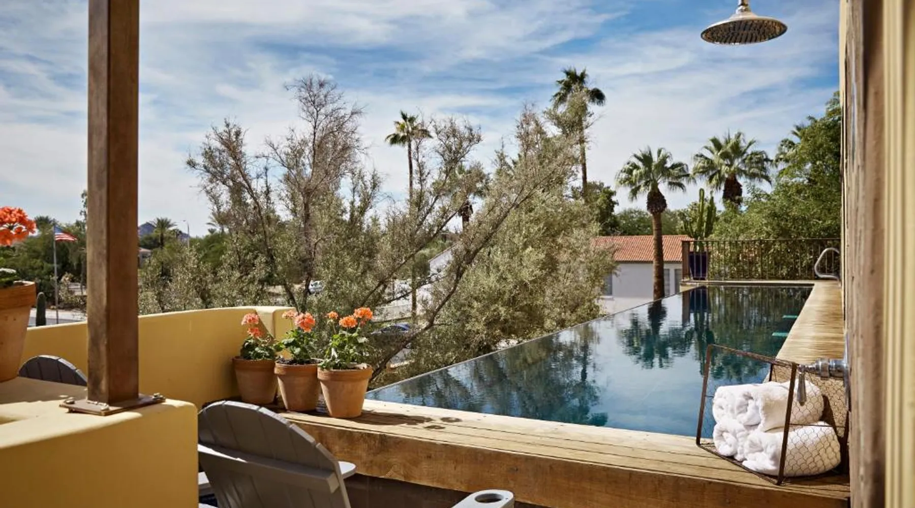 Comfortable Accommodations: Bespoke Inn Scottsdale in Scottsdale offers air-conditioned rooms with private bathrooms, bathrobes, and free WiFi. Each room includes a work desk, TV, and modern amenities. Dining and Leisure: Guests can enjoy a sun terrace, garden, outdoor swimming pool, and outdoor fireplace. The restaurant serves American, Italian, and Mediterranean cuisines with vegetarian, vegan, gluten-free, and dairy-free options. A bar provides a relaxing atmosphere. Convenient Location: Located 6.8 mi from Phenix Sky Harbor International Airport, the inn is near attractions such as Desert Botanical Gardens (3.7 mi) and Phenix Zoo (4.3 mi). Free on-site private parking is available. Guest Services: The inn offers daily housekeeping, express check-in and check-out, and a fitness room. Additional amenities include a terrace, kitchenette, and balcony. Meals can be prepared in the well-fitted kitchen, which comes with a stovetop, a refrigerator, a dishwasher and kitchenware. The spacious double room provides air conditioning, a private entrance, a terrace with pool views as well as a private bathroom featuring a walk-in shower. The unit offers 1 bed.