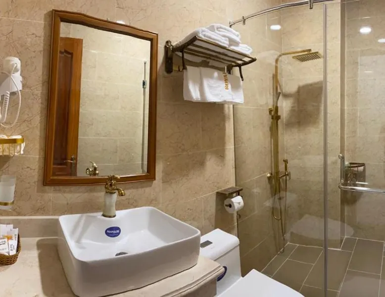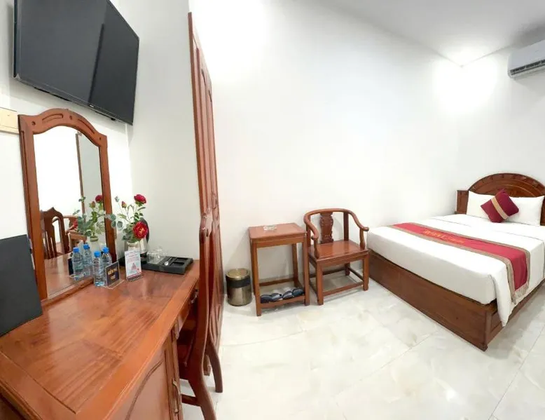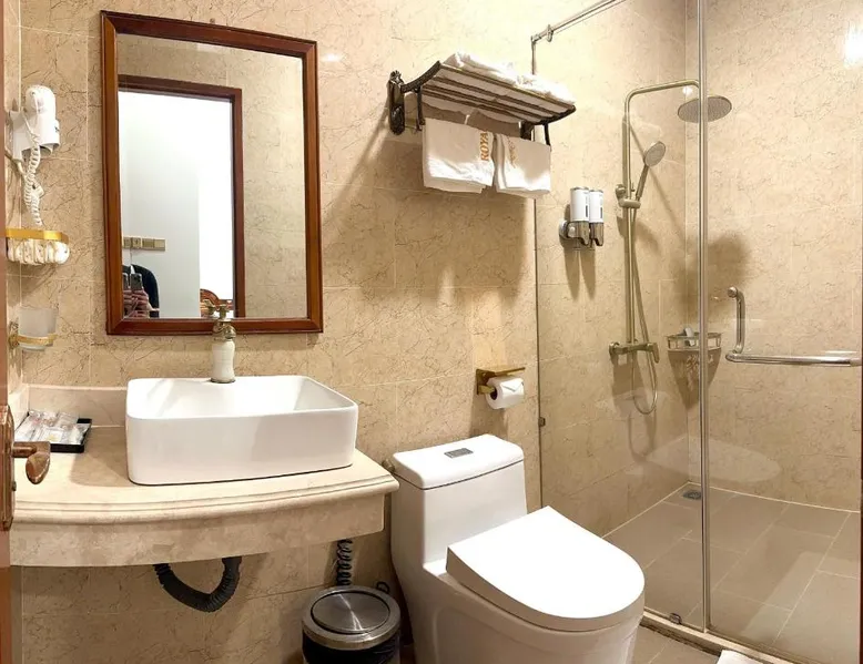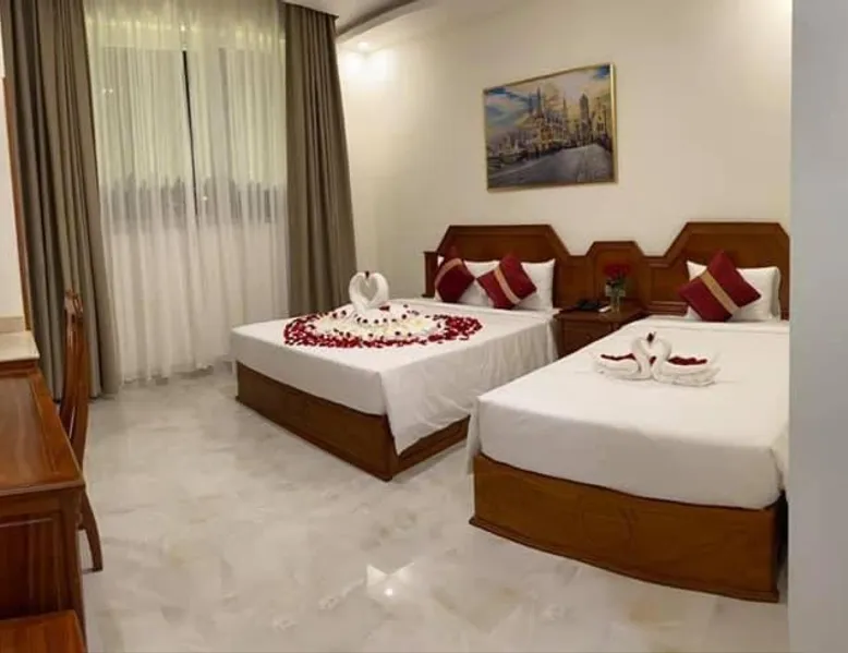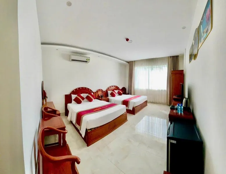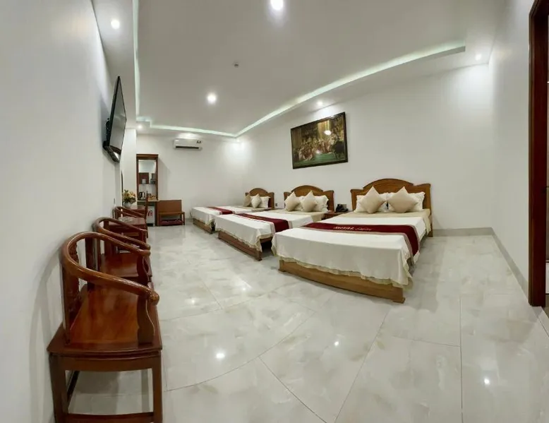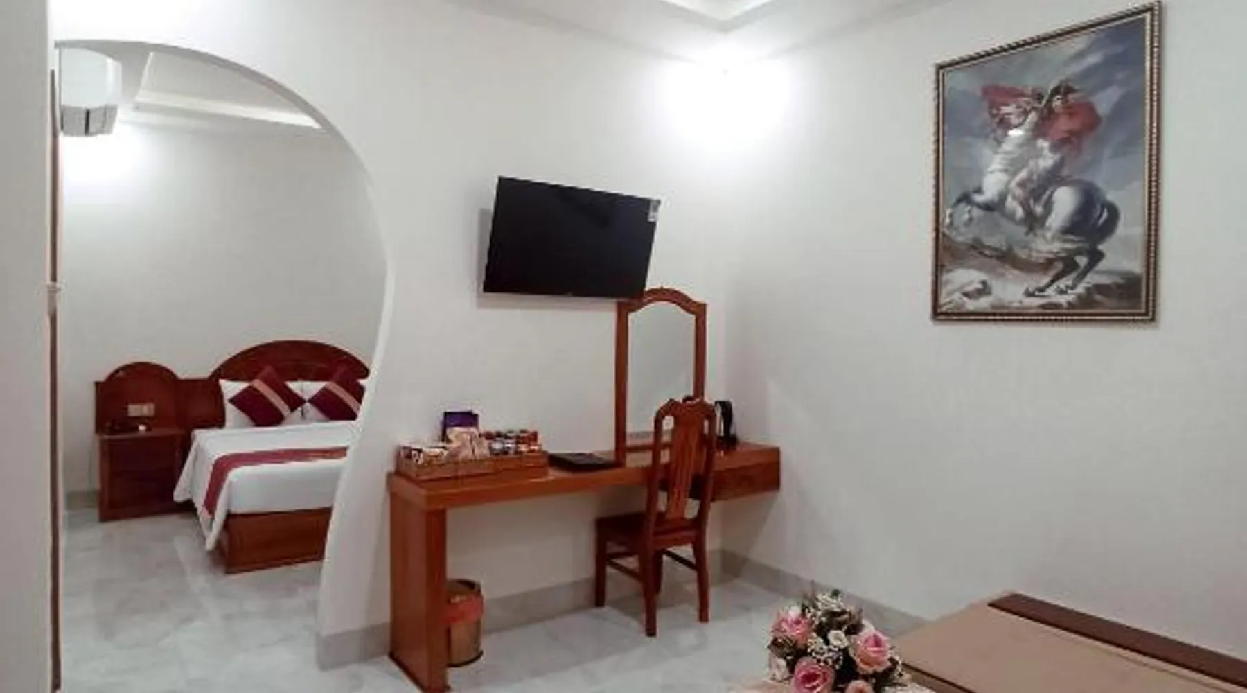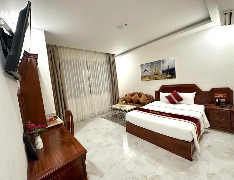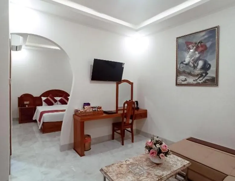 Comfortable Accommodations: Royal Hotel Bạc Liêu in Bạc Liêu offers comfortable rooms with air-conditioning, private bathrooms, sofa beds, work desks, and seating areas. Each room includes a TV, slippers, and tiled floors. Essential Facilities: Guests enjoy free WiFi, a 24-hour front desk, housekeeping service, full-day security, and room service. Free on-site private parking is available. Convenient Location: Located 39 mi from Ca Mau Airport, the hotel is 3.1 mi from Bac Lieu Bird Sanctuary. Reception staff speak Vietnamese. Highly rated by guests. This air-conditioned suite features 1 living room, 1 separate bedroom and 1 bathroom with slippers. A seating area with a flat-screen TV, a sofa and a tiled floor are offered in this suite. The unit has 2 beds.