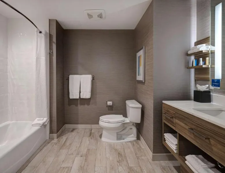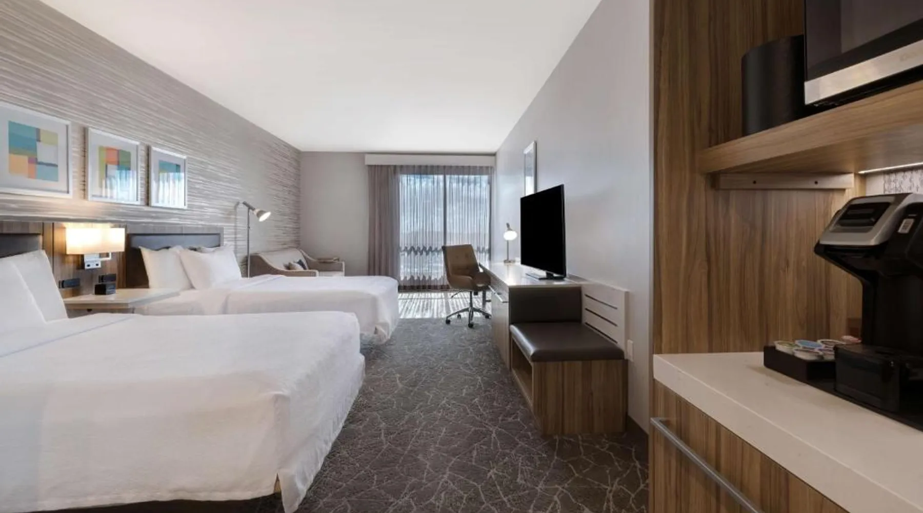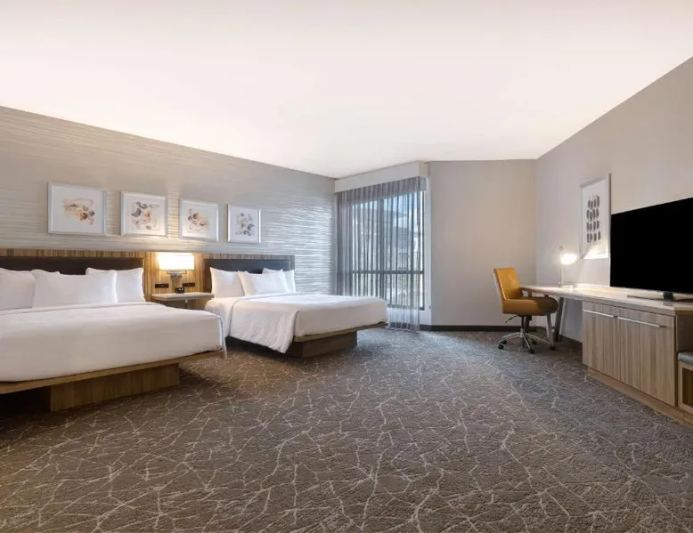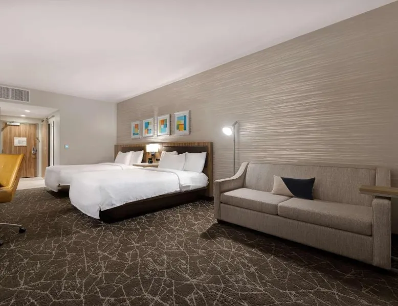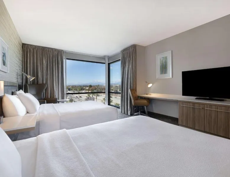 Comfortable Accommodations: Rooms feature free WiFi, air-conditioning, and modern amenities including a work desk, TV, and private bathroom. Guests appreciate the room cleanliness and excellent service support. Dining and Leisure: The family-friendly restaurant offers American cuisine with brunch and a bar. Additional facilities include a fitness center, sun terrace, year-round outdoor swimming pool, and a hot tub. Convenient Location: Located in Anaheim, the hotel is 12 mi from John Wayne Airport and near Disneyland (1.2 mi), Anaheim Convention Center (1.1 mi), and other attractions. Nearby activities include ice-skating and kayaking. The spacious double room provides a tea and coffee maker, a seating area, a safe deposit box, as well as a flat-screen TV with cable channels. The unit offers 1 bed.