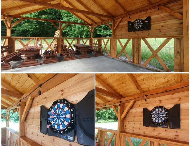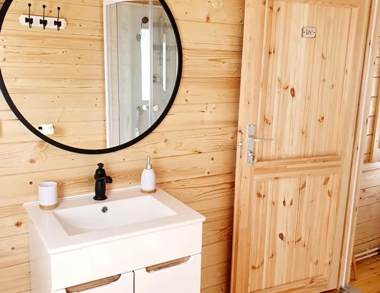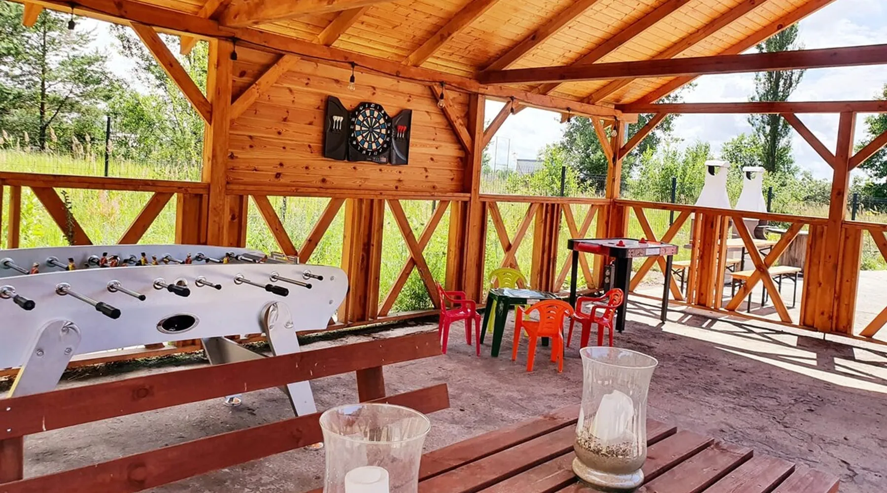 The price depends on the dates and number of people . Stay in May , June and September at least 4 nights , stay on vacation min 7 nights. Wooden cottages with terraces located right next to the forest. The distance to the beach is about 600m - 30 minutes by walk through the fragrant pine forest. Peace, quiet, and beautiful neighborhood are the strengths of this place. Pets are allowed! Wide sandy beaches , the sea, and the air full of iodine ! Pool available (June 23rd to August 30th) WE LOOK FORWARD TO YOUR VISIT! Other things to note Additional Charges : Electricity by consumption Atmospheric for the Municipality Dog fee 20 zł night Security deposit for guests traveling with dogs 300 zł