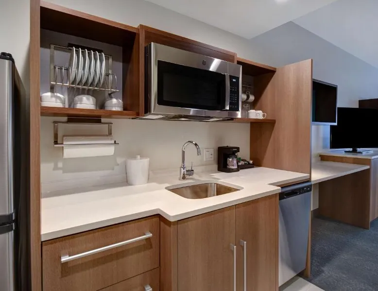 Comfortable Accommodations: Home2 Suites by Hilton Troy in Troy offers spacious rooms with air-conditioning, kitchenettes, and free WiFi. Guests appreciate the room comfort, size, and cleanliness. Exceptional Facilities: The hotel features a fitness center, terrace, indoor swimming pool, and outdoor fireplace. Additional amenities include a lounge, business area, and free on-site private parking. Convenient Location: Located 5.6 mi from Royal Oak Music Theater and 21 mi from TCF Center, the hotel is near attractions such as Meadow Brook Music Festival and Detroit Golf Club. Guest Services: A 24-hour front desk, minimarket, and full-day security ensure a pleasant stay. Meals can be prepared in the well-fitted kitchenette, which comes with a refrigerator, a dishwasher, kitchenware and a microwave. The spacious air-conditioned suite provides a flat-screen TV with cable channels, a tea and coffee maker, a seating area and heating. The unit offers 1 bed.