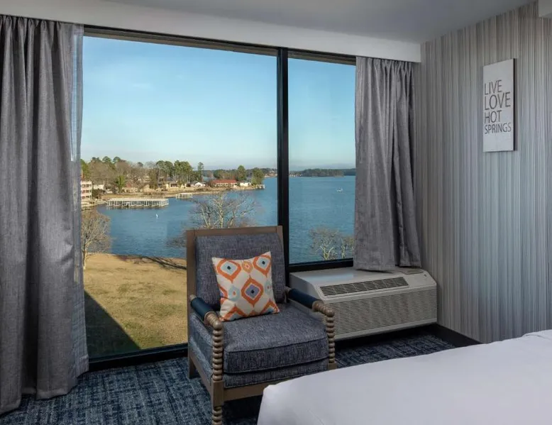 This Arkansas hotel features Lake Hamilton views, a restaurant and outdoor pool. Located 5 miles from Hot Springs National Park, it offers guest rooms with free Wi-Fi and satellite TV. DoubleTree by Hilton Hot Springs on the Lake Hot Springs provide microwaves, refrigerators and coffee makers. They also have seating areas and safety deposit boxes. While staying at DoubleTree by Hilton Hot Springs, guests can enjoy the hotel’s volleyball court, playground and picnic area. Classics Restaurant and Sports Bar is open daily. Hot Springs Golf & Country Club and the Museum of Contemporary Art are within 5 miles of Clarion Resort. Magic Springs Amusement Park is 8 miles away. The unit has 2 beds.