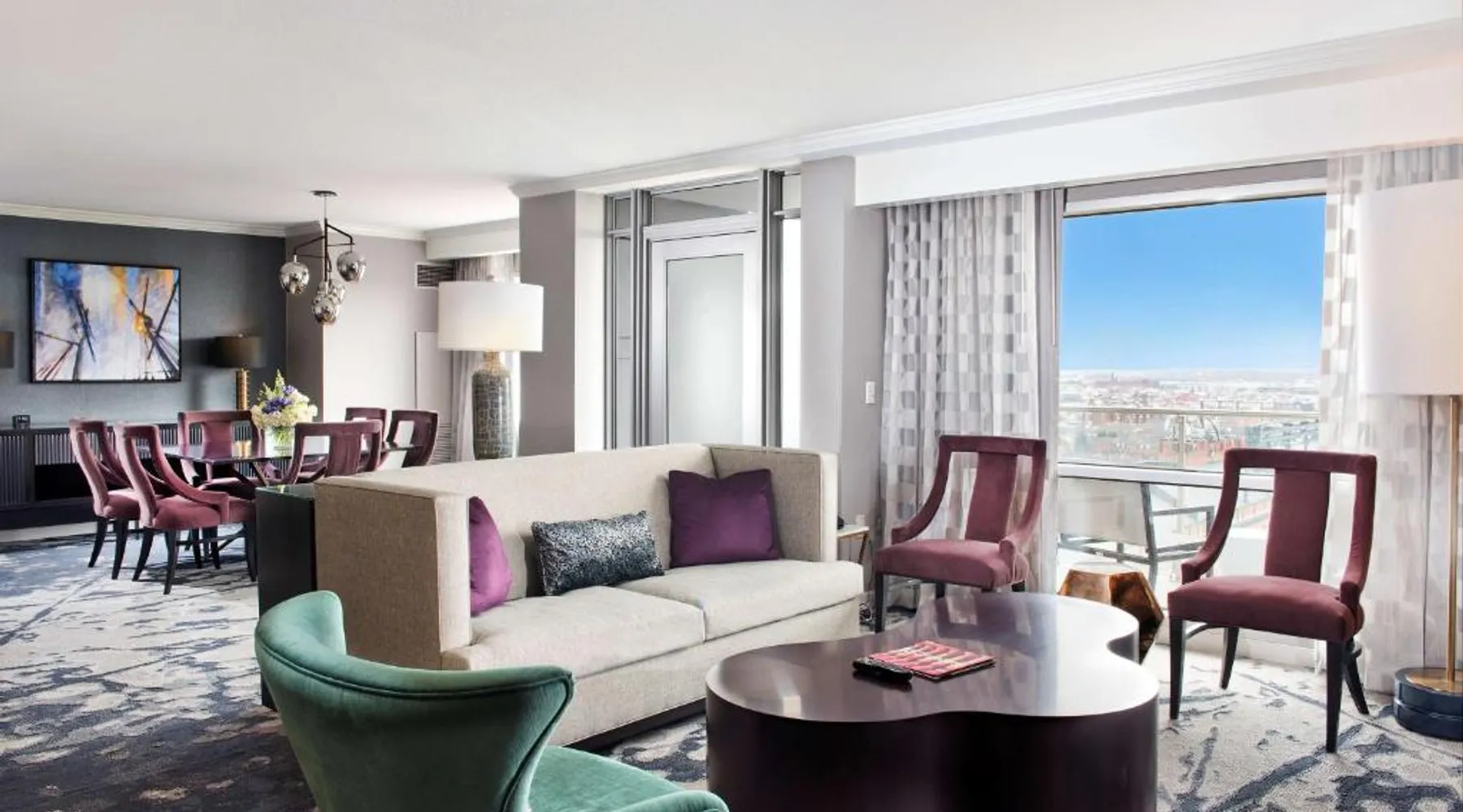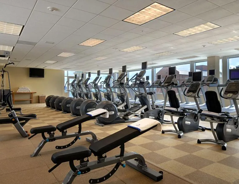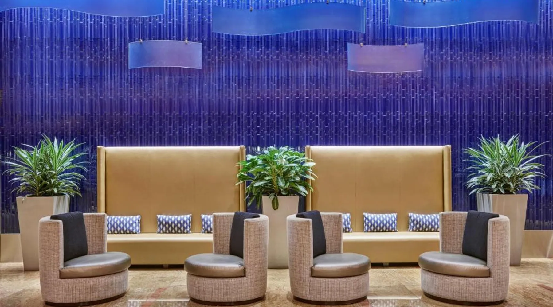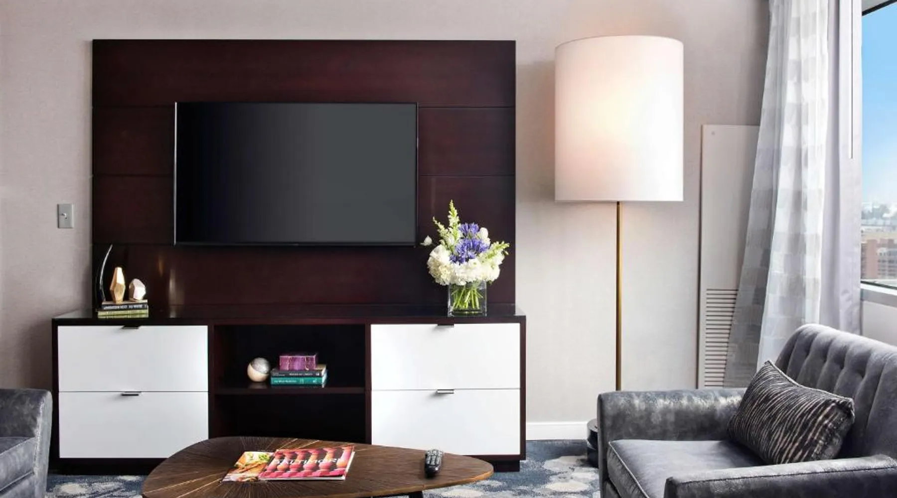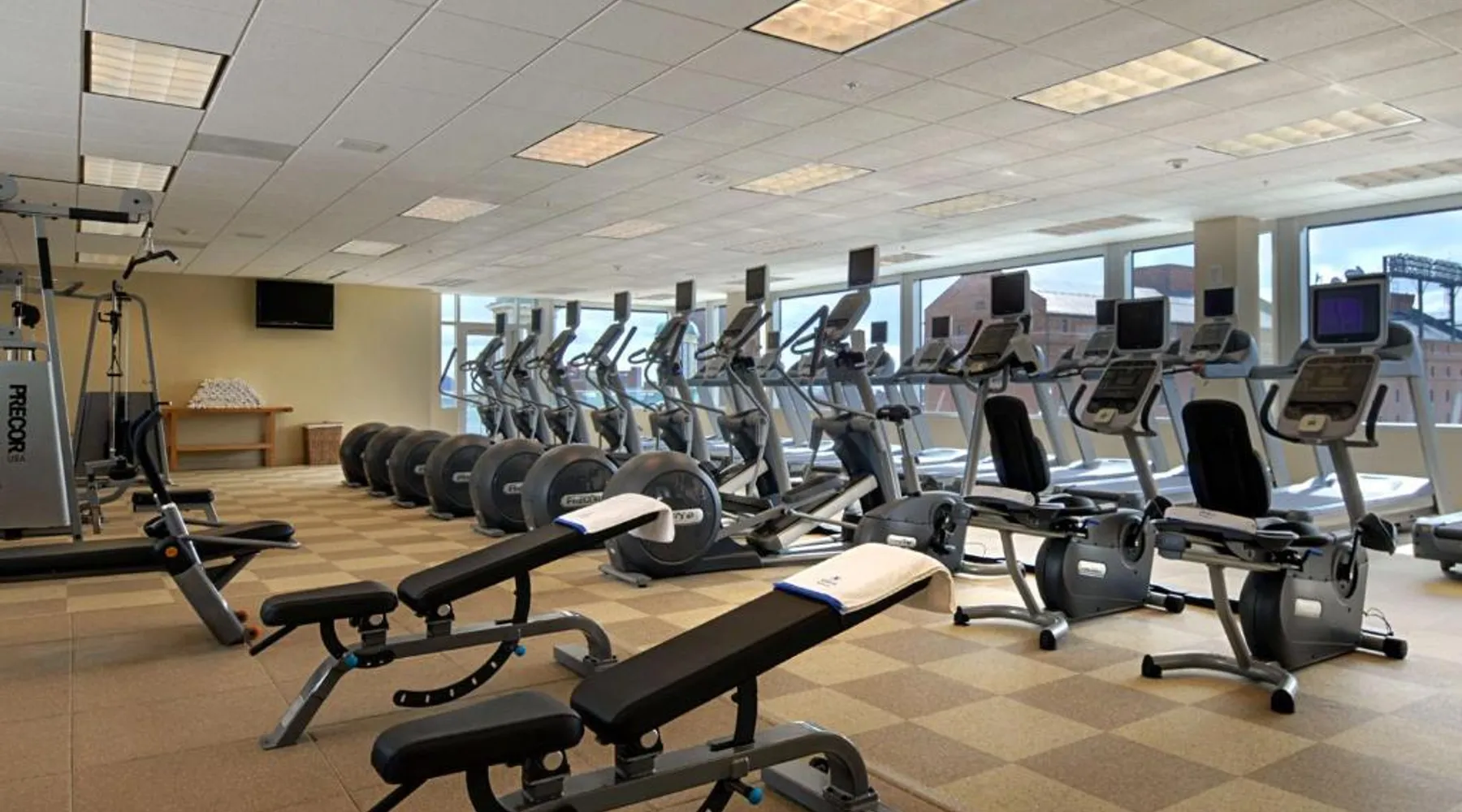 Offering direct access to the Baltimore Convention Center via a covered sky bridge and within walking distance of the Inner Harbor, this hotel offers spacious guestrooms filled with sophisticated amenities. Hilton Baltimore Inner Harbor features guestrooms and suites with plush-top mattresses, down duvets and pillows. Guests will also enjoy in-room plasma screen TVs with on-demand entertainment and spacious work areas. Relaxing amenities such as an indoor pool and well-equipped fitness center are also offered. Breakfast, lunch and dinner are available daily at the hotel's full-service on-site restaurant. The room features a seating area with a sofa and a cable TV.