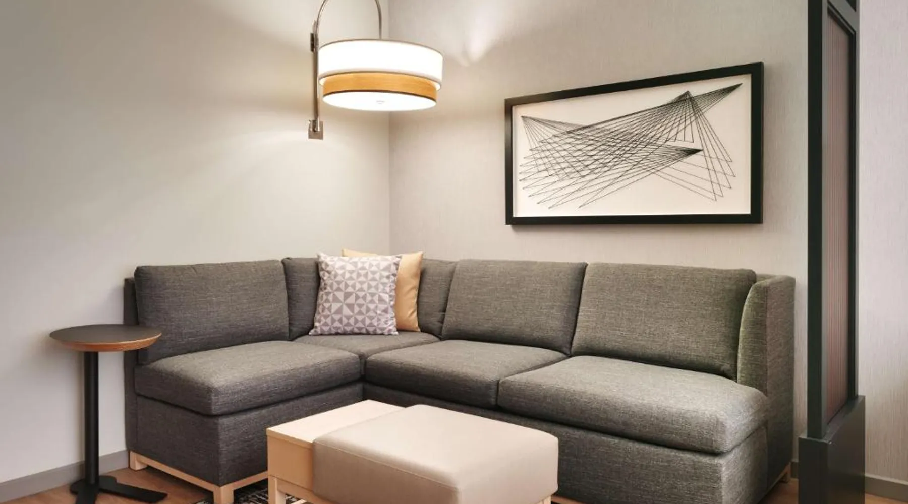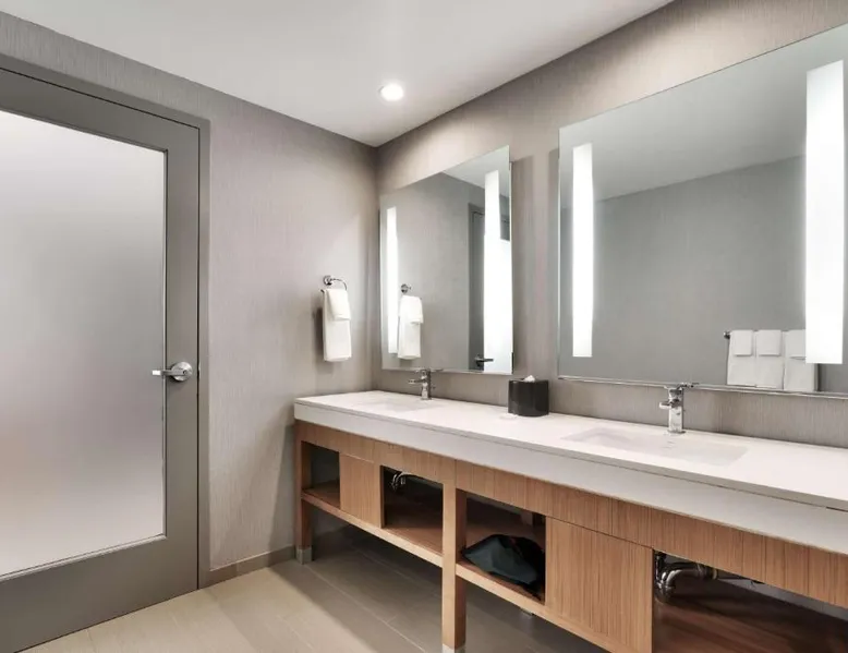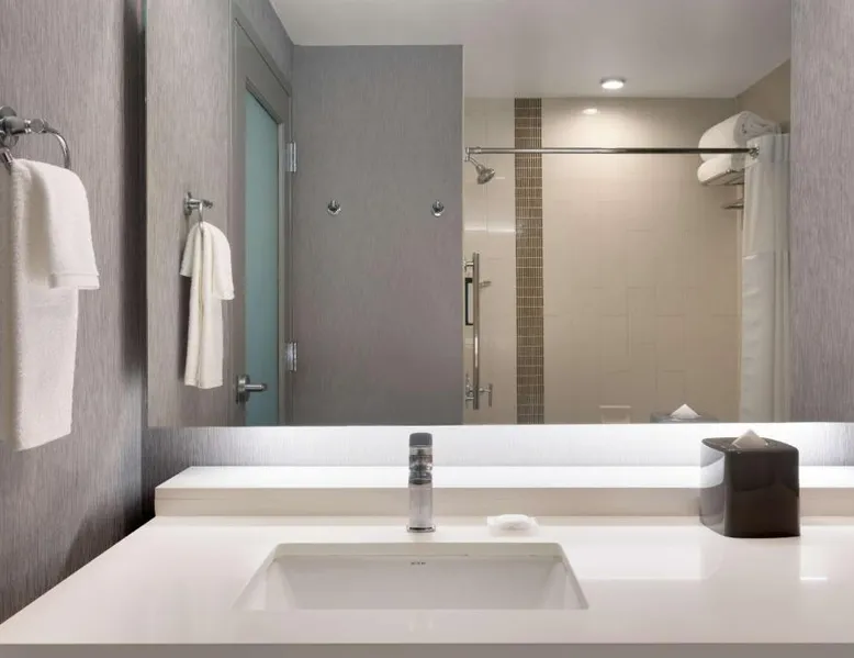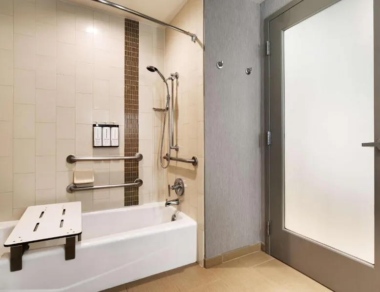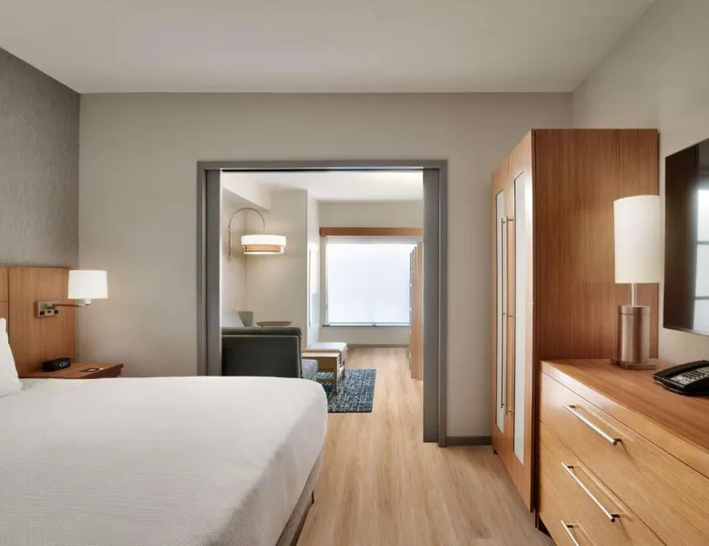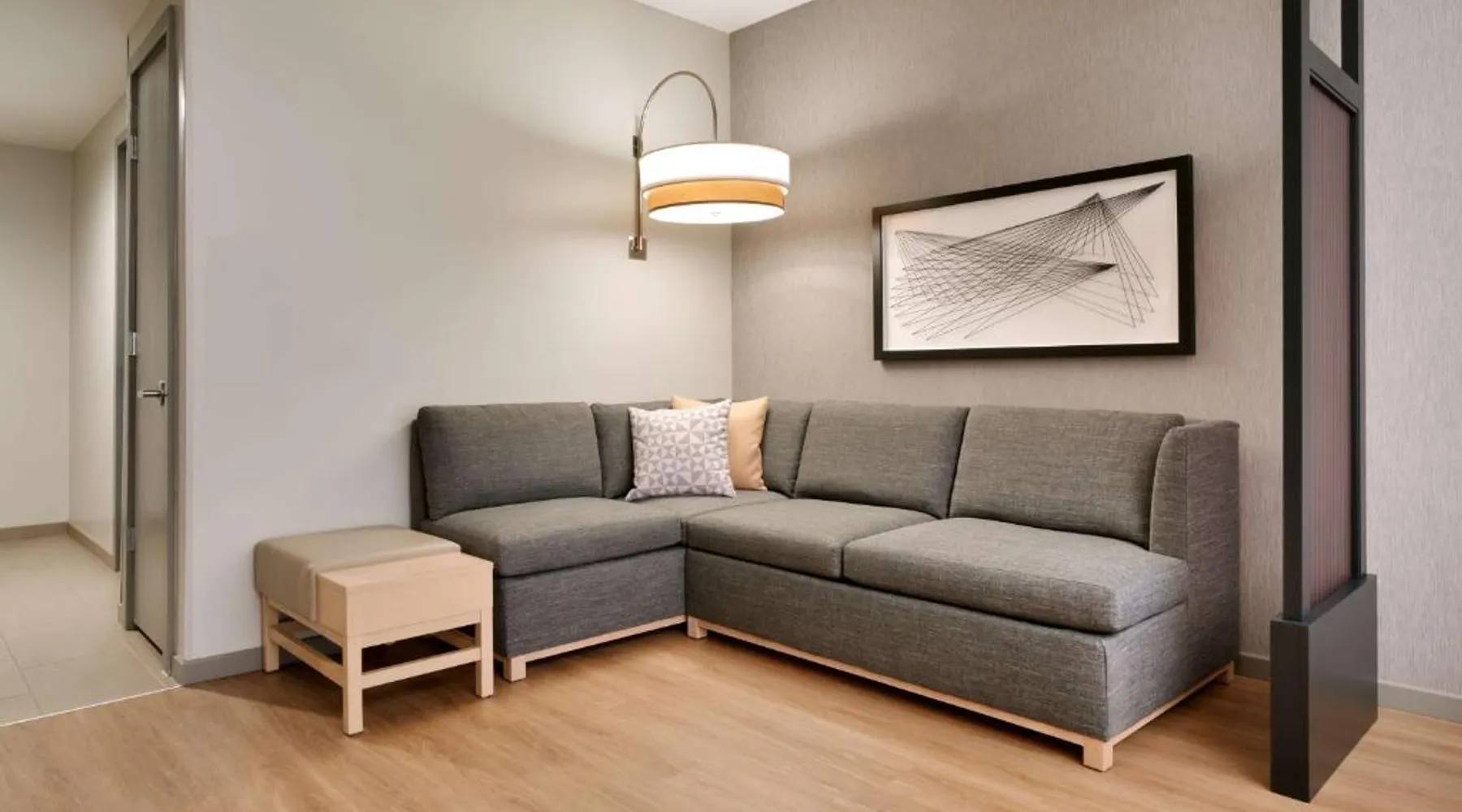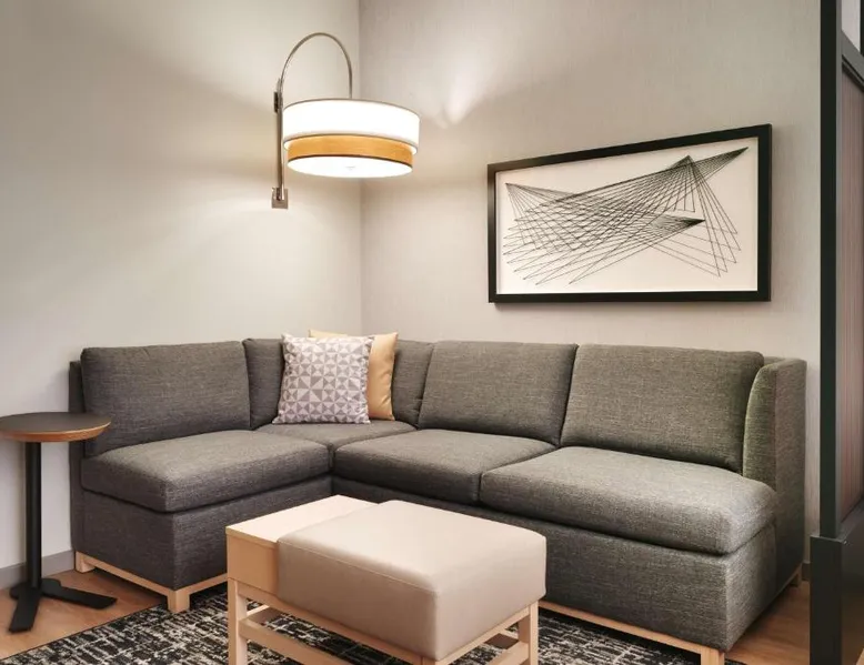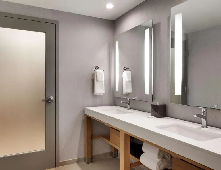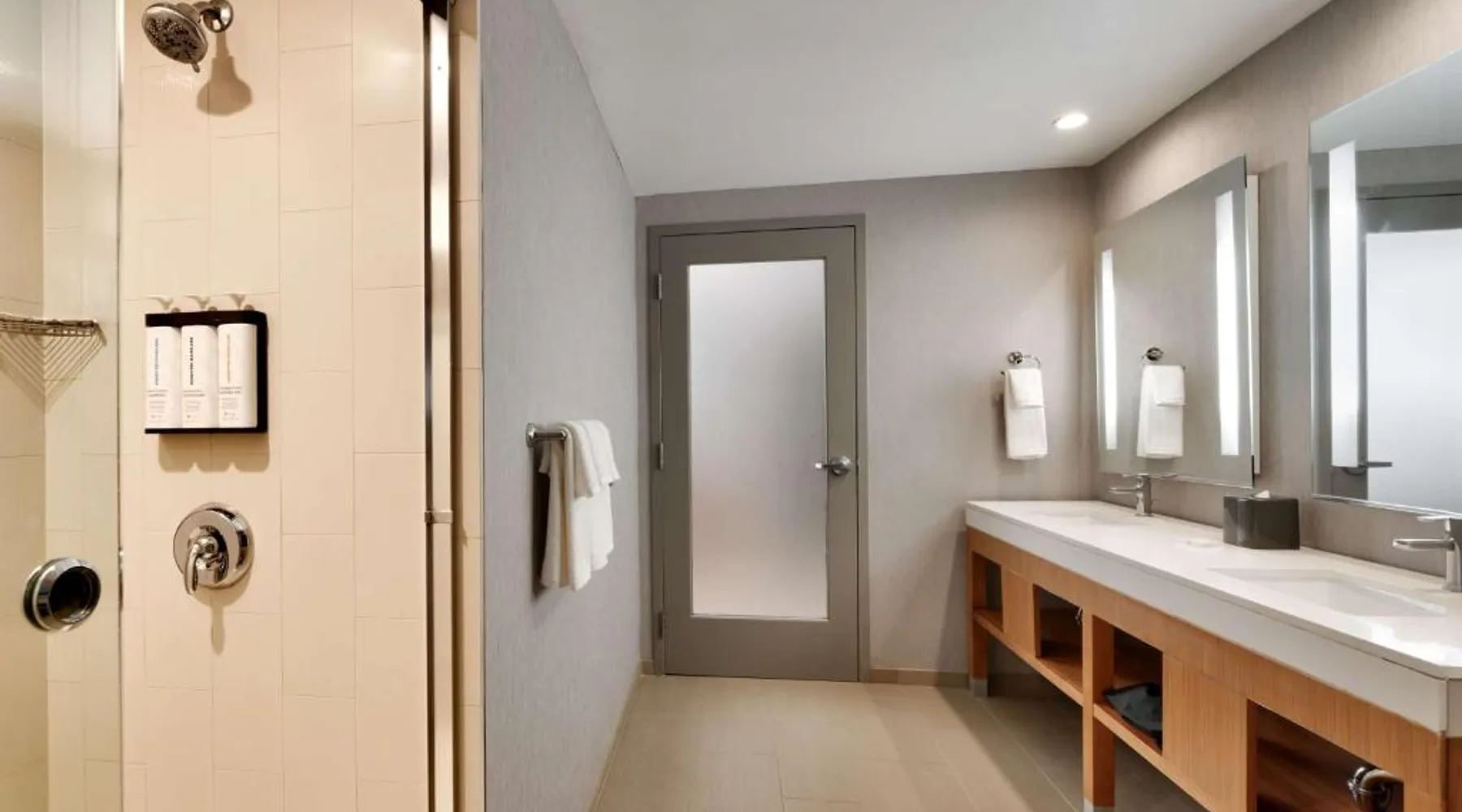 Offering an outdoor pool and an on-site restaurant, Hyatt Place at Anaheim Resort/Convention Center offers guest rooms with free WiFi. Disneyland is 1 mi away. A flat-screen TV with cable is featured in each air-conditioned room. A refrigerator and coffee machine are included as well. Free toiletries and a hairdryer are provided in all bathrooms. Select rooms offer a dining area. A coffee and cocktail bar is located on site at the property. At Hyatt Place at Anaheim Resort/Convention Center you will find a fitness center. Other facilities offered at the property include meeting facilities and ticket services. The hotel is 1969 feet from Anaheim Convention Center and 0.7 mi from Disney California Adventure. Los Angeles International Airport is 30 mi away. Separated by two French doors, this room includes a sleeping area with one king bed and twin-bed bunk bed.