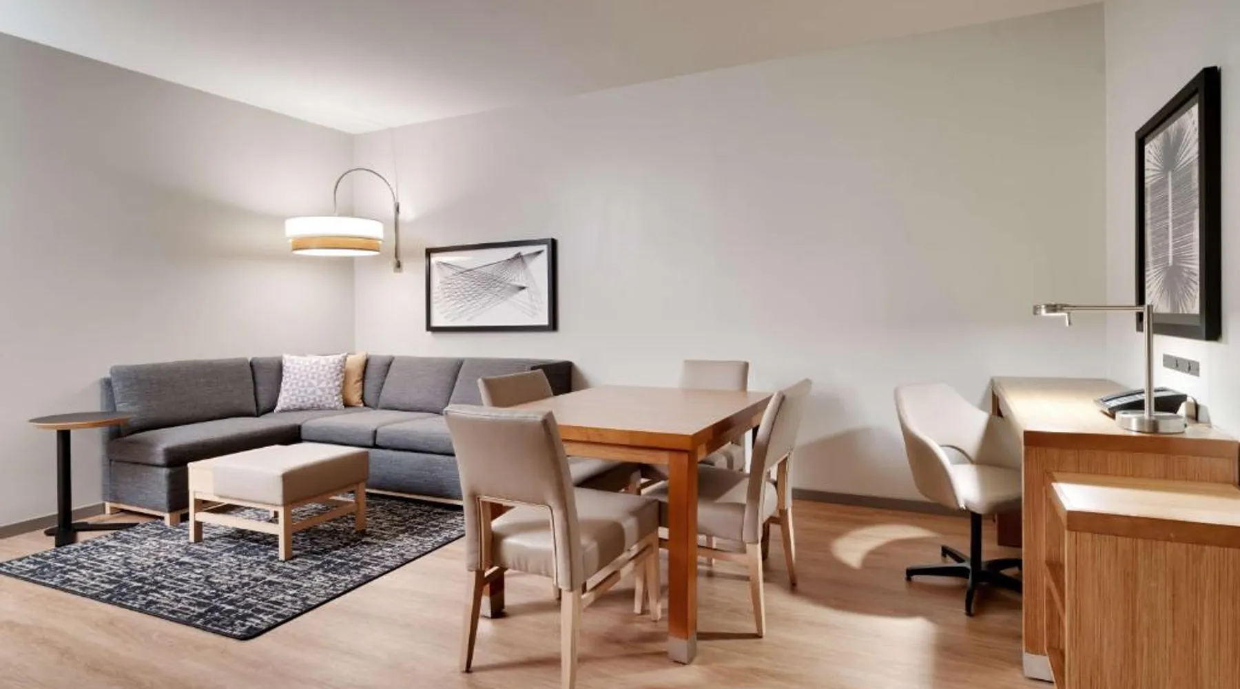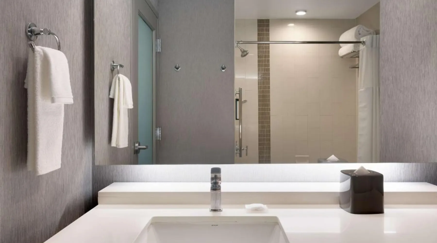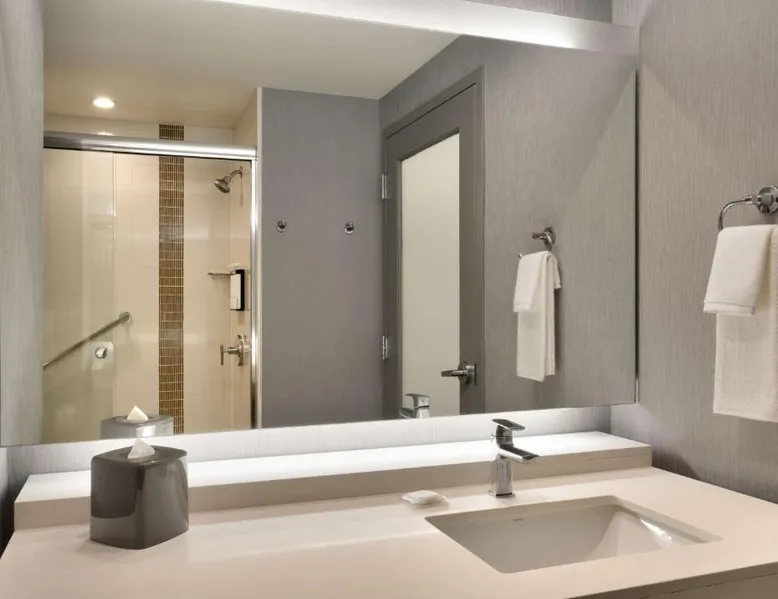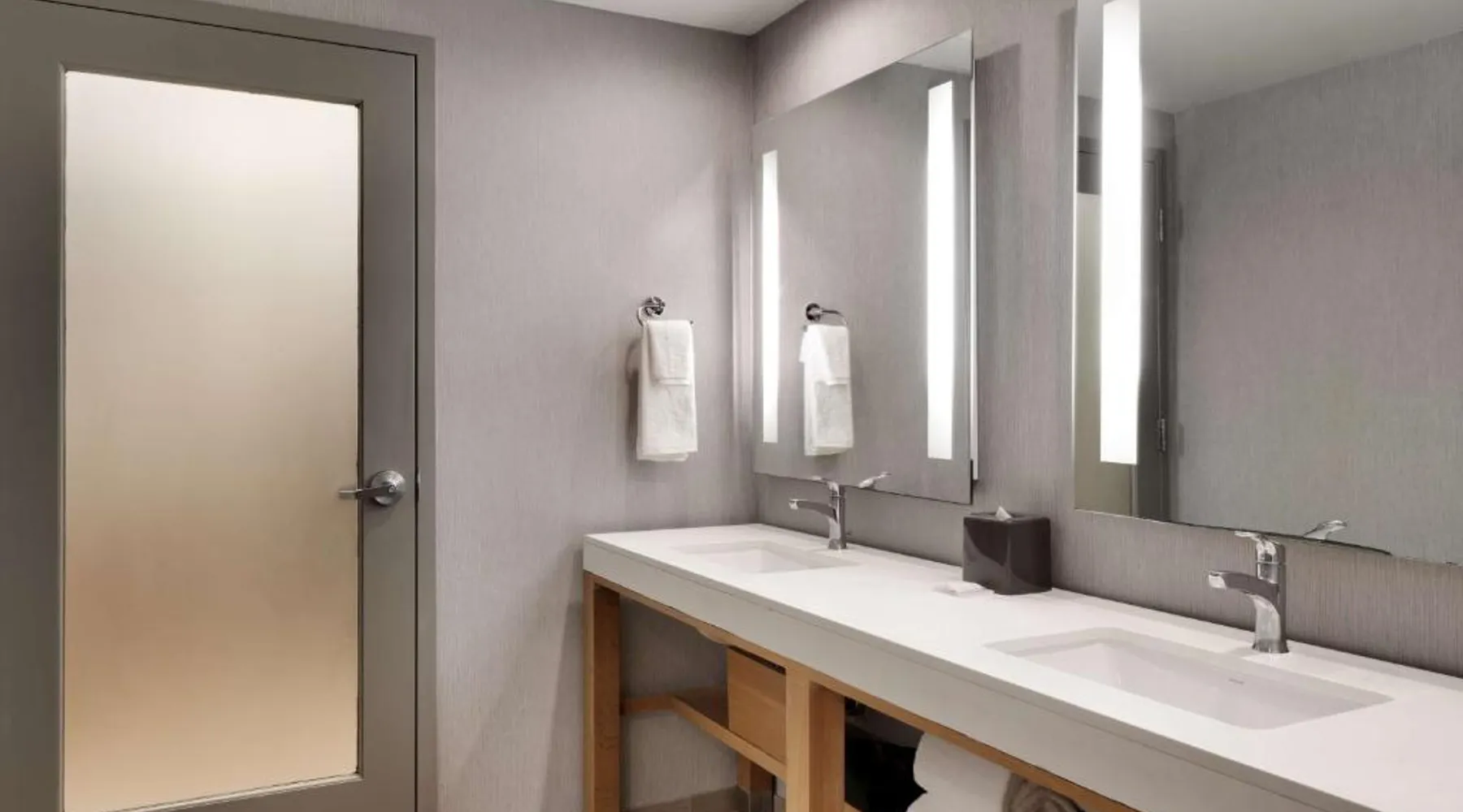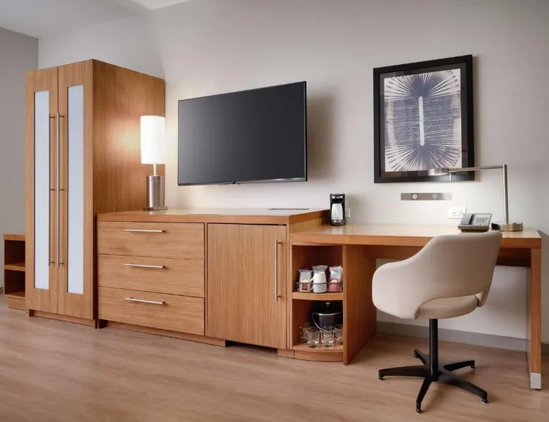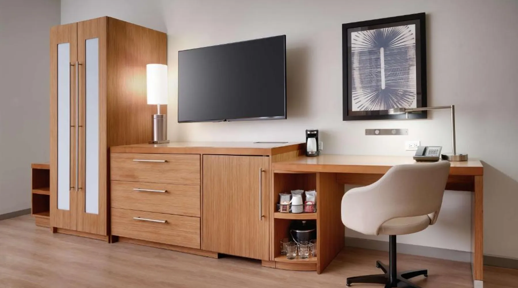 Offering an outdoor pool and an on-site restaurant, Hyatt Place at Anaheim Resort/Convention Center offers guest rooms with free WiFi. Disneyland is 1 mi away. A flat-screen TV with cable is featured in each air-conditioned room. A refrigerator and coffee machine are included as well. Free toiletries and a hairdryer are provided in all bathrooms. Select rooms offer a dining area. A coffee and cocktail bar is located on site at the property. At Hyatt Place at Anaheim Resort/Convention Center you will find a fitness center. Other facilities offered at the property include meeting facilities and ticket services. The hotel is 1969 feet from Anaheim Convention Center and 0.7 mi from Disney California Adventure. Los Angeles International Airport is 30 mi away. Separated by two French doors, this room includes a sleeping area with one king bed and twin-bed bunk bed.