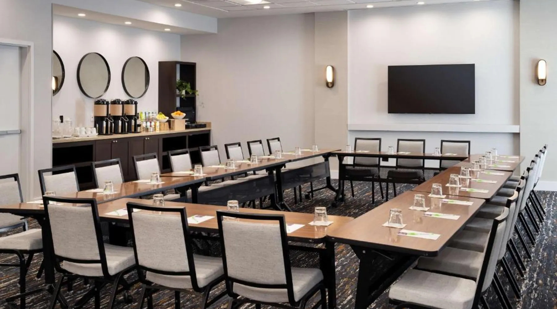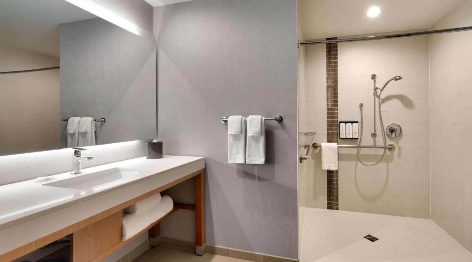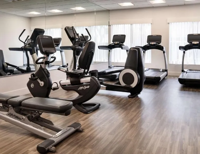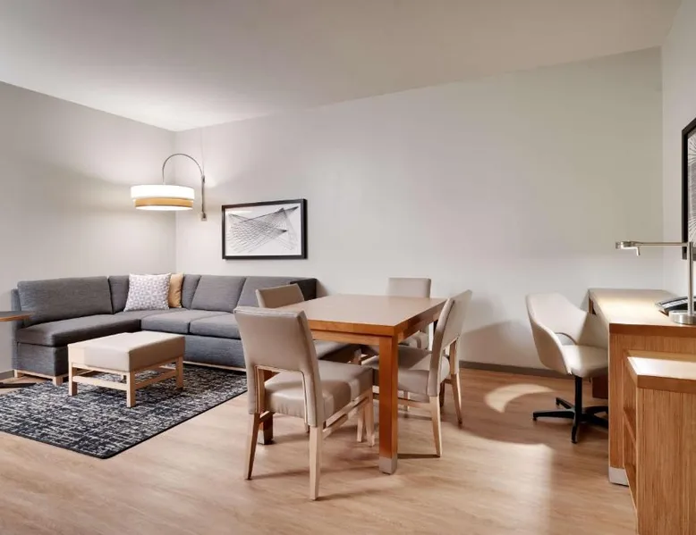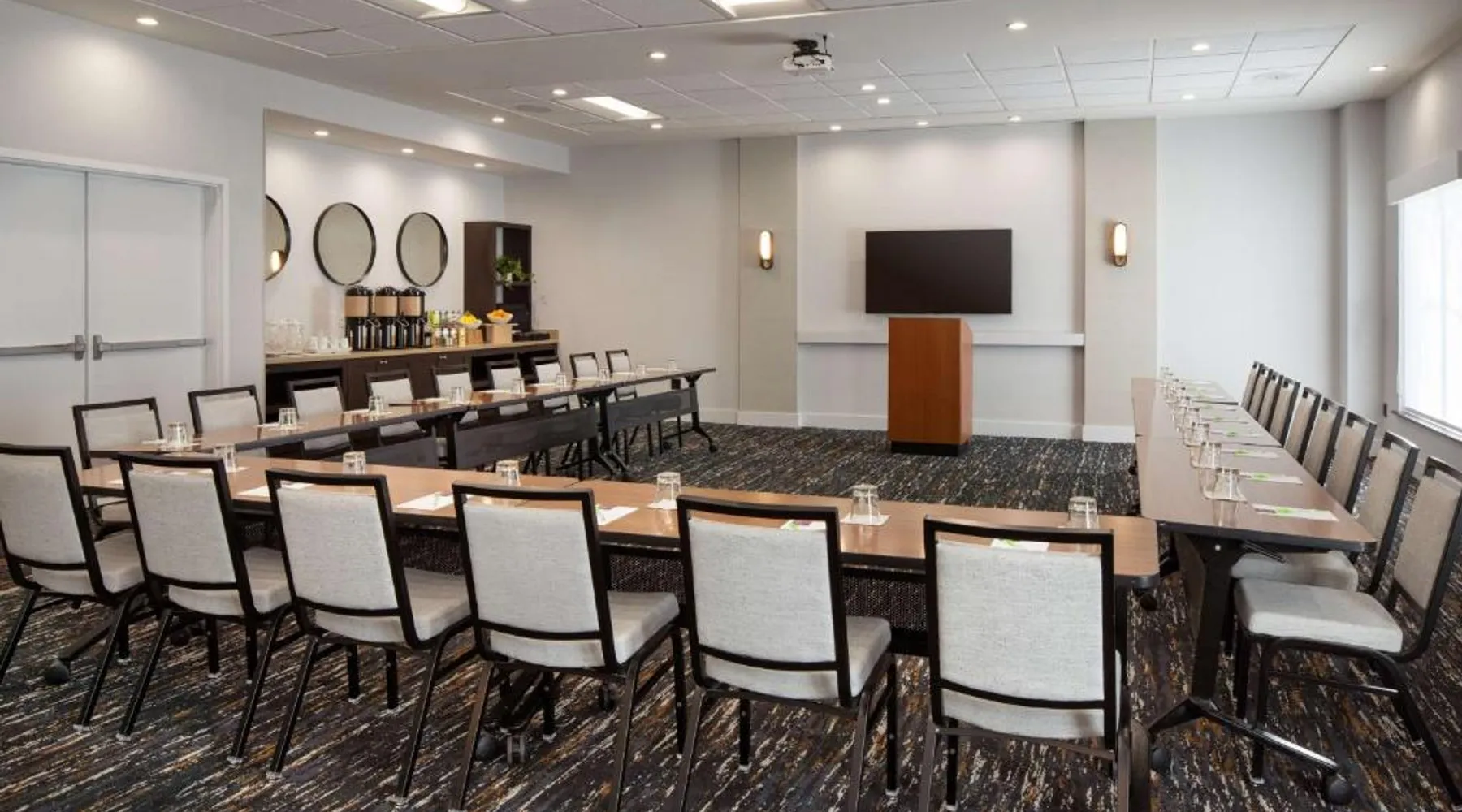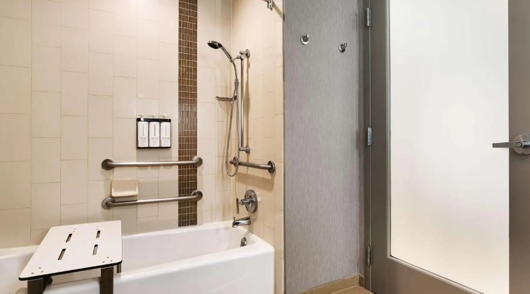 Offering an outdoor pool and an on-site restaurant, Hyatt Place at Anaheim Resort/Convention Center offers guest rooms with free WiFi. Disneyland is 1 mi away. A flat-screen TV with cable is featured in each air-conditioned room. A refrigerator and coffee machine are included as well. Free toiletries and a hairdryer are provided in all bathrooms. Select rooms offer a dining area. A coffee and cocktail bar is located on site at the property. At Hyatt Place at Anaheim Resort/Convention Center you will find a fitness center. Other facilities offered at the property include meeting facilities and ticket services. The hotel is 1969 feet from Anaheim Convention Center and 0.7 mi from Disney California Adventure. Los Angeles International Airport is 30 mi away. Separated by two French doors, this room includes a sleeping area with one king bed and twin-bed bunk bed.