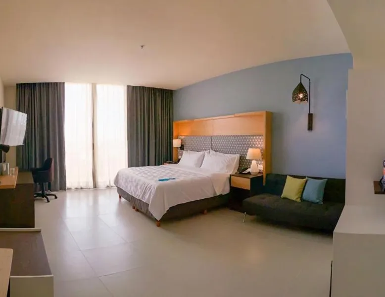 A gym and an outdoor pool overlooking the River Tuxpan can be found at this stylish hotel. Each bright, air-conditioned room includes free Wi-Fi, flat-screen cable TV and a coffee maker. Holiday Inn Tuxpan Convention Center is a 10-minute drive from Tuxpan city center and offers free private parking. Tampamachoco Lagoon is just 1.2 mi away, and is a popular fishing and diving destination. The spacious rooms at the Holiday Inn Tuxpan - Convention Center have elegant, modern décor and tiled floors. Each room comes with a safe and a private bathroom. You can enjoy fresh regional cuisine in the hotel’s Tambuc restaurant. Meals and drinks are served on the characteristic palapa covered terrace. Guests will have a special experience as this suite provides a hot tub and a spa bath. The suite's kitchenette, which has a refrigerator and a microwave, is available for cooking and storing food. The spacious suite offers air conditioning, a tea and coffee maker, a balcony with city views as well as a private bathroom boasting a shower. The unit has 1 bed.