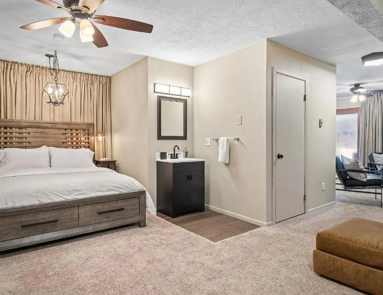 Comfortable Accommodations: Black Forest Inn Bed & Breakfast in Rapid City offers family rooms with private bathrooms, air-conditioning, and free WiFi. Each room includes a sofa bed, TV, and parquet floors. Relaxing Facilities: Guests can enjoy a garden, terrace, outdoor fireplace, hot tub, and indoor play area. Additional amenities include a lounge, games room, and picnic area. Delicious Breakfast: A buffet breakfast is served daily, highly praised by guests for its quality and variety. Convenient Location: Located 39 mi from Rapid City Regional Airport, the property is near Mount Rushmore (19 mi), Black Hills National Forest (22 mi), and other attractions. This suite is consisted of of 1 living room, 1 separate bedroom and 1 bathroom with a bath and free toiletries. The suite features carpeted floors, a seating area with a flat-screen TV with streaming services, air conditioning, a wardrobe, as well as a dressing room. The unit offers 4 beds.