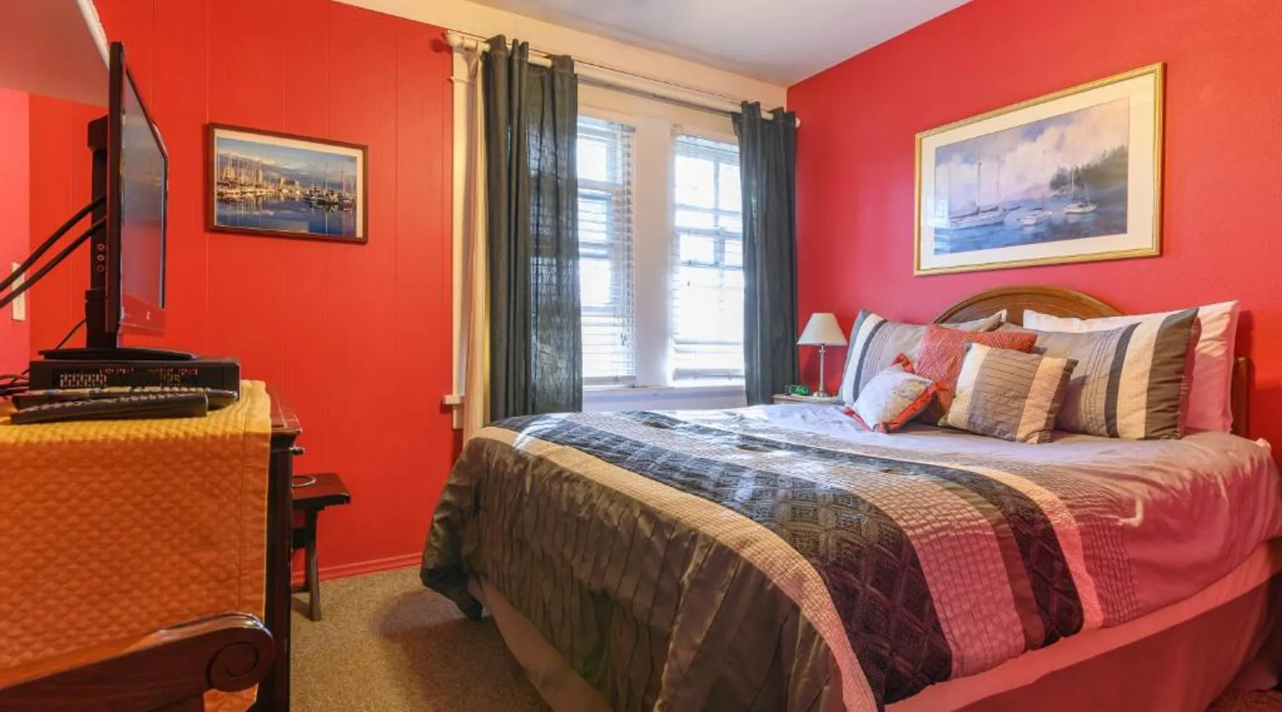 Comfortable Accommodations: Beachrunners Inn in Long Beach offers family rooms with private bathrooms, bathrobes, and free WiFi. Each room includes a work desk, dressing room, and streaming services. Relaxing Facilities: Guests can enjoy a garden, outdoor seating area, and picnic spots. The property features a lounge, coffee shop, and bicycle parking. Free parking is available on-site. Delicious Breakfast: A variety of breakfast options are served, including American, buffet, Ã la carte, vegetarian, vegan, and gluten-free. Local specialties, fresh pastries, and fruits are available. Prime Location: Located 4.3 mi from Long Beach Airport, Beachrunners Inn is a 5-minute walk from Junipero Beach. Nearby attractions include Queen Mary (3.7 mi) and Disneyland (19 mi). Featuring free toiletries and bathrobes, this double room includes a private bathroom with a walk-in shower, a bath or a shower and a hairdryer. This double room has a dressing room, a carpeted floor and a flat-screen TV with streaming services. The unit has 1 bed.
