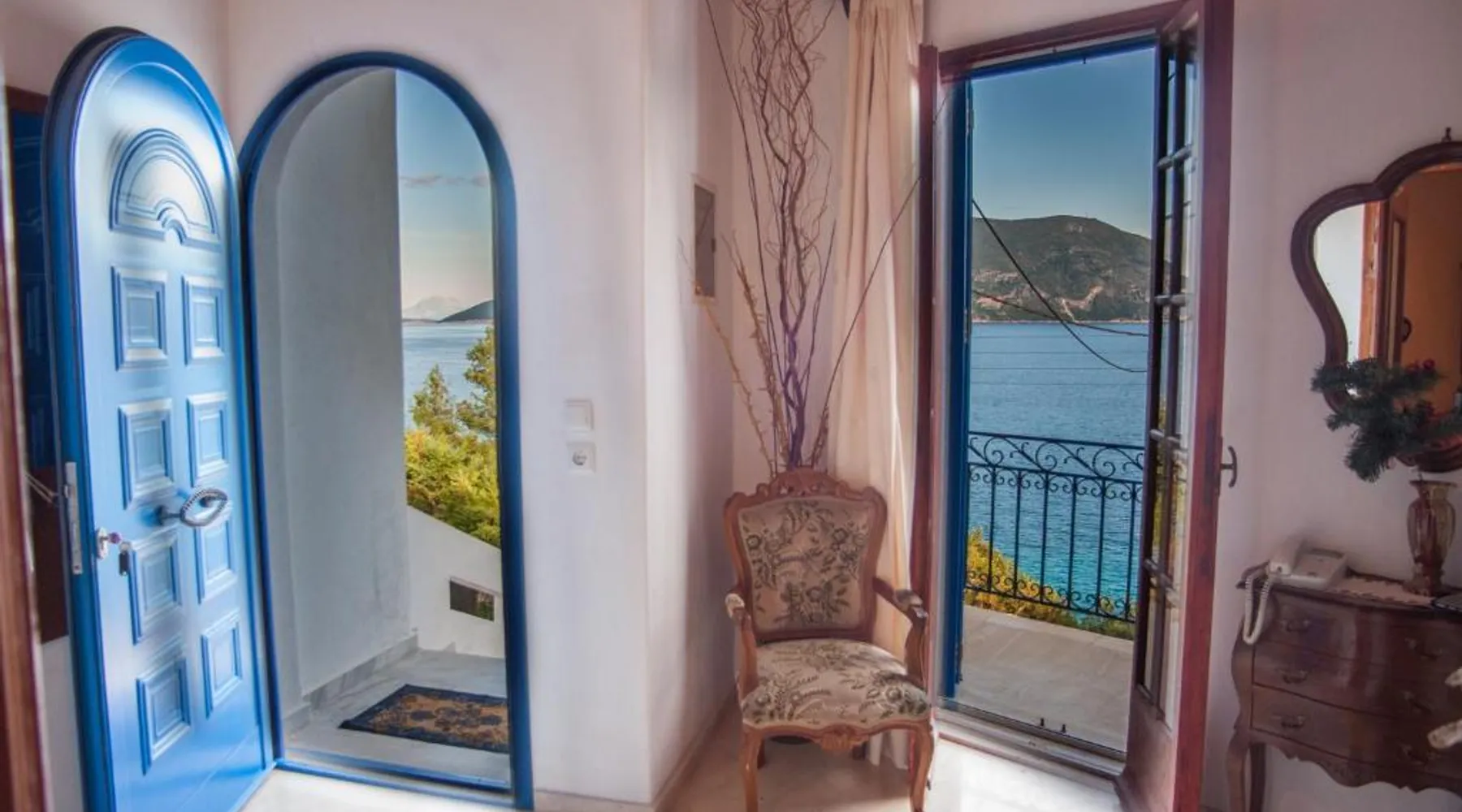 Beachfront Location: Fey's House waterfront in Fiskardo offers direct beachfront access and stunning sea views. Guests can relax on the terrace or balcony and enjoy the serene beachfront setting. Comfortable Accommodations: The holiday home features two bedrooms and a living room with a fireplace. Family rooms provide ample space for relaxation, while free WiFi ensures connectivity. Modern Amenities: Equipped with air-conditioning, a fully fitted kitchen, and a dining area. Additional amenities include a washing machine, TV, and free toiletries. Local Attractions: Zavalata Beach is a 3-minute walk away, while Port Fiskardo lies less than 0.6 mi from the property. Other nearby points of interest include Cave Melissani and the Museum of Natural History of Kefalonia and Ithaca. Activities and Surroundings: Guests can enjoy fishing, pub crawls, hiking, and cycling. Boating is available in the surrounding area, providing additional leisure options. Guests will have a special experience as this holiday home features a fireplace. Featuring a private entrance, this air-conditioned holiday home is consisted of of 1 living room, 2 separate bedrooms and 1 bathroom with a bath and a bidet. The well-fitted kitchen features a stovetop, a refrigerator, kitchenware and an oven. Boasting a terrace with sea views, this holiday home also offers a coffee machine and a flat-screen TV. The unit offers 3 beds.