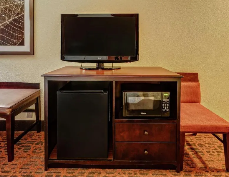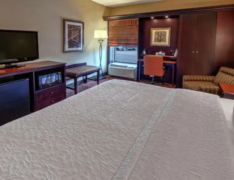 Comfortable Accommodations: Hampton Inn Ashland in Ashland offers comfortable rooms with free WiFi, ensuring a pleasant stay. Guests enjoy amenities such as a fitness center, lounge, and outdoor seating area. Convenient Facilities: The hotel provides a business area, elevator, and 24-hour front desk. Additional features include a daily housekeeping service, free on-site parking, and a buffet breakfast. Prime Location: Located 12 mi from Tri-State Airport, the hotel is near attractions like Highlands Museum and Discovery Center (8.7 mi) and Marshall University (19 mi). Guests appreciate the room comfort and cleanliness. This triple room features a tea and coffee maker and a TV. The unit has 1 bed.