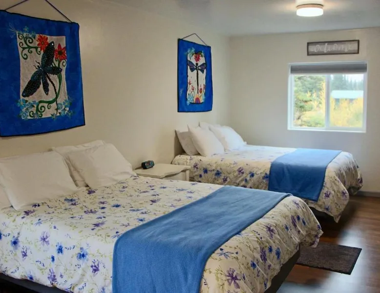 Comfortable Accommodations: Arctic Dragonfly Inn in Healy offers family rooms with private bathrooms, kitchens, and parquet floors. Each room includes a sofa bed, dressing room, and free toiletries. Essential Facilities: Guests enjoy free WiFi, a coffee shop, and free on-site private parking. The inn features a dining area with a seating space and outdoor dining options. Additional Amenities: Rooms are equipped with tea and coffee makers, hairdryers, dining tables, refrigerators, microwaves, ovens, stovetops, toasters, and kitchenware. Free toiletries and a sofa bed enhance comfort. Location and Accessibility: Located 109 mi from Fairbanks International Airport, the inn provides a quiet street view. Highly rated by guests, it offers a relaxing environment. The spacious studio provides a private entrance, a tea and coffee maker, as well as a private bathroom featuring a shower and a hairdryer. Meals can be prepared in the kitchen, which is equipped with a stovetop, a refrigerator, kitchenware and an oven. Among the room amenities are a seating area, a dressing room, a sofa as well as an outdoor dining area and a quiet street view. The unit offers 2 beds.