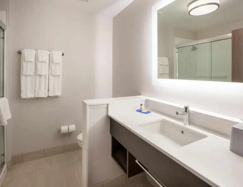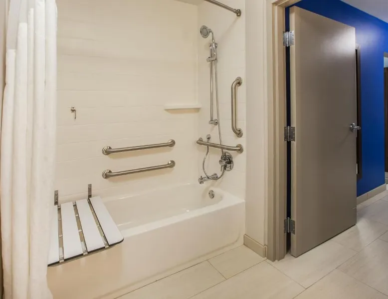 Comfortable Accommodations: Holiday Inn Express & Suites - Bullhead City by IHG in Bullhead City offers family rooms with air-conditioning, private bathrooms, and modern amenities. Each room includes a tea and coffee maker, hairdryer, refrigerator, work desk, free toiletries, microwave, TV, and wardrobe. Exceptional Facilities: Guests can enjoy a fitness center, indoor swimming pool, and free WiFi. Additional facilities include a lounge, fitness room, elevator, 24-hour front desk, housekeeping service, business area, outdoor seating area, and free on-site private parking. Convenient Location: Located 6.8 mi from Laughlin Bullhead International Airport, the hotel provides easy access to local attractions. Highly rated for room cleanliness, breakfast provided by the property, and attentive staff. Offering free toiletries, this double room includes a private bathroom with a shower and a hairdryer. The spacious air-conditioned double room offers a flat-screen TV with satellite channels, a tea and coffee maker, a wardrobe and a safe deposit box. The unit offers 1 bed.