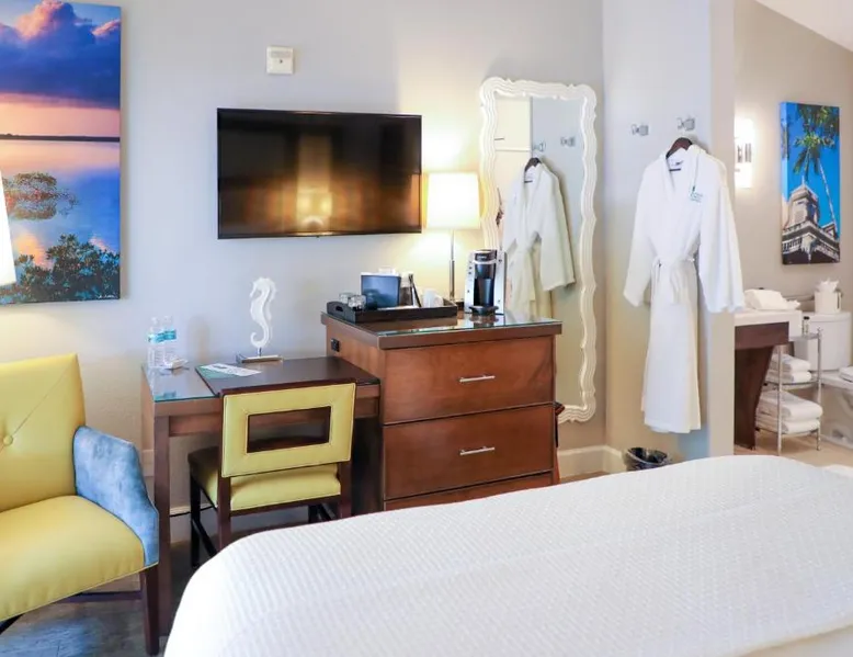 This Key West inn is a 4-minute walk from the Ernest Hemingway House and Museum. Guests of the Almond Tree Inn - Adults Only will enjoy an outdoor pool with a hot tub and a daily continental breakfast. All accommodations feature satellite TV, microwave, and small refrigerator. Tea and coffee-making facilities and a patio are also included. Almond Tree Inn - Adults Only guests can lounge in the Florida sun on the deck alongside the pool and enjoy a happy hour with complimentary beverages. Guests can also stay connected during their stay with free Wi-Fi. The inn is a 4-minute walk from the Historic Lighthouse and a 9-minute walk from the Southernmost Point. The Key West Butterfly and Nature Conservatory is a 6-minute walk away. This room features a patio, microwave, and small refrigerator.